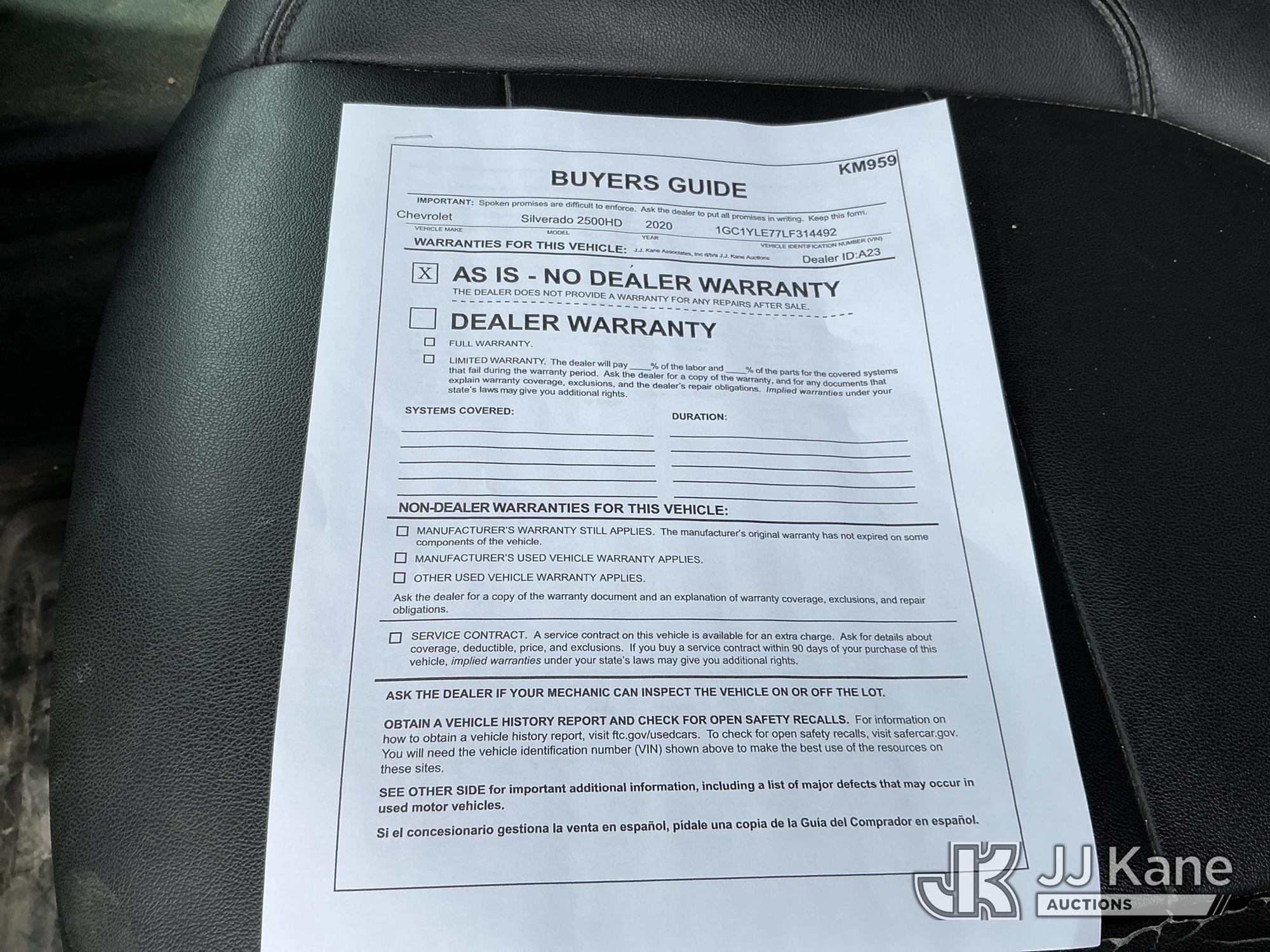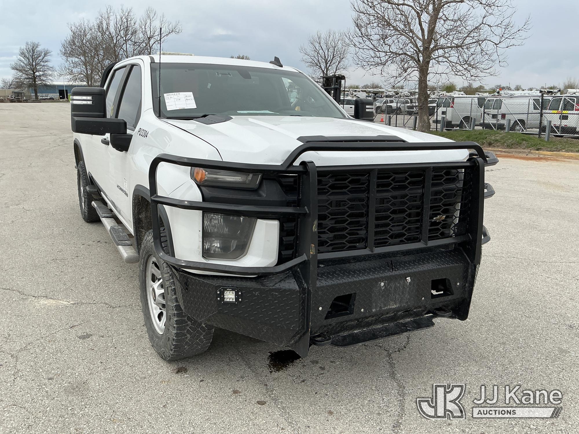 2020 Chevrolet Silverado 2500HD Crew-Cab Pickup Truck, 8-cyl gas, 4WD, 6-Speed Automatic, A/C, with Heavy Duty Front Bumper w/ Grill Guard, Rear Window Guard, (260,717 miles) (Runs & Moves) (Seller States: Exhaust manifold gasket needs to be replaced, the bolts are backed out or broken. Engine oil cooler lines are dripping, transmission line from radiator is leaking and needs an engine tune up.) This is a Titled Item*