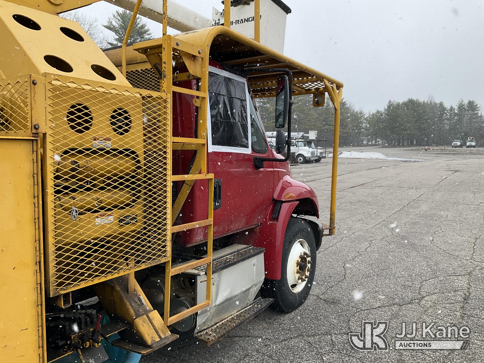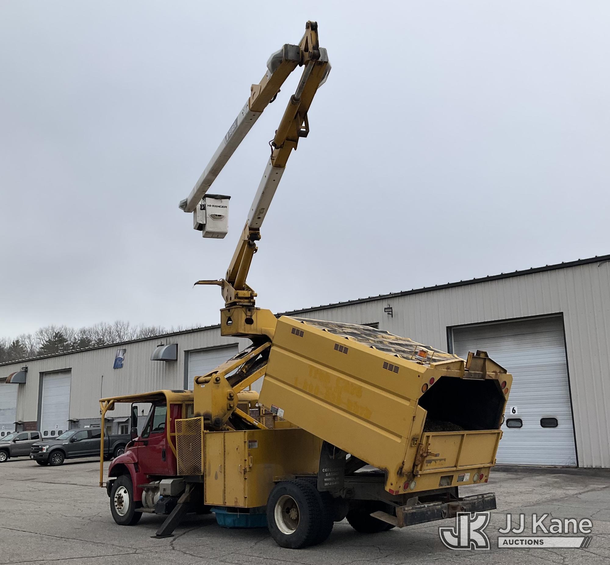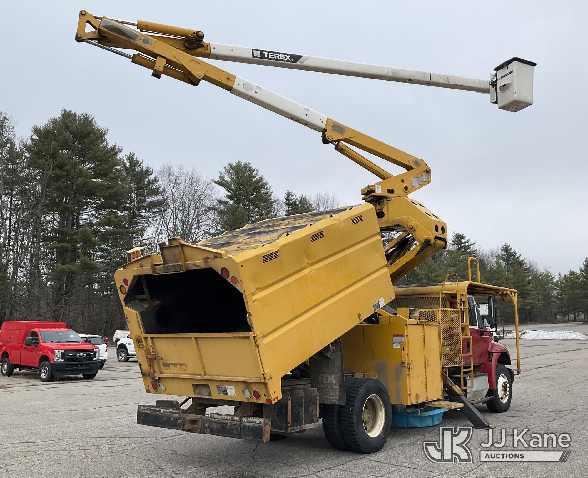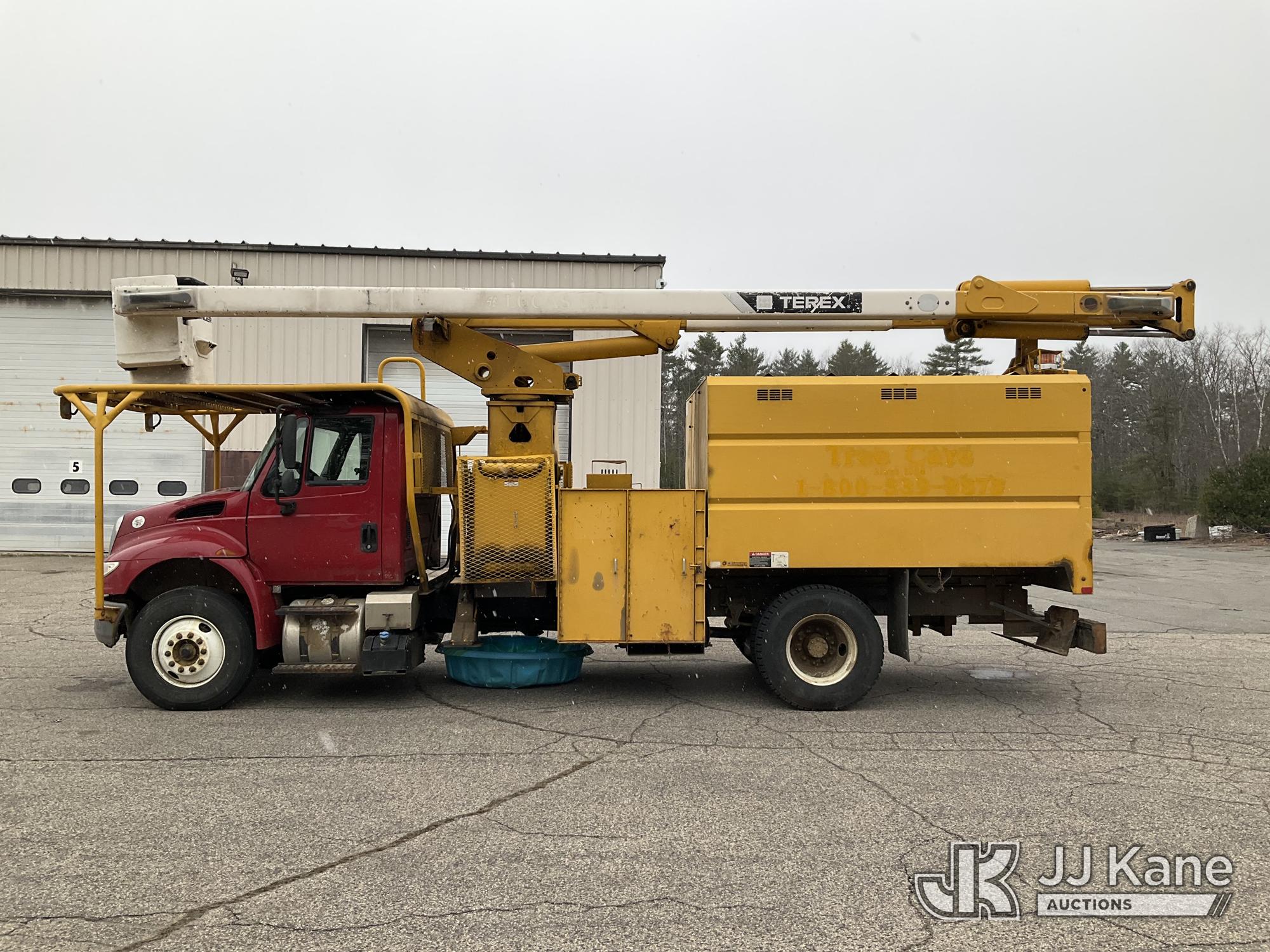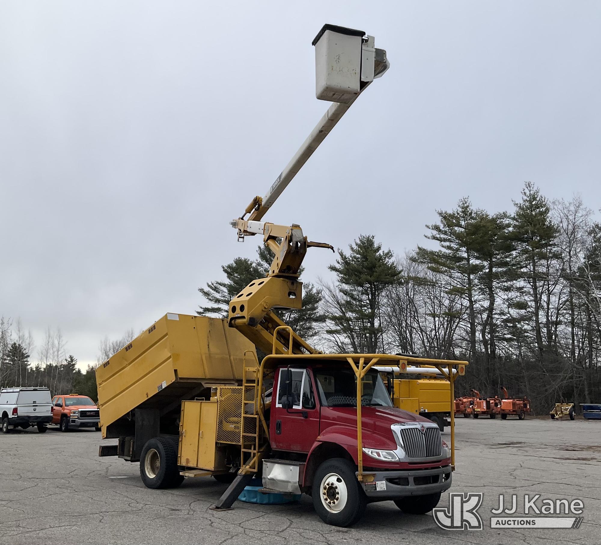 Terex/HiRanger XT60/70, 75 ft, Over-Center Elevator Bucket Truck s/n 2141253848, with Single-Man Bucket & 2 Outriggers, mounted behind cab on 2015 International 4300 Chipper Dump Truck, 6.7L diesel, Auto, with 11 ft body, (98,335 miles) (Runs, Moves & Upper Operates, Multiple Hyd Leaks, Body & Rust Damage) (Removal is by Appointment Only, Buyer MUST make a appointment prior to picking up, Buyer/Transporter Must have PAID IN FULL RELEASE. No onsite assistance available, Please Come prepared.) This is a Titled Item*