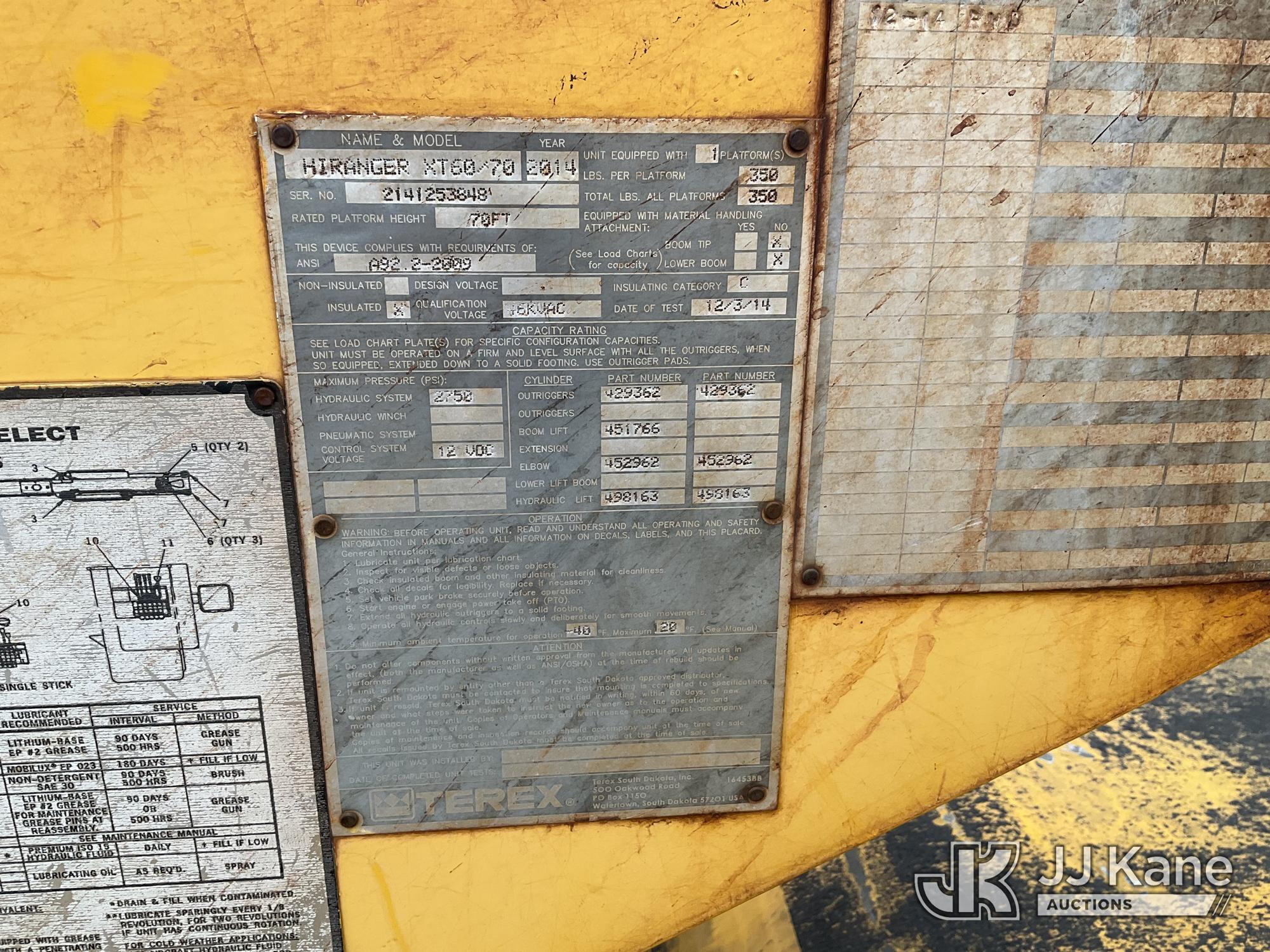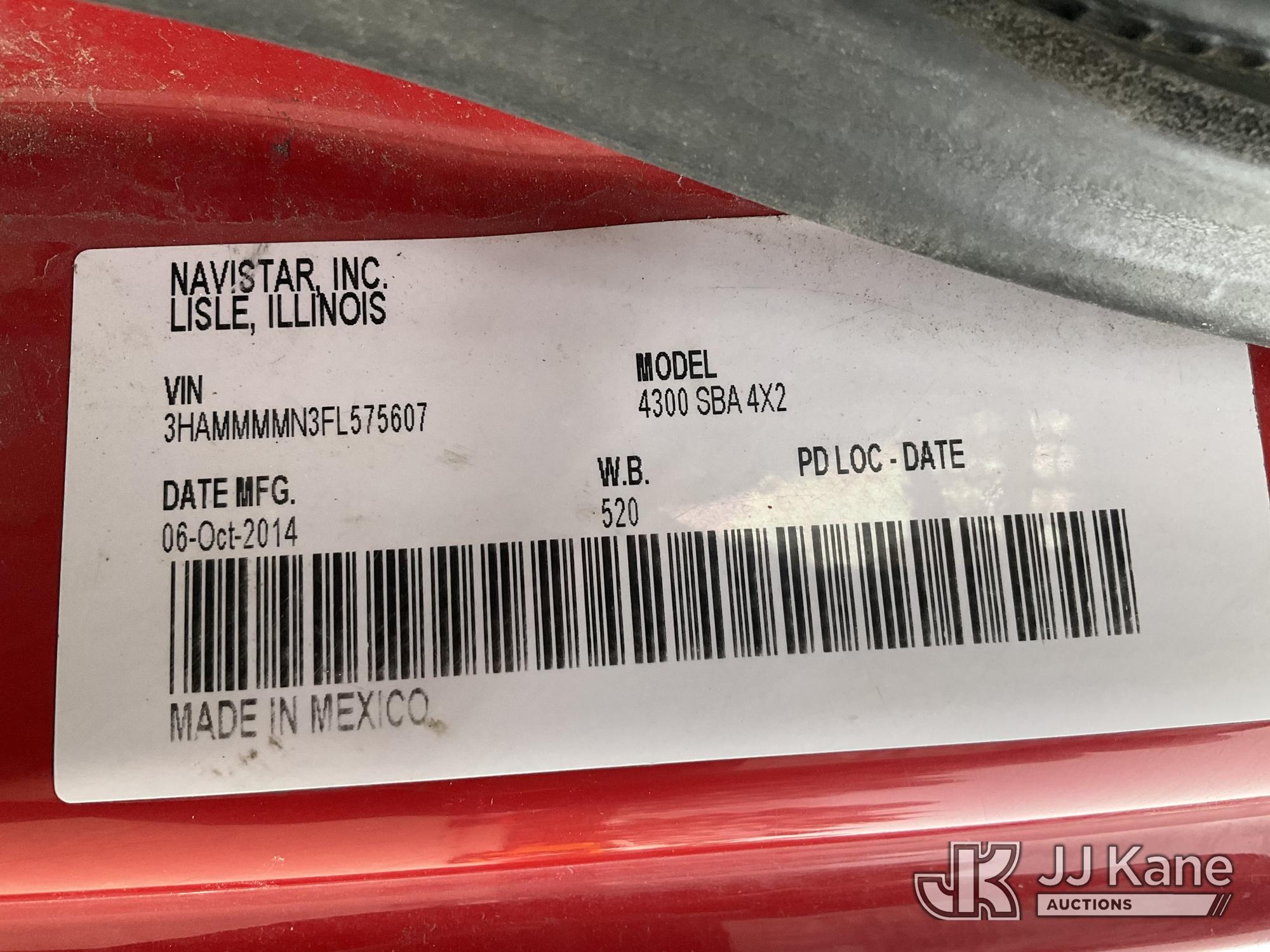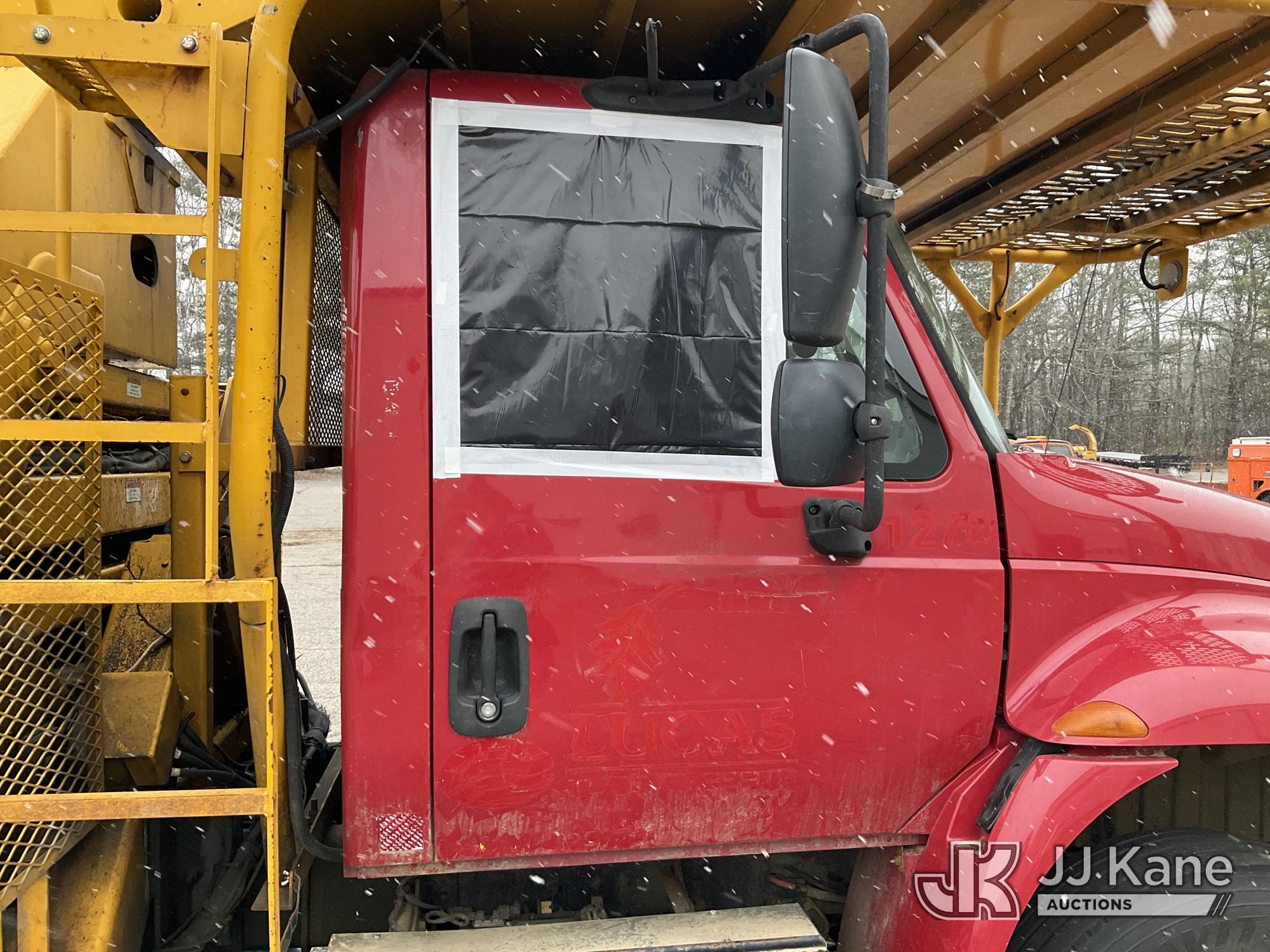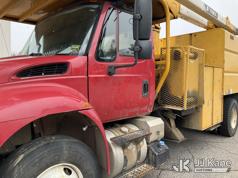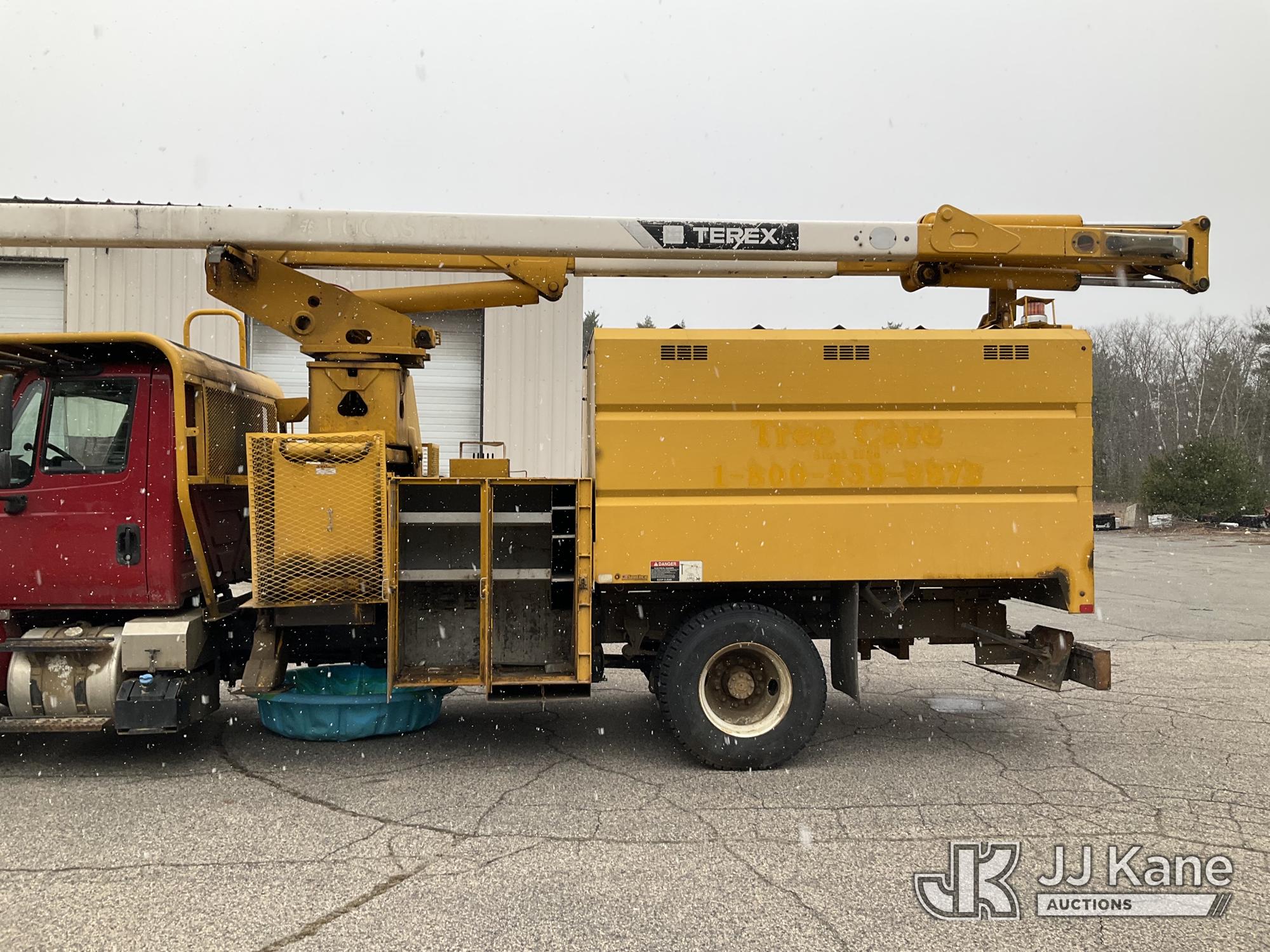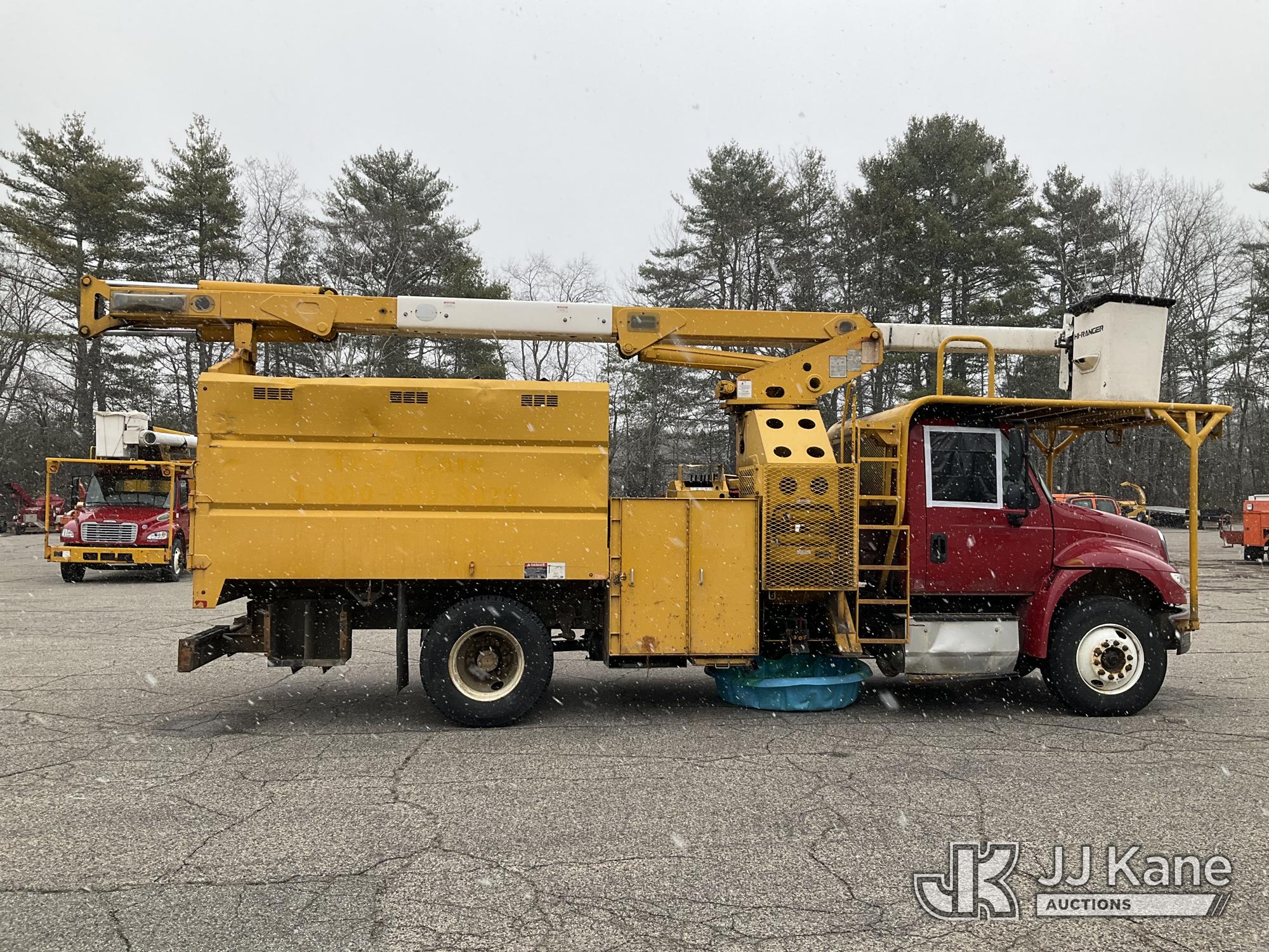 Terex/HiRanger XT60/70, 75 ft, Over-Center Elevator Bucket Truck s/n 2141253848, with Single-Man Bucket & 2 Outriggers, mounted behind cab on 2015 International 4300 Chipper Dump Truck, 6.7L diesel, Auto, with 11 ft body, (98,335 miles) (Runs, Moves & Upper Operates, Multiple Hyd Leaks, Body & Rust Damage) (Removal is by Appointment Only, Buyer MUST make a appointment prior to picking up, Buyer/Transporter Must have PAID IN FULL RELEASE. No onsite assistance available, Please Come prepared.) This is a Titled Item*