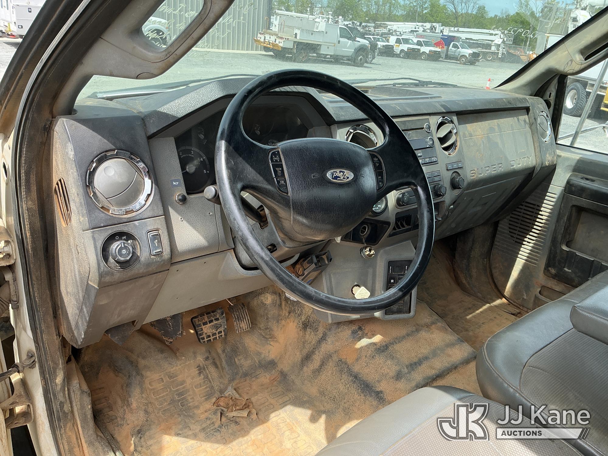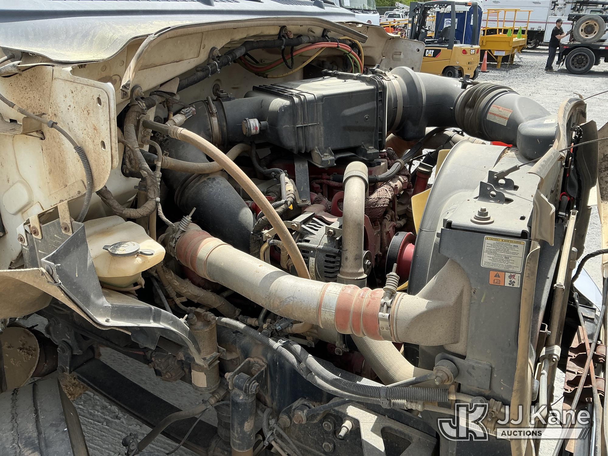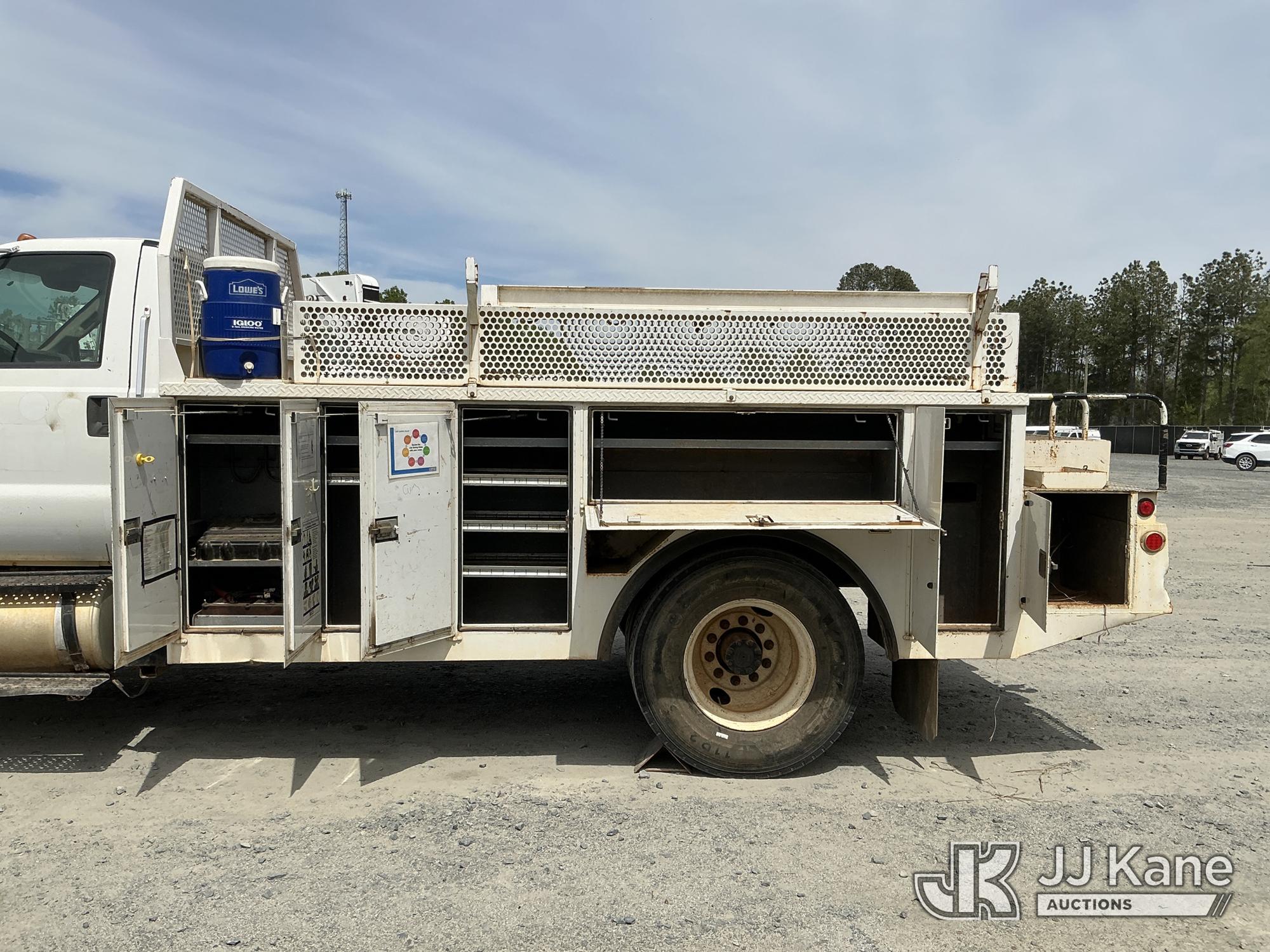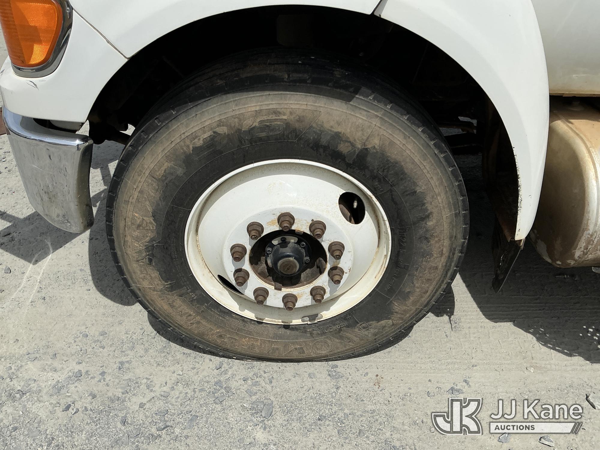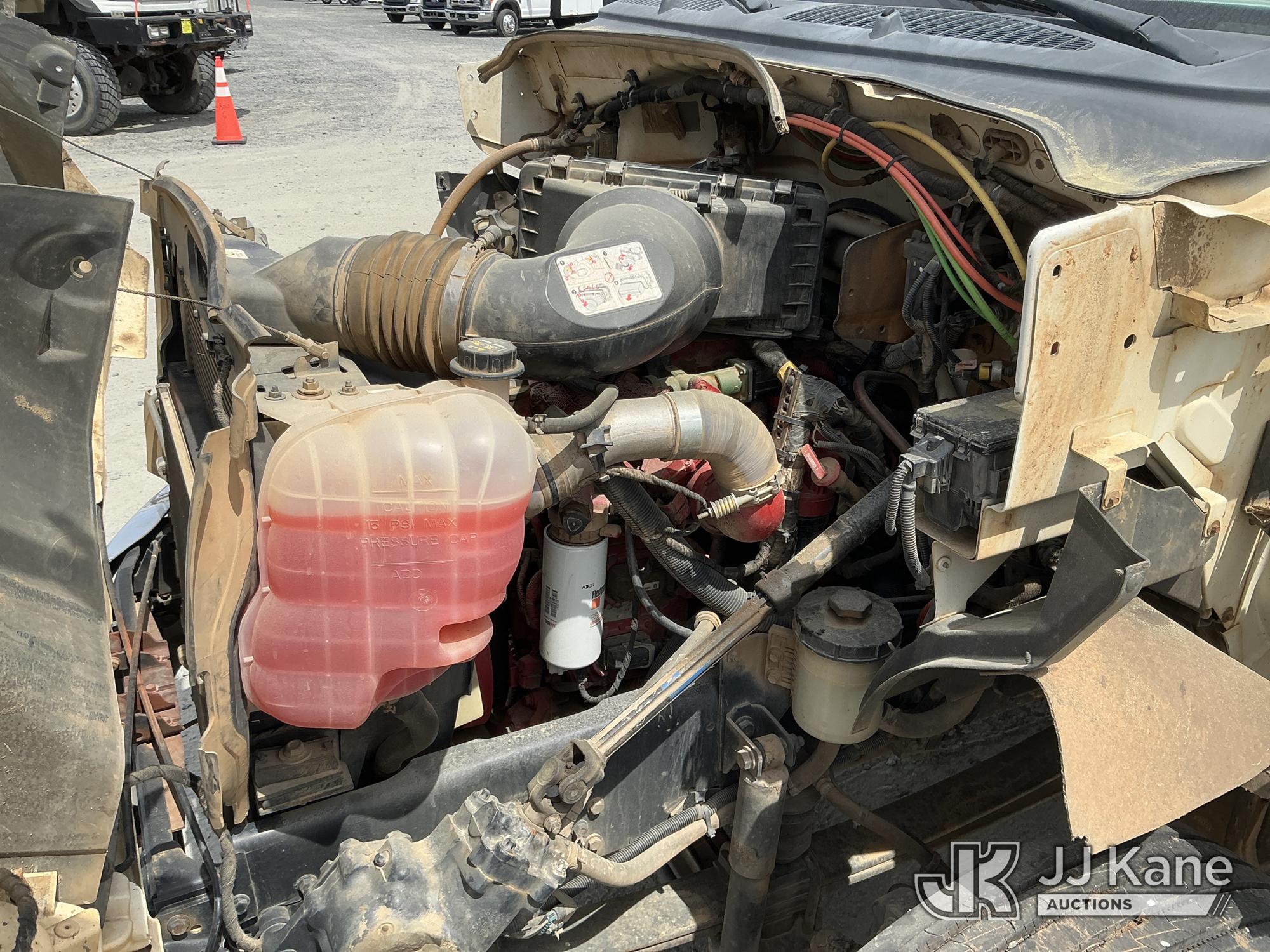 2013 Ford F-750 URD/Flatbed Truck, Cummins 6.7L diesel, Auto, A/C, with 14 ft flat bed, (120,923 miles) (Not Running, Condition Unknown, Driveshaft Removed, Steering Linkage Bent, ABS Light On) (Seller States: Involved In Accident, Damage To Front Bumper, Right Side Hood, Fuel Tank Split or Cracked) This is a Titled Item*