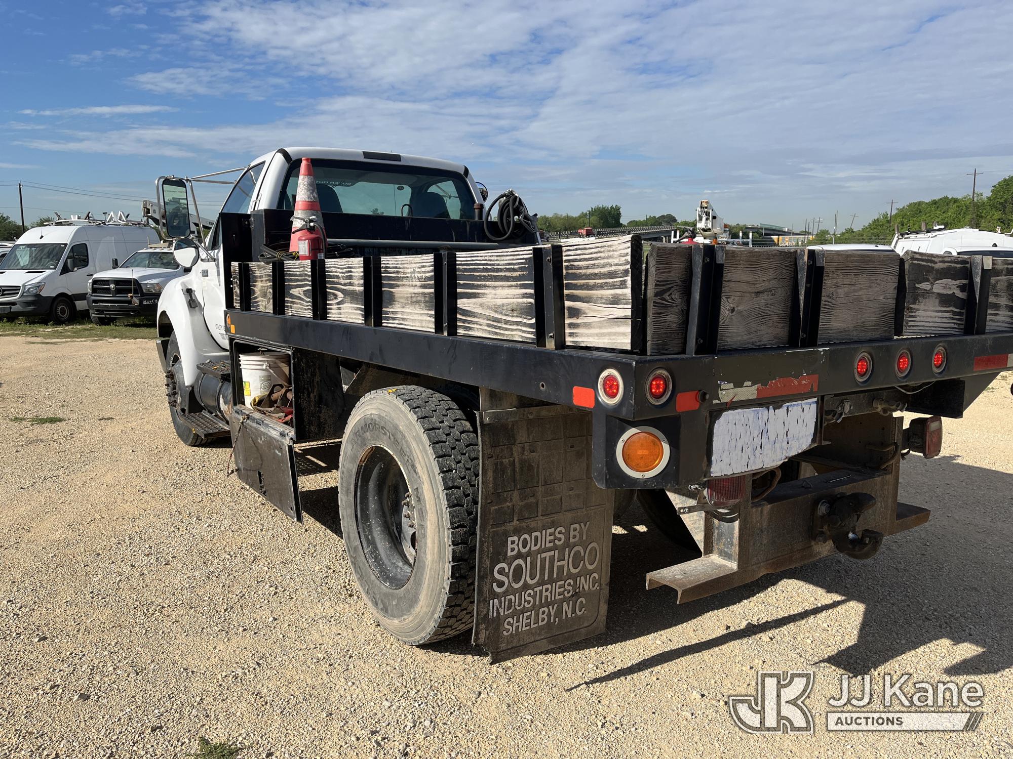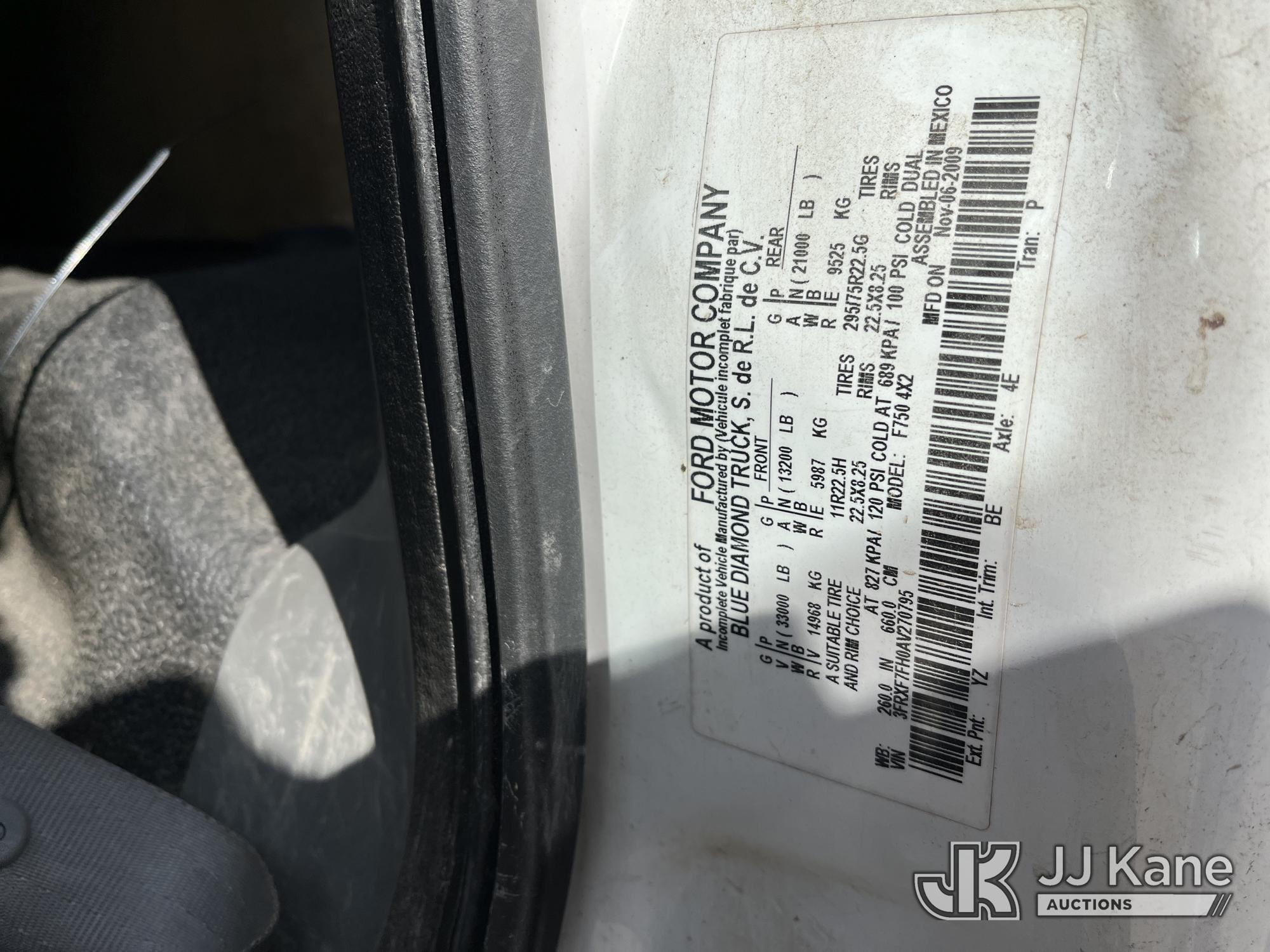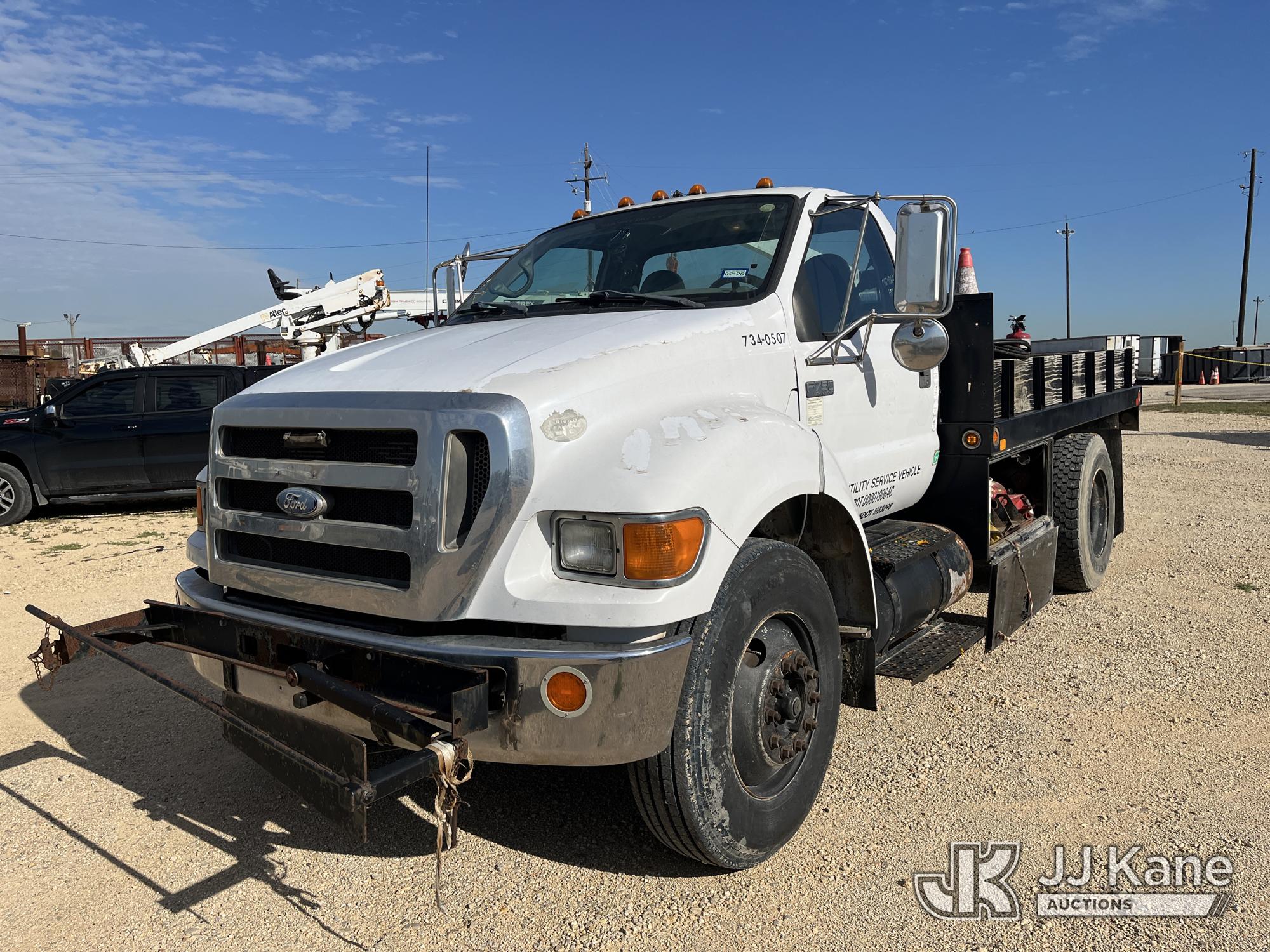 2010 Ford F-750 Regular Cab 2WD DRW Flatbed/Service Truck, 5.9L L6 DIESEL 4X2, manual, A/C, (101,109 miles) (Runs & Moves) (Cosmetic Issues, Minor Cracks On Hood, Rust Damage) This is a Titled Item*