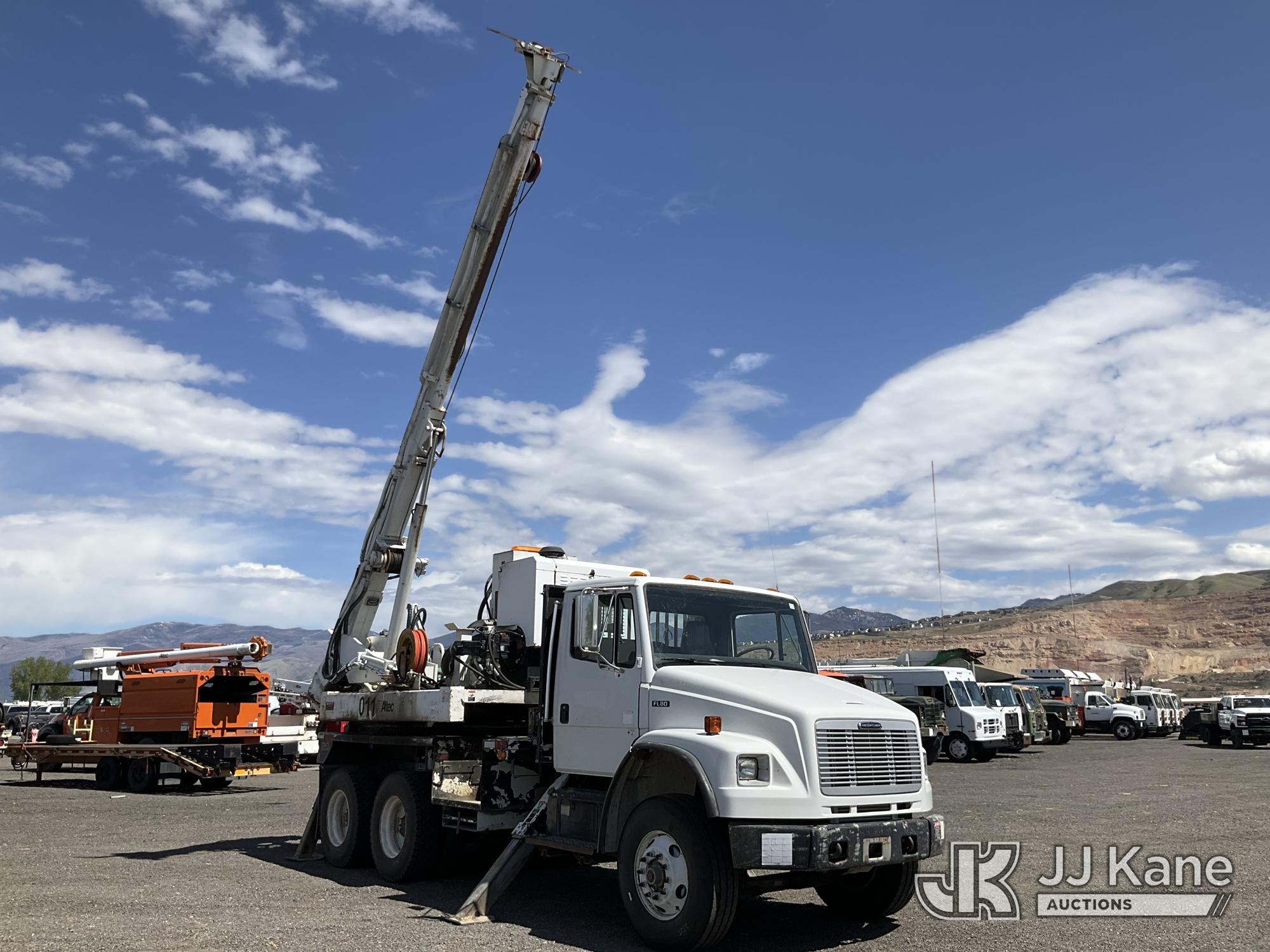 Altec HD35, Pressure Digger s/n 0500DK0104, John Deere diesel, with rotating table, pole guides, rear mounted on 2001 Freightliner FL80 T/A Flatbed/Utility Truck, 7.2L diesel, Auto, (Exempt from Odometer Disclosure - Reads 67,059 miles) (Runs, Moves & Upper Operates) This is a Titled Item*