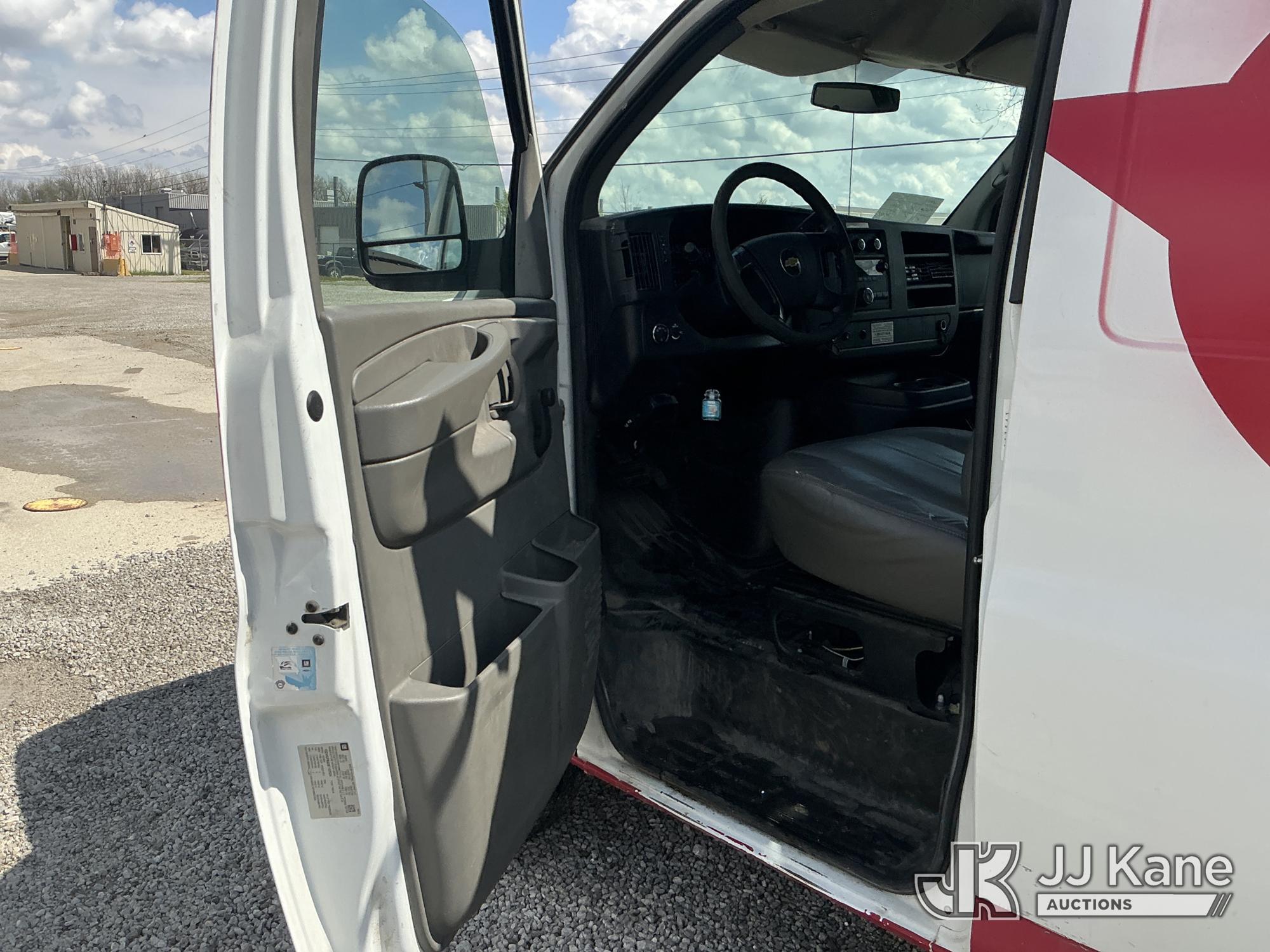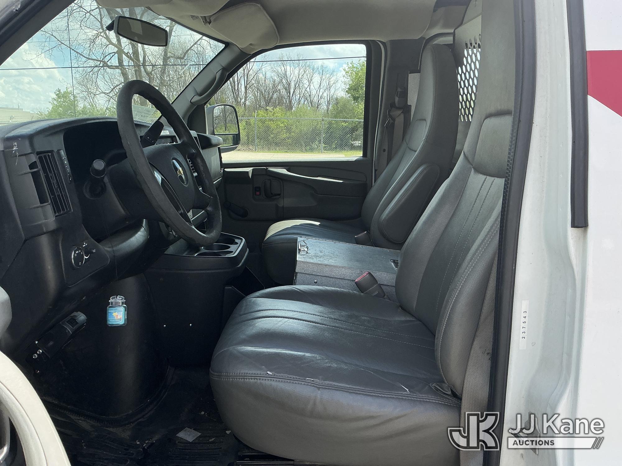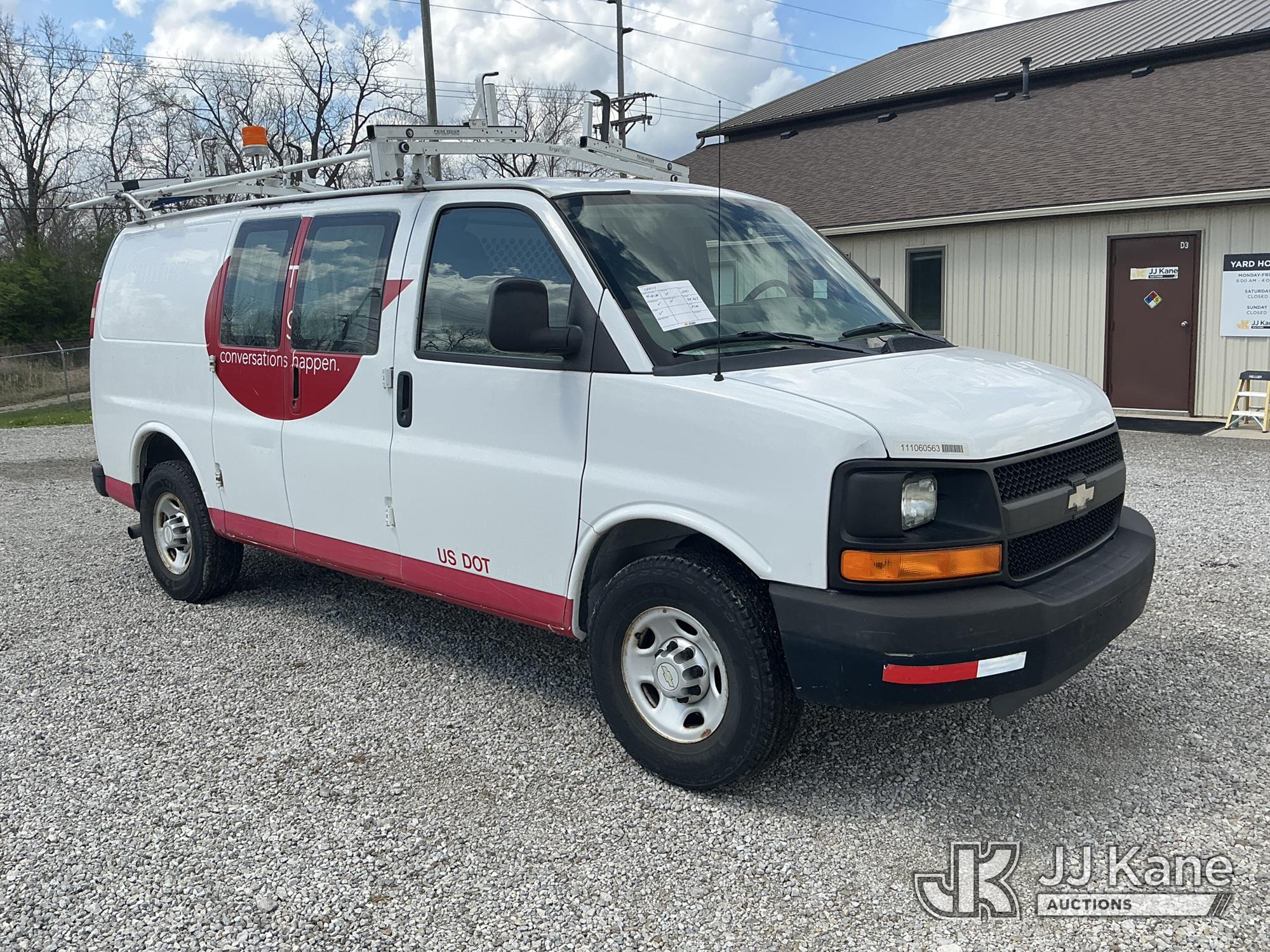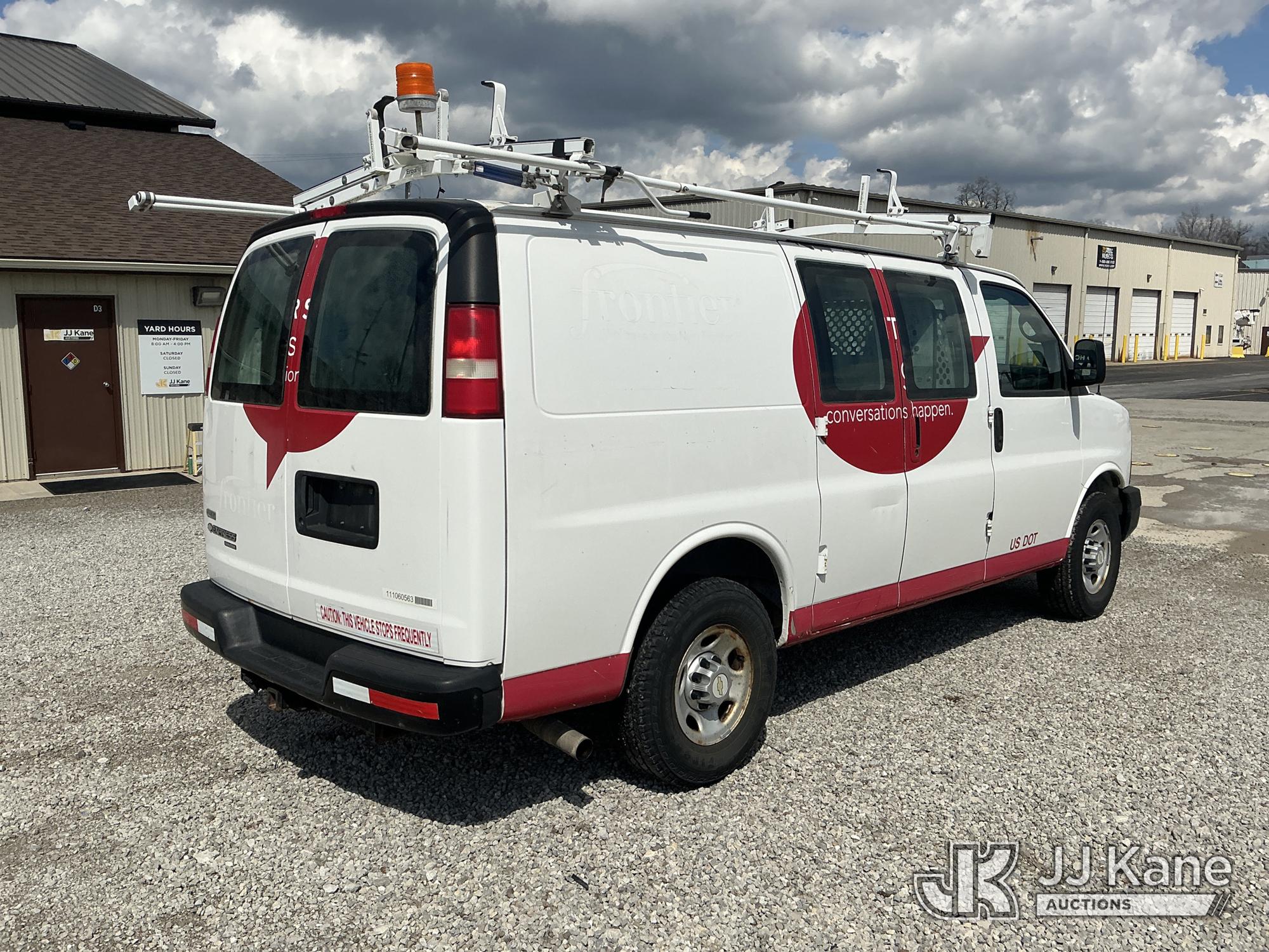 2011 Chevrolet Express G2500 Cargo Van, 8-cyl gas, RWD, Auto, A/C, with inverter, ladder rack, (88,467 miles) (Runs & Moves) (Body/Paint Damage) (Reads 6,879 hours) This is a Titled Item*