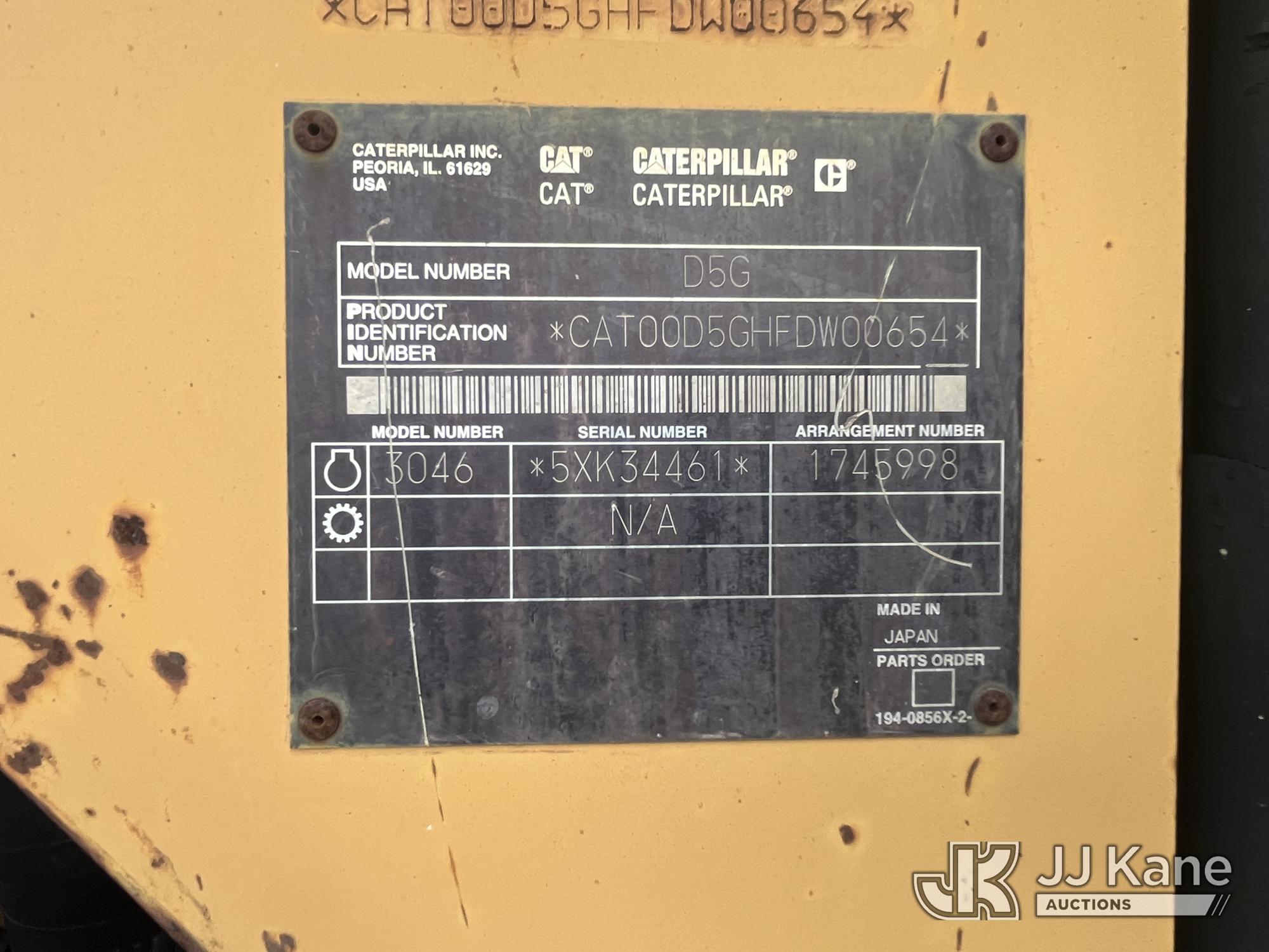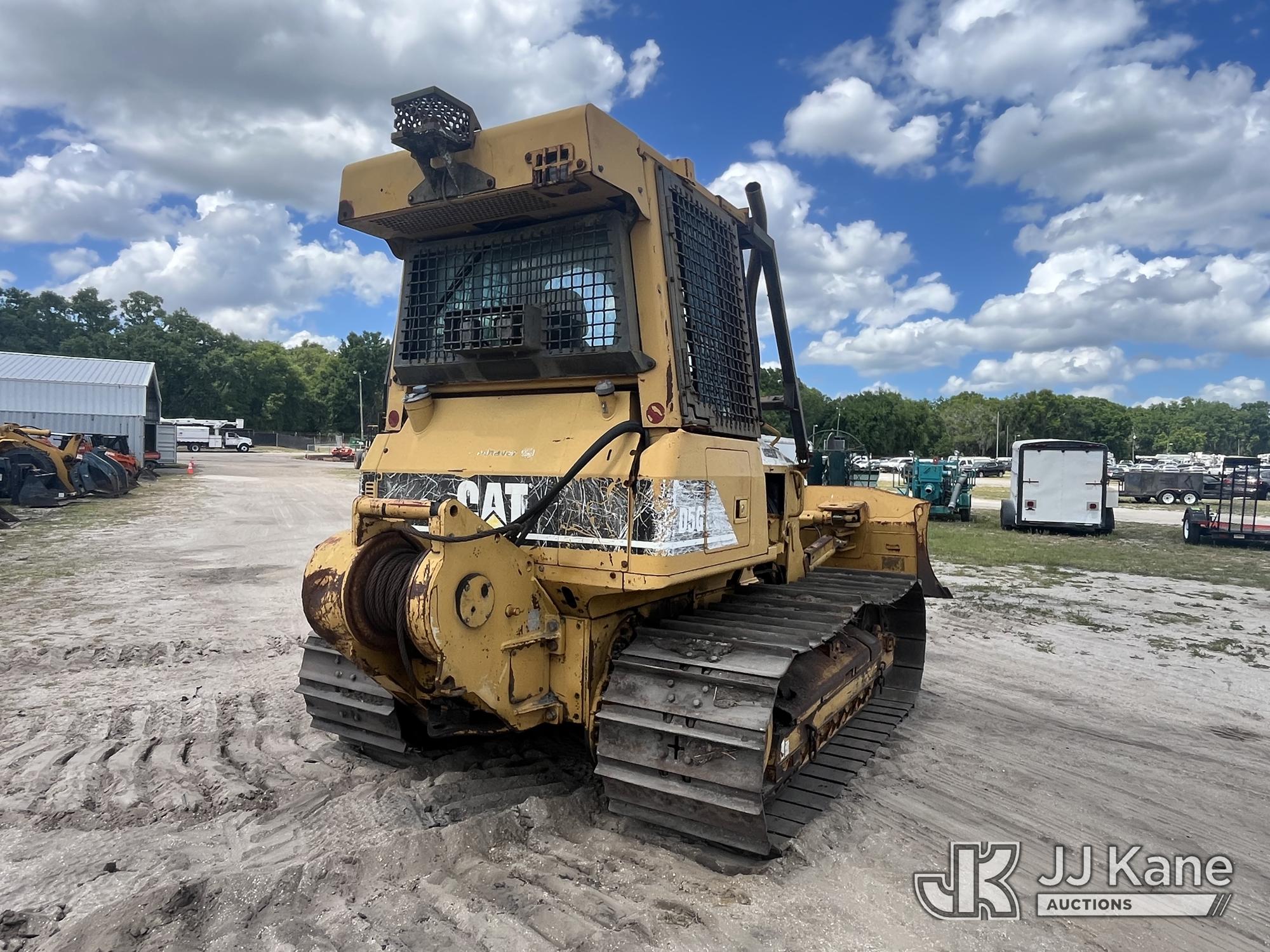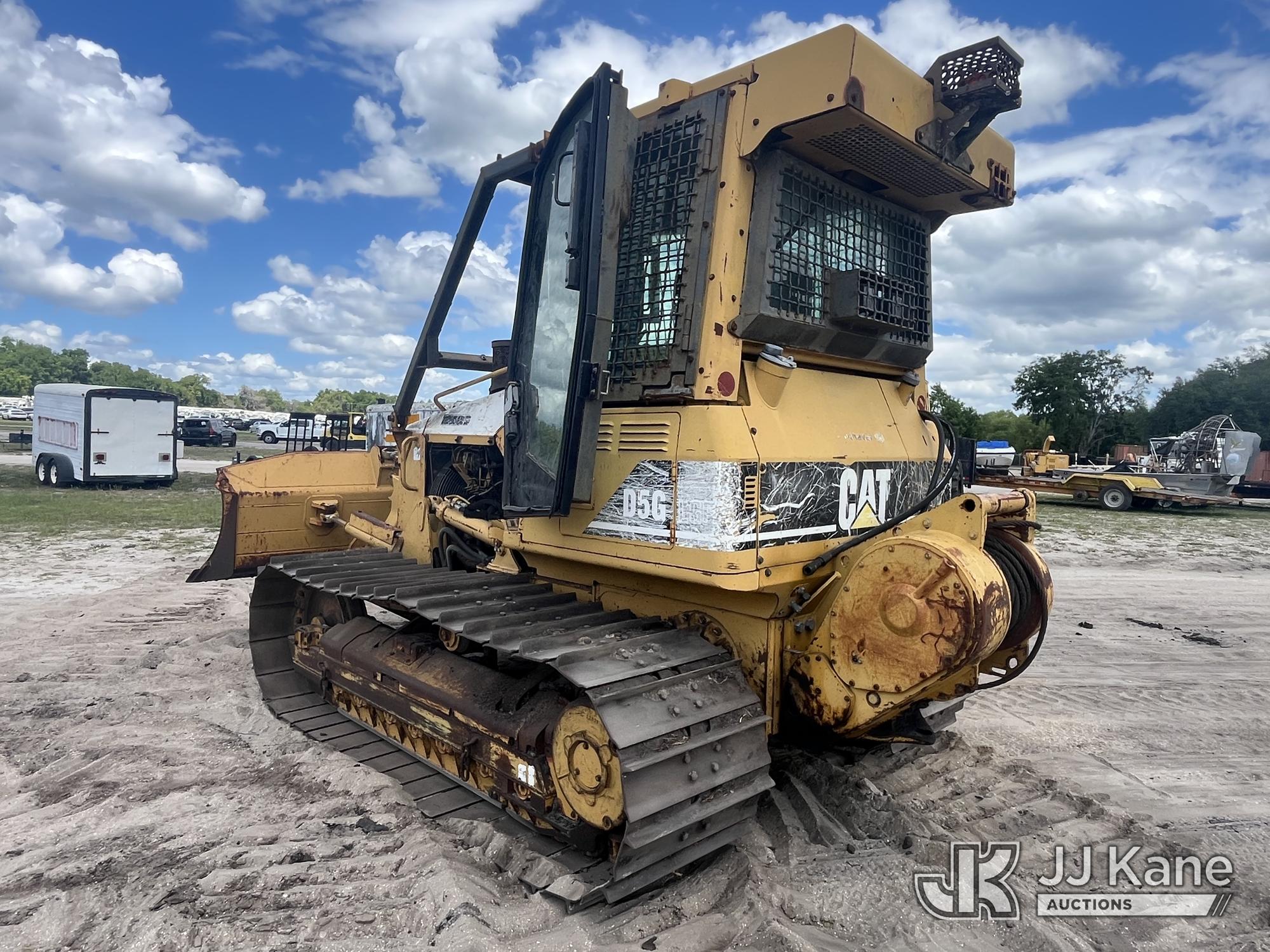 2002 Caterpillar D5G Crawler Tractor, s/n CAT00D5GHFDW00654, Cat diesel, Hydrostatic, with 6 way hyd. straight blade, rear winch & EROPS w/sweeps, screen & A/C, State of FL Unit (Runs, Moves) (Runs Rough, Exhaust Disconnect) (Reads 2,143 hours)*