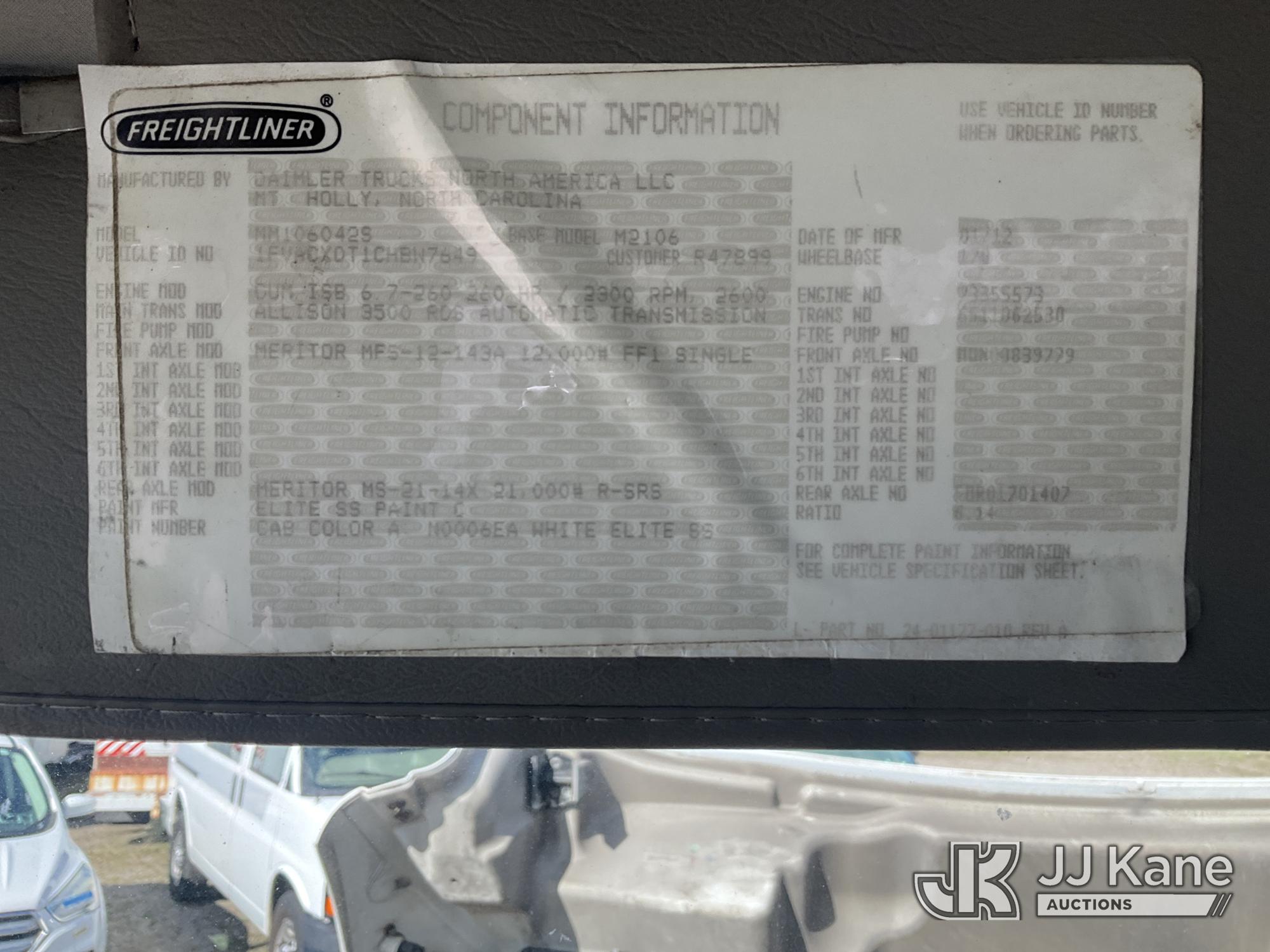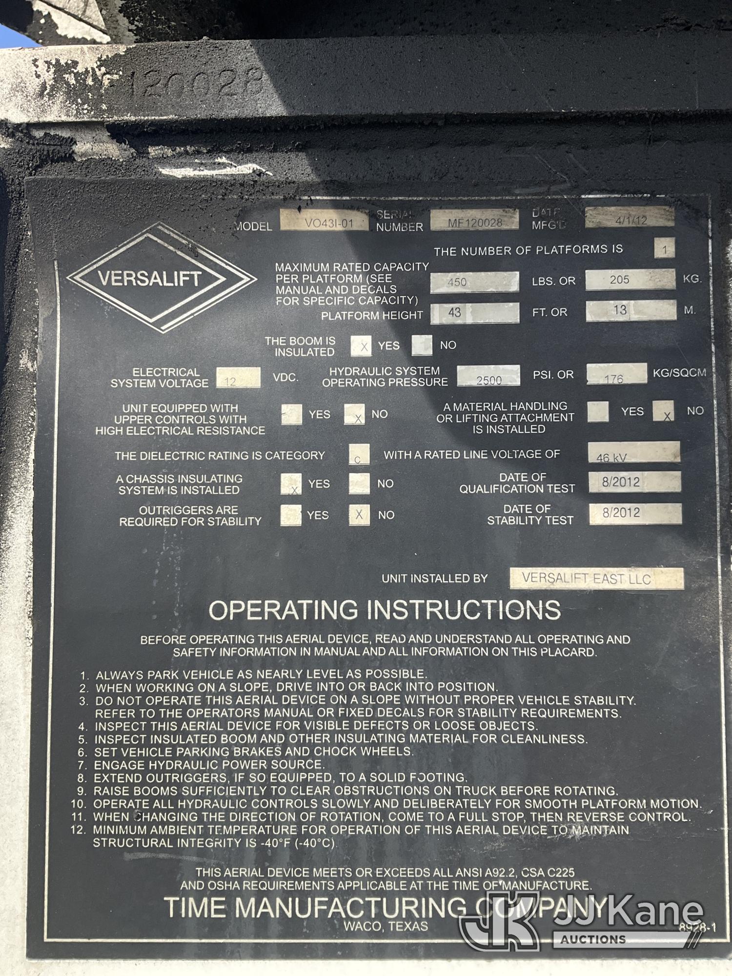 Versalift V043I-01, 48 ft, Over-Center Bucket Truck s/n MF120028, with Single Man Bucket, center mounted on 2012 Freightliner M2 106 Utility Truck, 6.7L diesel, Auto, A/C, (117,309 miles) (Runs, Moves & Upper Operates, Jump To Start, Check Engine Light On, DEF Light On) (Removal is by Appointment Only, Buyer MUST make a appointment prior to picking up, Buyer/Transporter Must have PAID IN FULL RELEASE. No onsite assistance available, Please Come prepared.) This is a Titled Item*