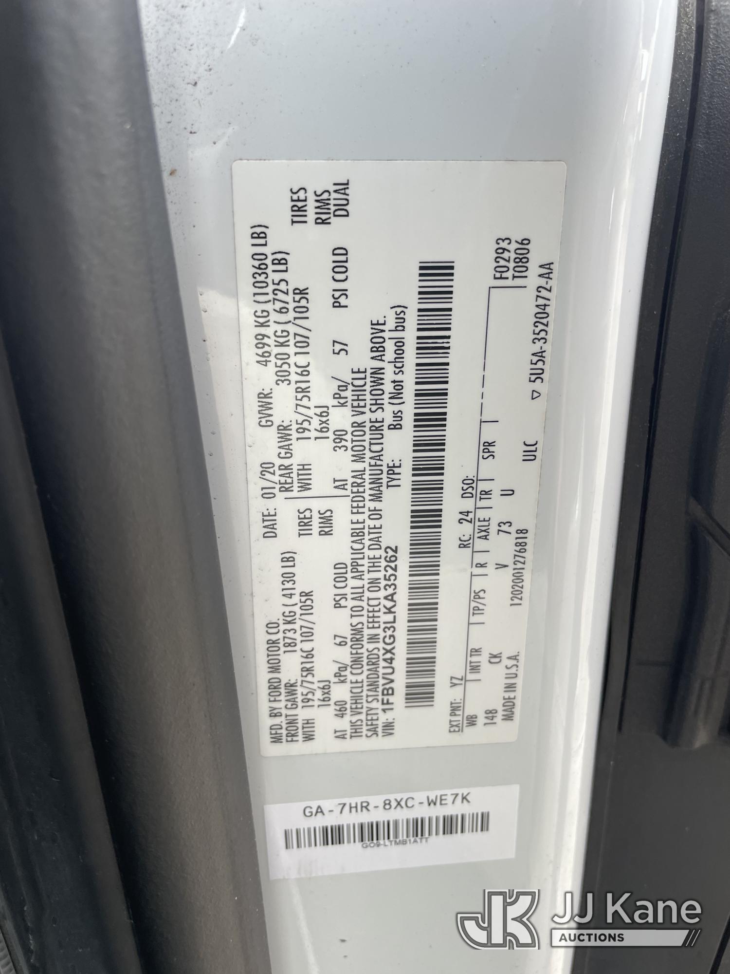 2020 Ford Transit Passenger Van, 6-cyl gas, 6-Speed Automatic, A/C, (025,470 miles) (Runs & Moves) (Jump To Start, Check Engine Light On,) (Seller States: Possible Transmission Issues) This is a Titled Item*
