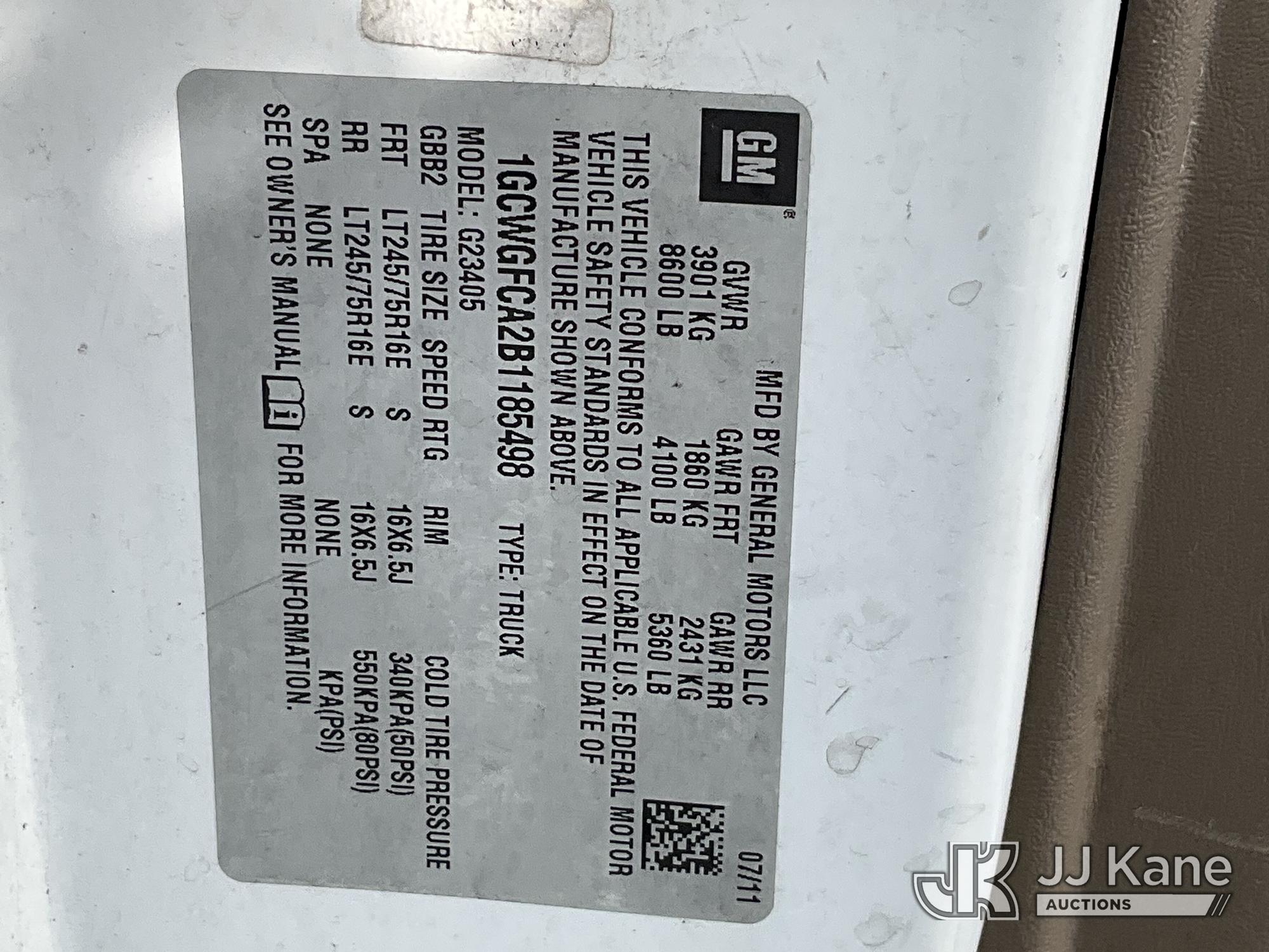 2011 Chevrolet Express G2500 Cargo Van, 4.8L V8 FFV, RWD, Automatic, A/C, (140,026 miles) (Runs & Moves, Check Engine Light On, Seller States: Internal Engine Noise, Misfire) (Removal is by Appointment Only, Buyer MUST make a appointment prior to picking up, Buyer/Transporter Must have PAID IN FULL RELEASE. No onsite assistance available, Please Come prepared.) This is a Titled Item*