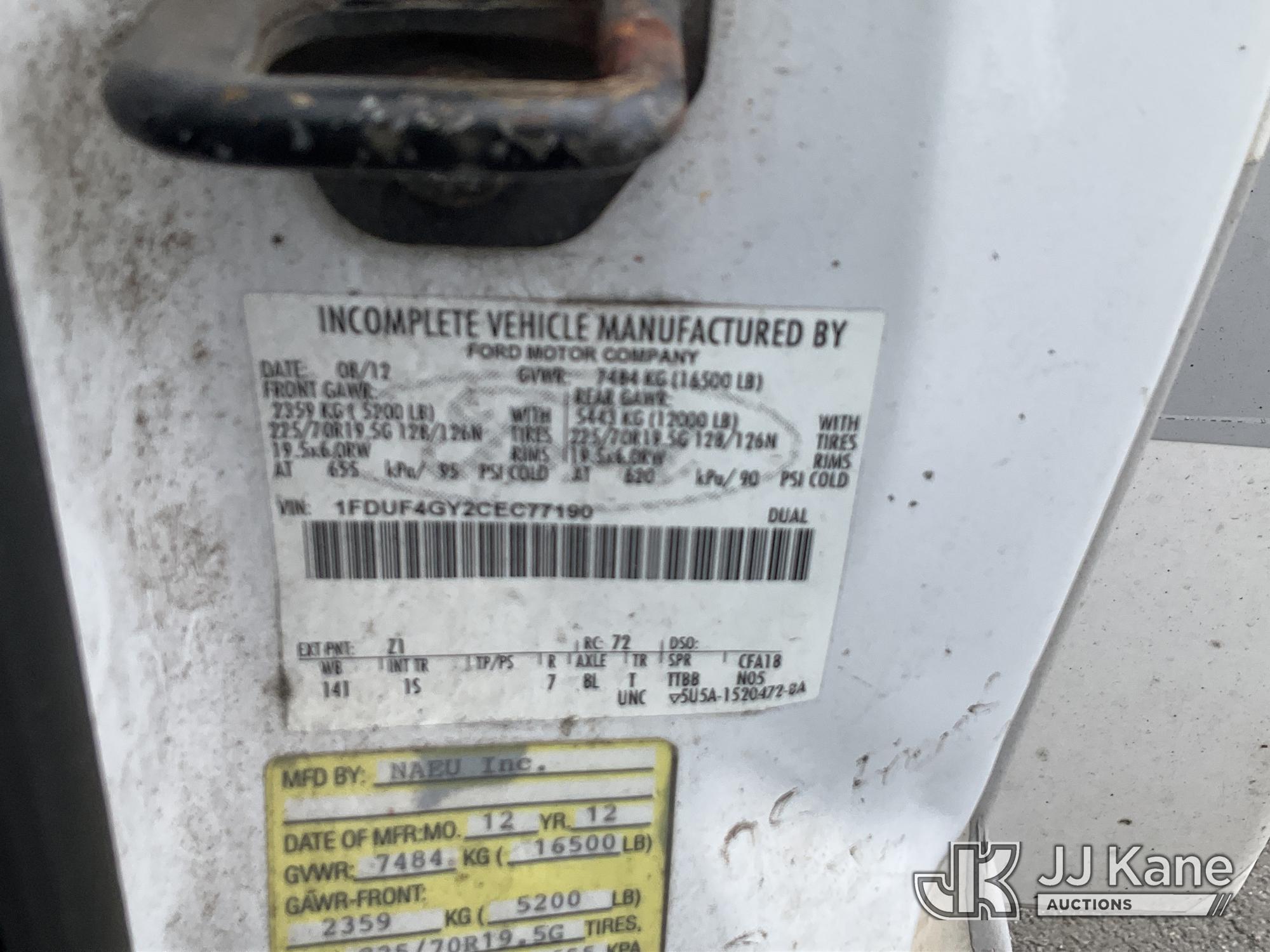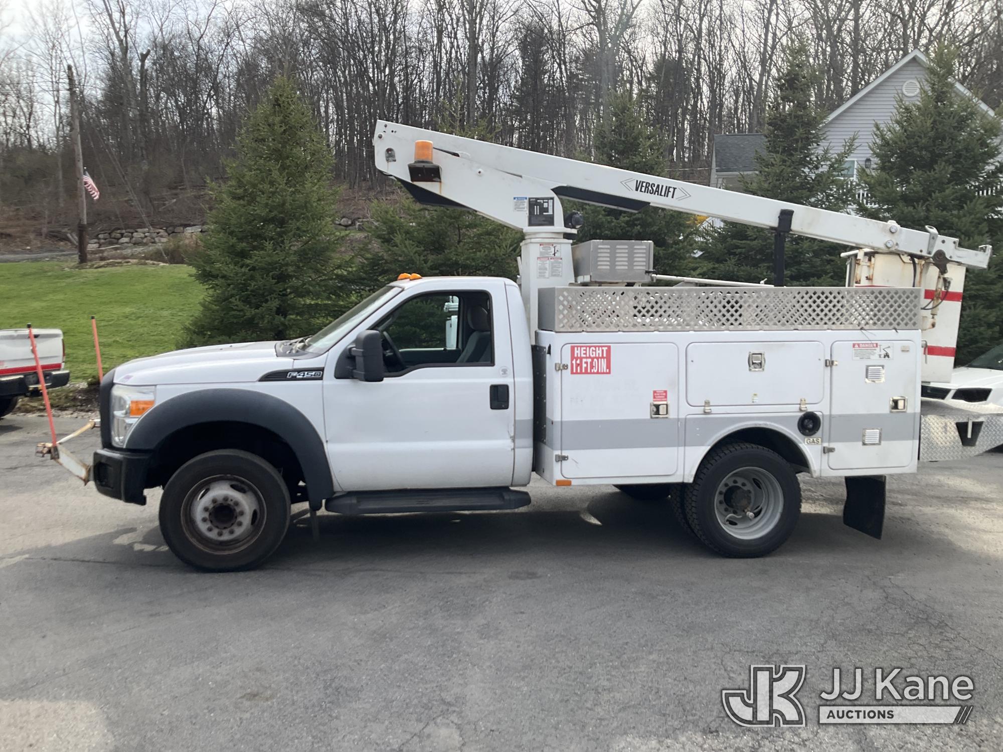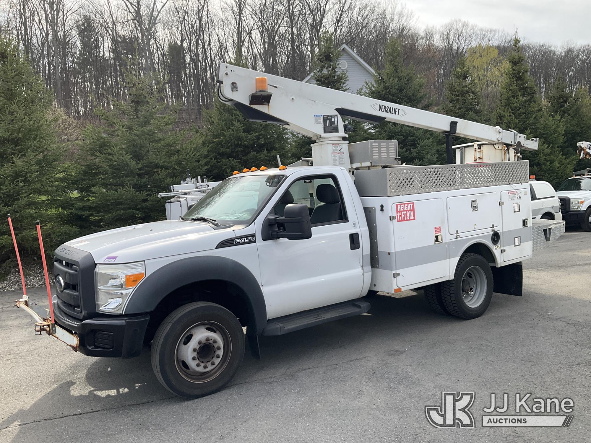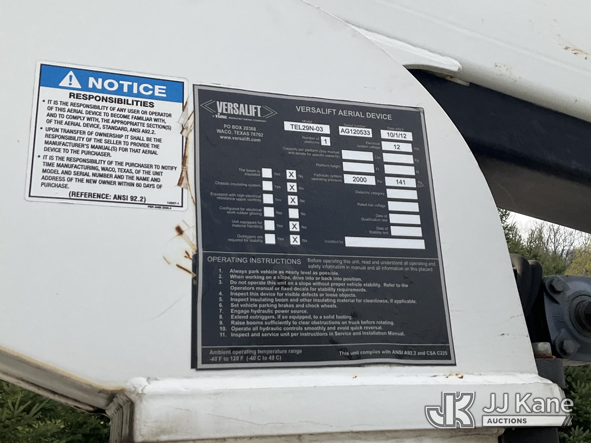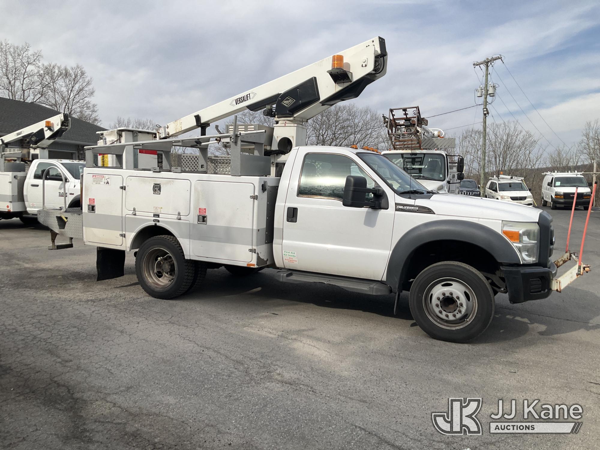 Versalift TEL29N-03, 34 ft, Telescopic Non-Insulated Bucket Truck s/n AG120533, with Single-Man Bucket, mounted behind cab on 2012 Ford F450 2WD Service Truck, 10-cyl gas, Auto, A/C, (122,689 miles) (Runs, Moves & Upper Operates) (Removal is by Appointment Only, Buyer MUST make a appointment prior to picking up, Buyer/Transporter Must have PAID IN FULL RELEASE. No onsite assistance available, Please Come prepared.) This is a Titled Item*