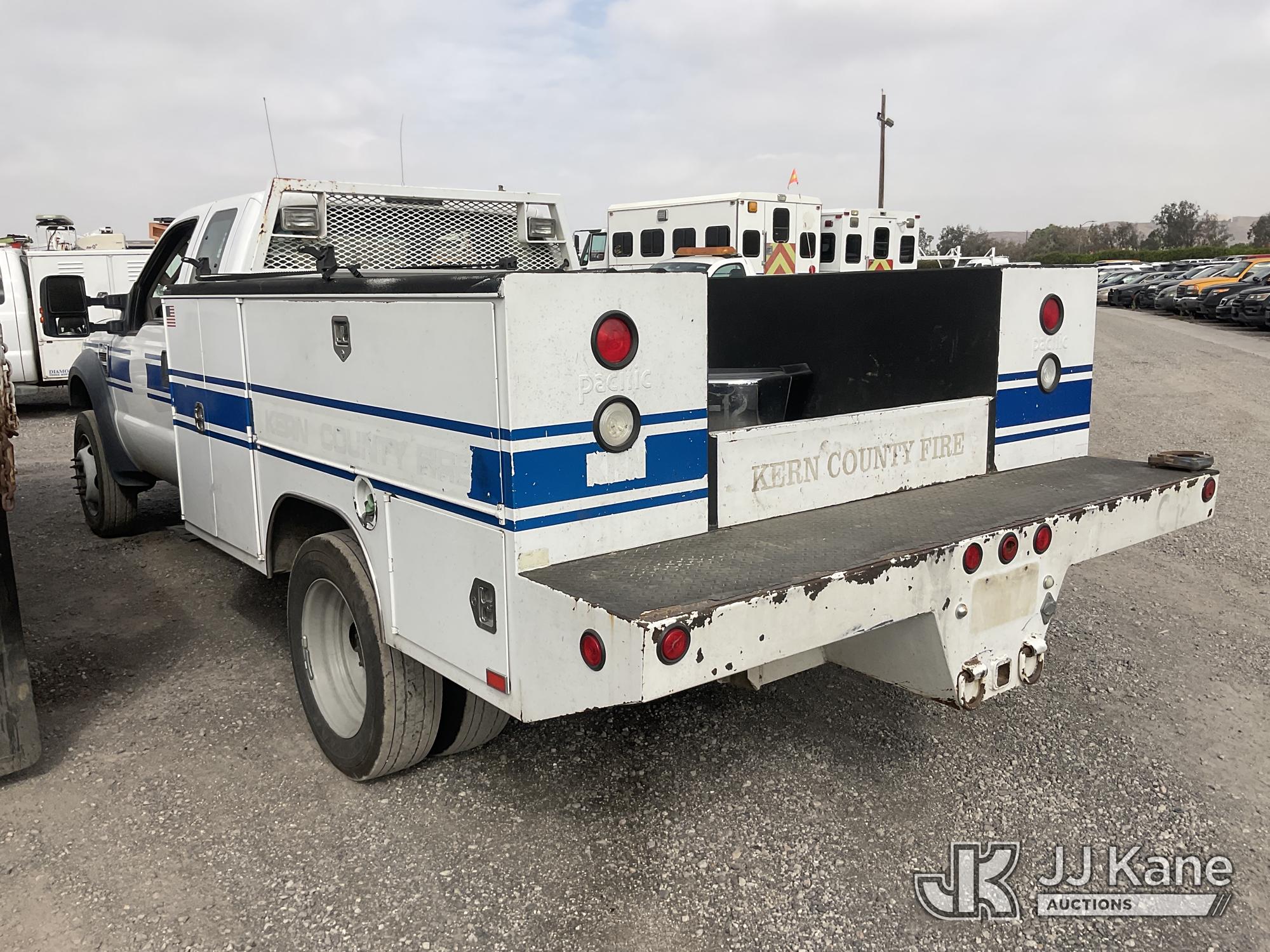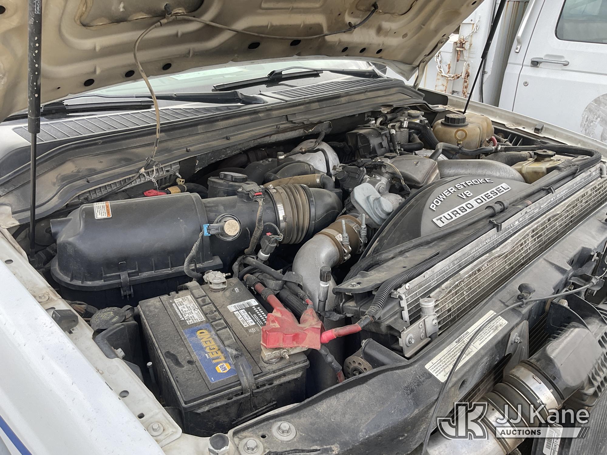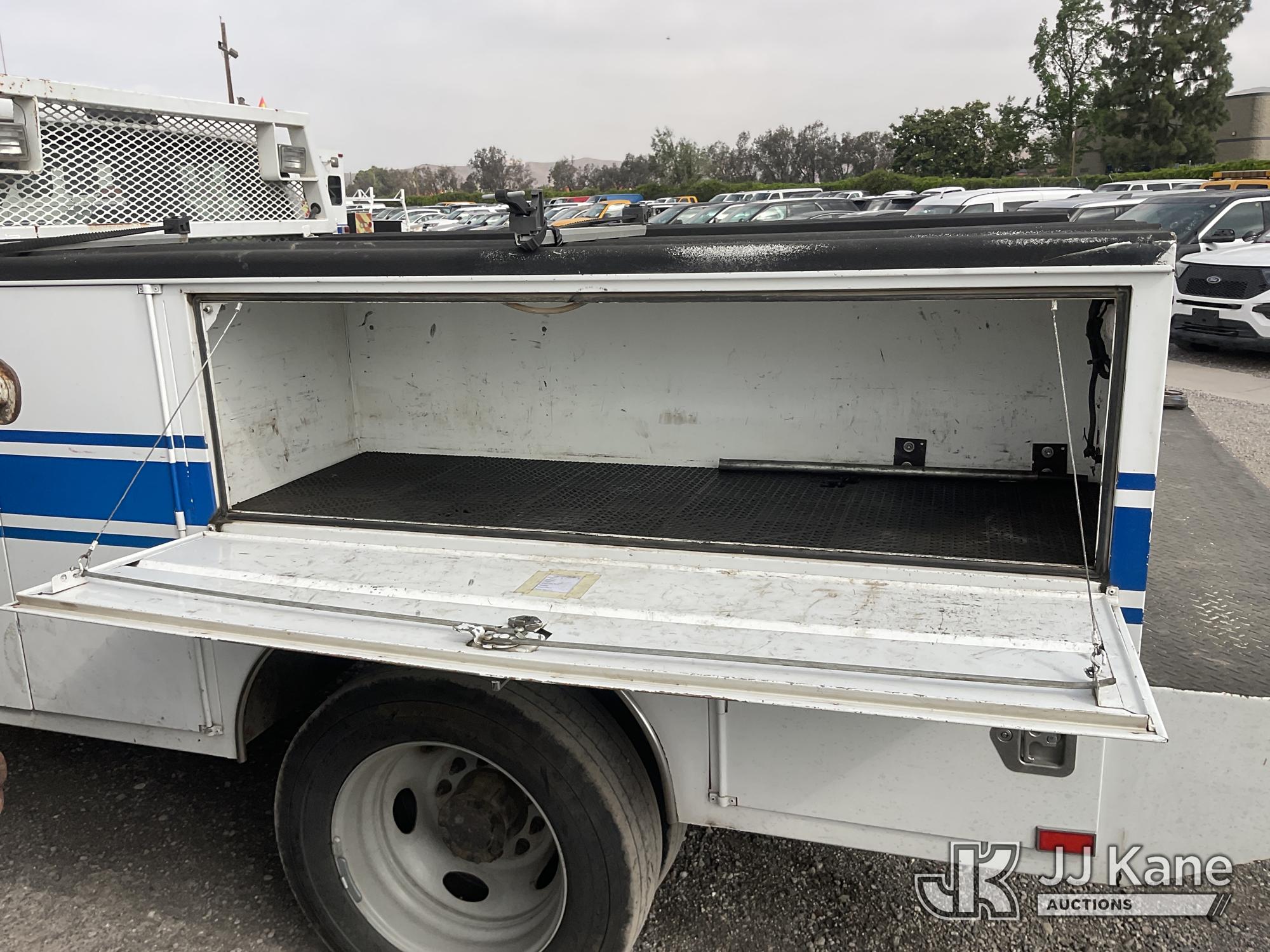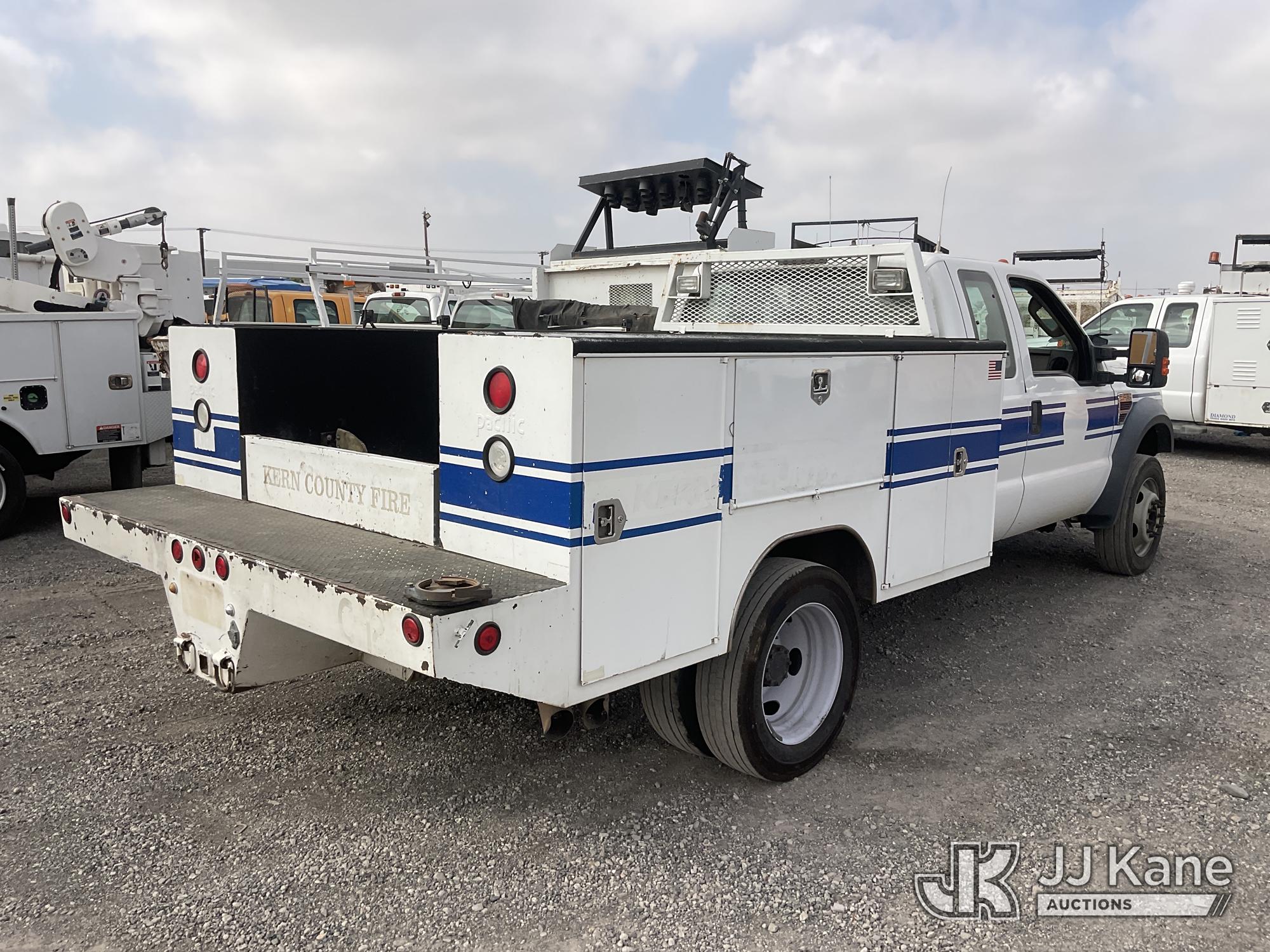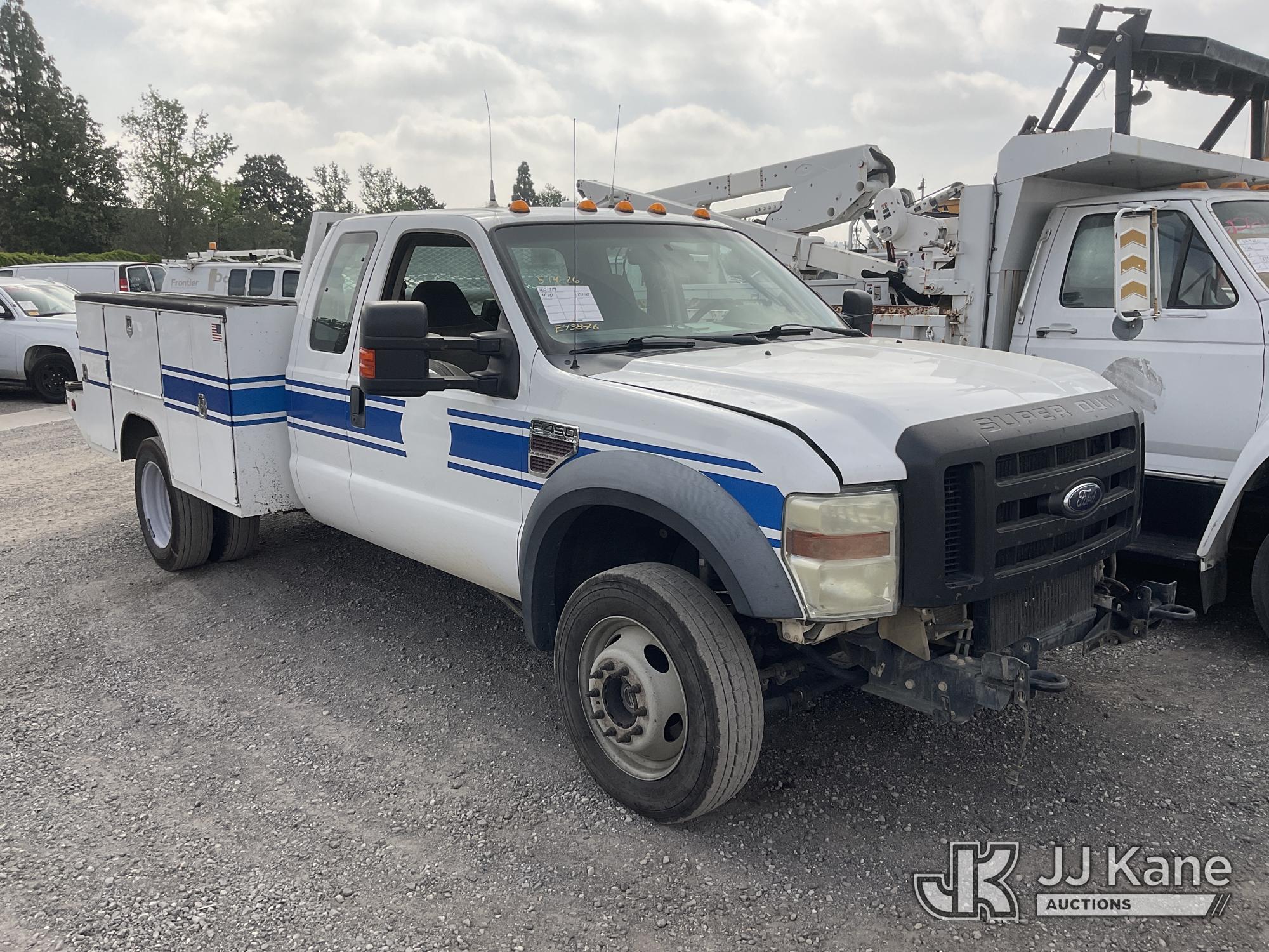 2008 Ford F-450 SD SuperCab 4WD DRW Crew-Cab Utility Truck, 6.4L V8 OHV 32V TURBO DIESEL 4WD, DIESEL, 5-spd, with Tow Package, (199,315 miles) (Not Running, Do Not Start, Oil Leaks When Running Engine) (Bidding Restricted to Licensed Vehicle Dealers Only), Subject to CARB Regs,CARB non Compliant,Cannot Operate on CA Roads/Highways until Compliant This is a Titled Item*
