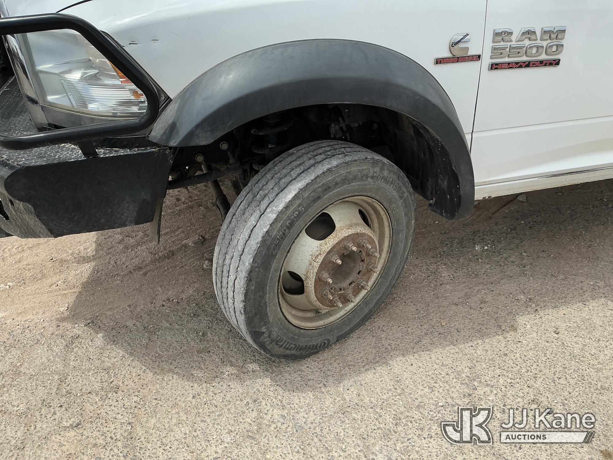 2015 RAM 5500 Crew-Cab Flatbed/Service Truck, Cummins 6.7L Diesel 4WD, Auto, A/C, with front brush guard , (100,833 miles) ((Runs & Moves) (Seller States: 4x4 Does Not Work, Jump to Start, Wiring Issues )) (Reads 4,675 hours) This is a Titled Item*