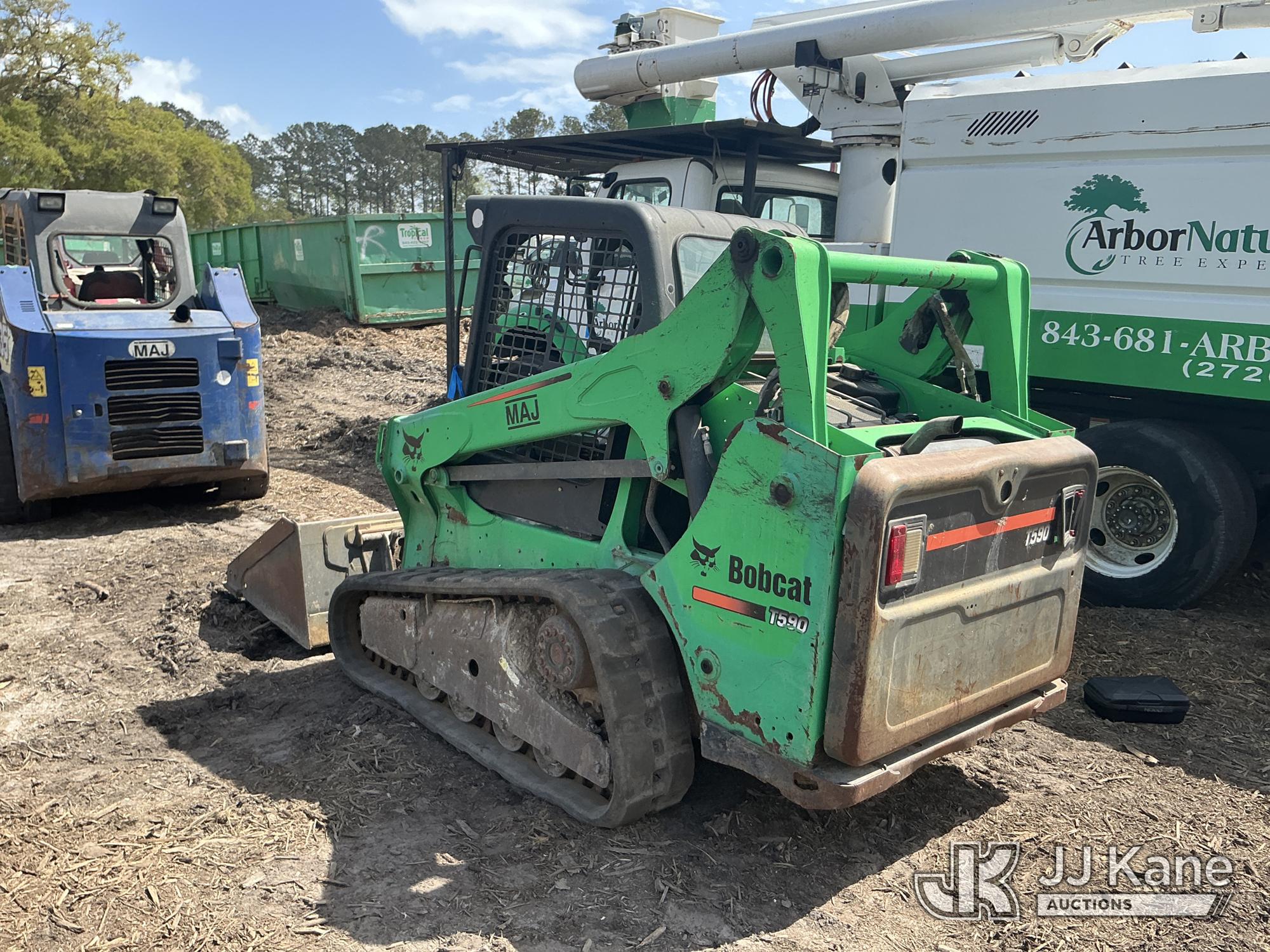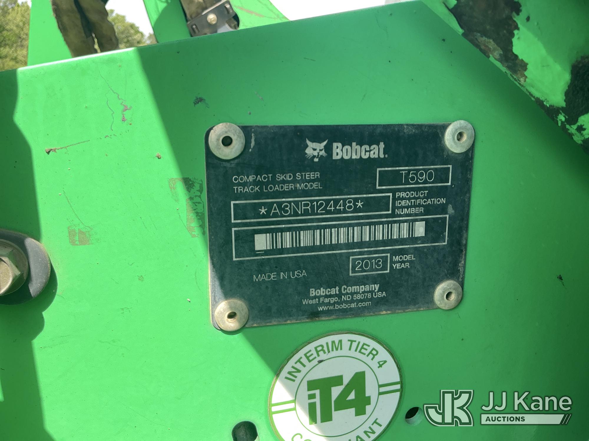 2013 Bobcat T590 Crawler Skid Steer Loader, s/n A3NR12448, 2.4L diesel, Hydrostatic, with GP loader bucket, aux hydraulics, rubber tracks, ROPS, (Runs & Moves) (Hour Meter Inop)*