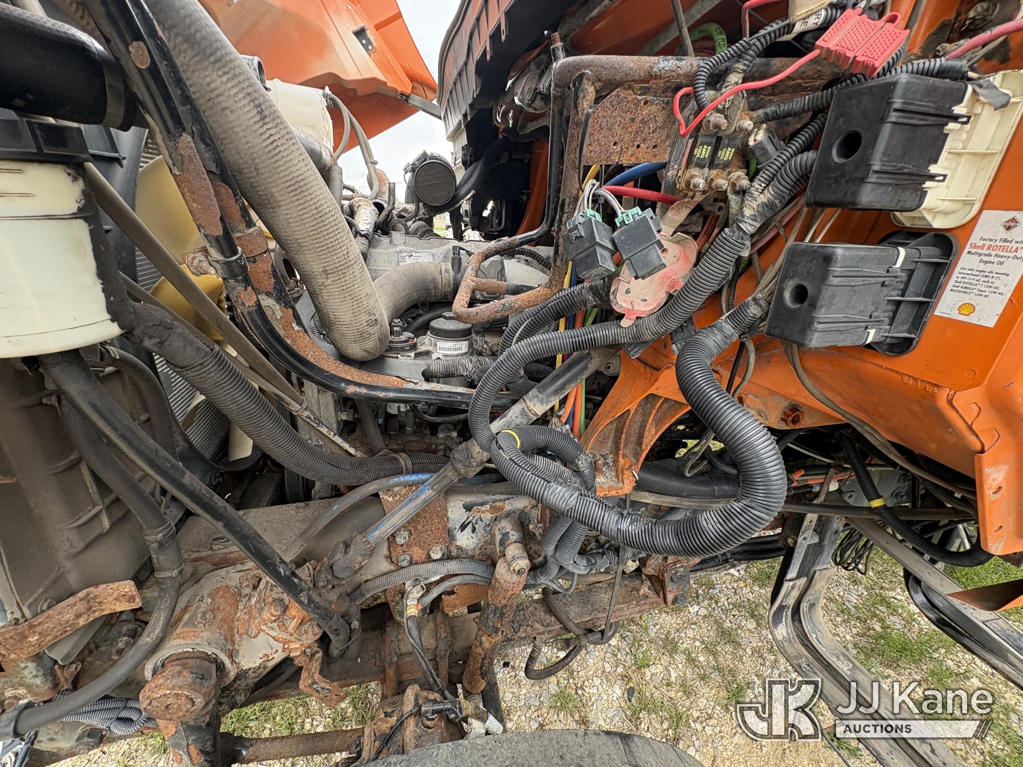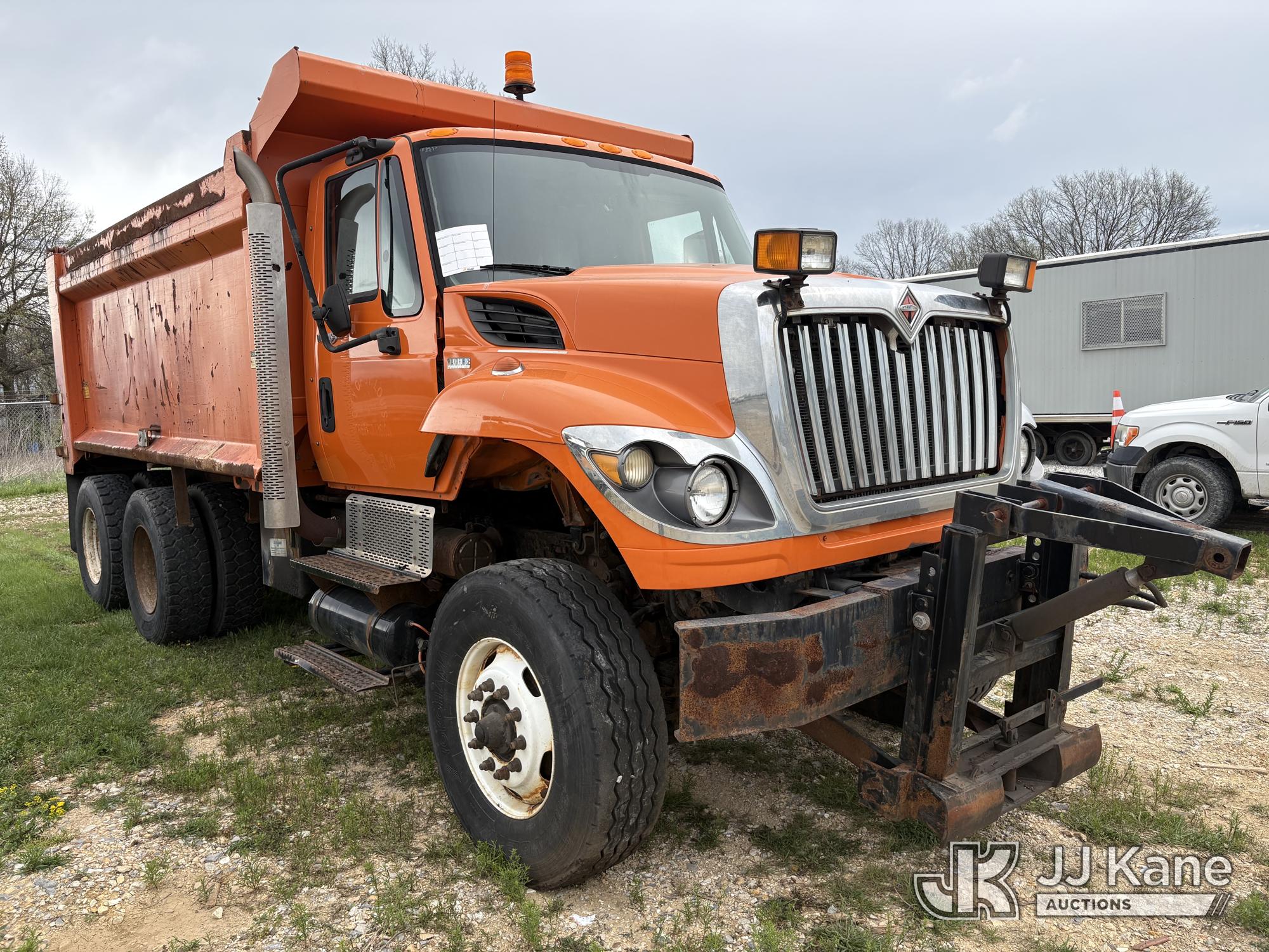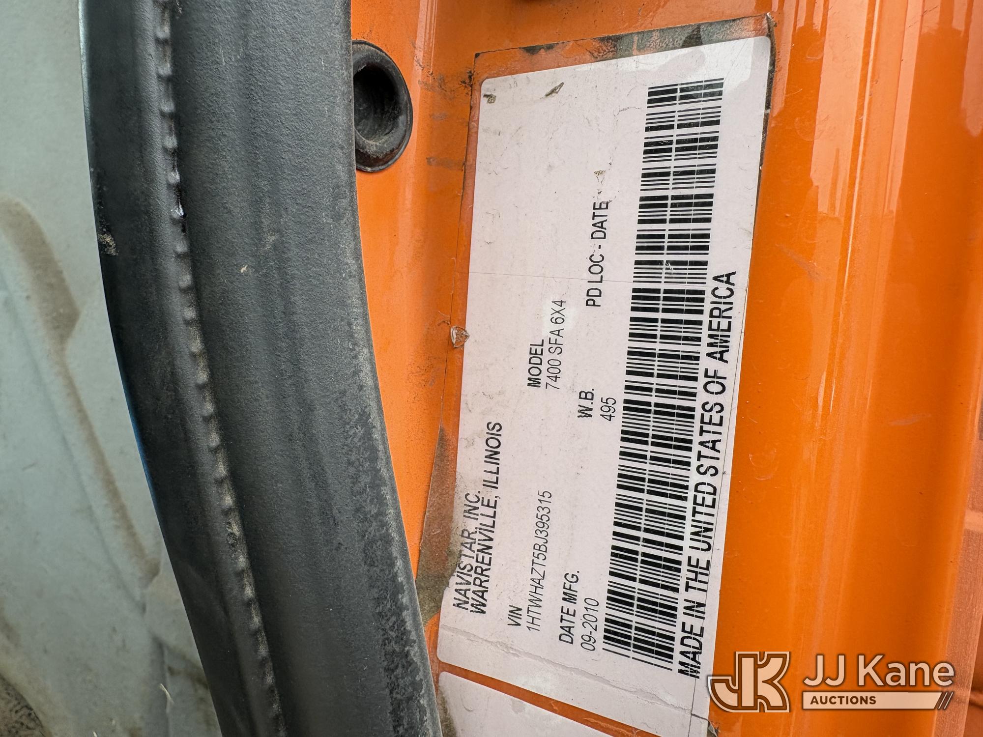 2011 International 7400 T/A Dump Truck, s/n 1HTWHAZT5BJ395315, 9.3L L6 DIESEL 6X4, Auto, A/C, with Front Bumper Plow Attachment, True Mileage Unknown ((Not Running, Condition Unknown) (Engine Components Missing, Drivetrain Components Disconnected or Missing, Corrosion, Interior Defects-See Pictures)) This is a Titled Item*