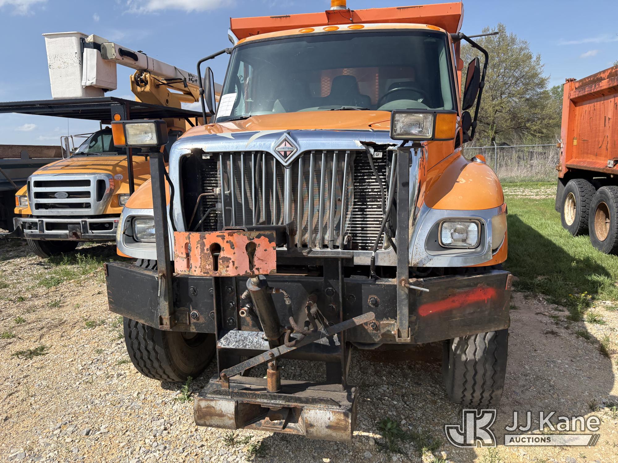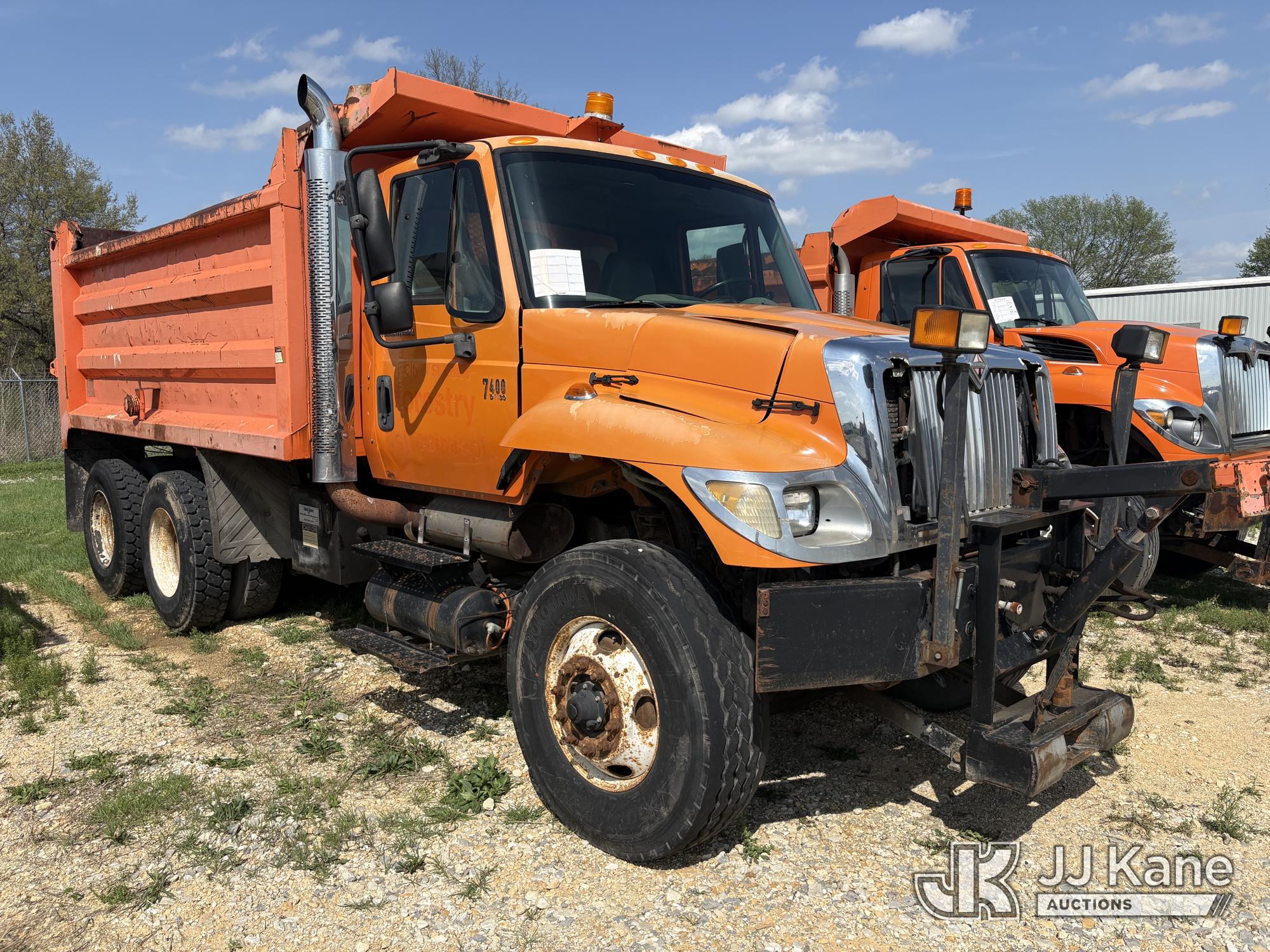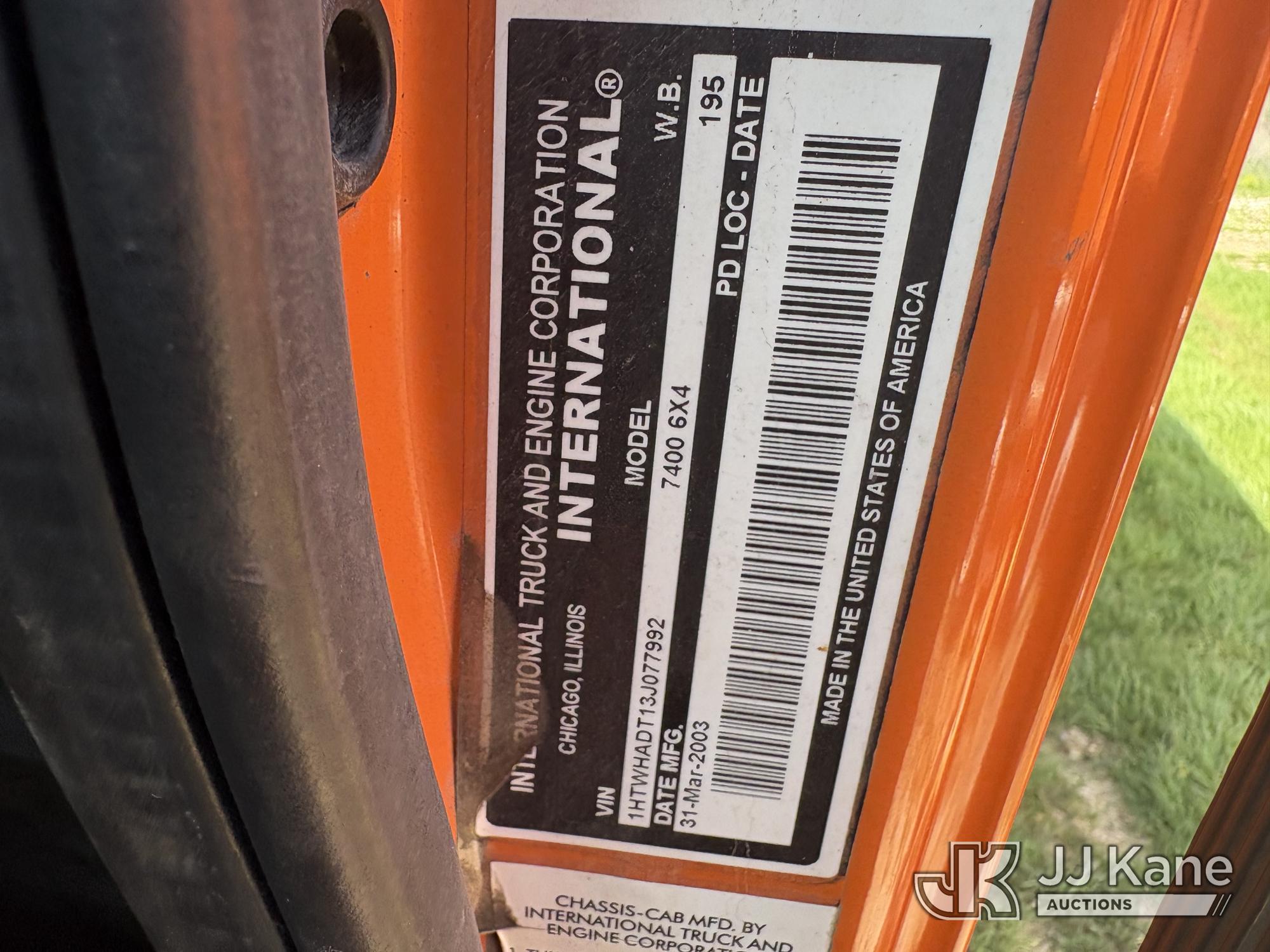 2003 International 7400 T/A Dump Truck, s/n 1HTWHADT13J077992, 8.7L L6 DIESEL 6X4, Auto, with Front Bumper Plow Attachment, True Mileage Unknown ((Not Running, Condition Unknown) (Engine or Major Components Missing, Upper Condition Unknown, Corrosion, Exterior Defects-See Pictures)) This is a Titled Item*