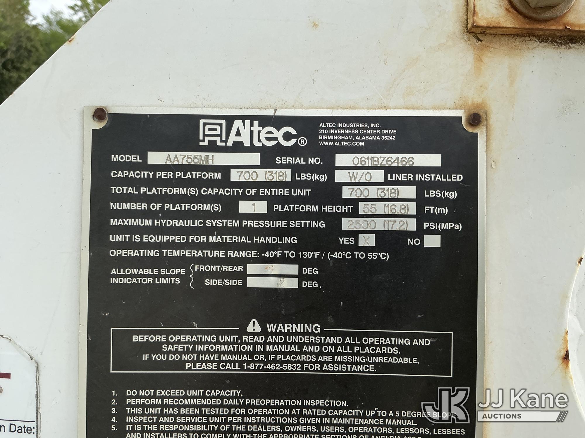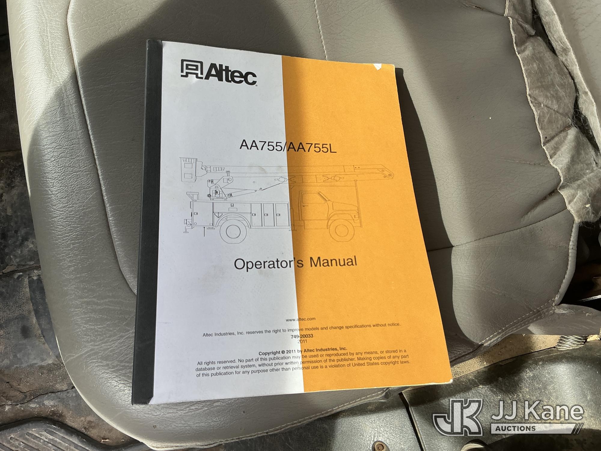 Altec AA755-MH, 60 ft, Material Handling Bucket Truck s/n 0611BZ6466, with two man bucket , rear mounted on 2012 Freightliner M2 106 Utility Truck, Cummins ISB-250 6.7L diesel, 4X4, Auto, A/C, (122,159 miles) (Runs, Moves & Upper Operates) (The manufacturer has notified JJ Kane that this equipment is subject to an open recall. CSN 571 Chassis Air Brake Hose Replacement The equipment should not be operated until this is addressed. Buyer is responsible for reviewing the recall notice and contacting the manufacturer to schedule the recommended corrective actions. Associated costs may be covered by the manufacturer in some cases.) This is a Titled Item*