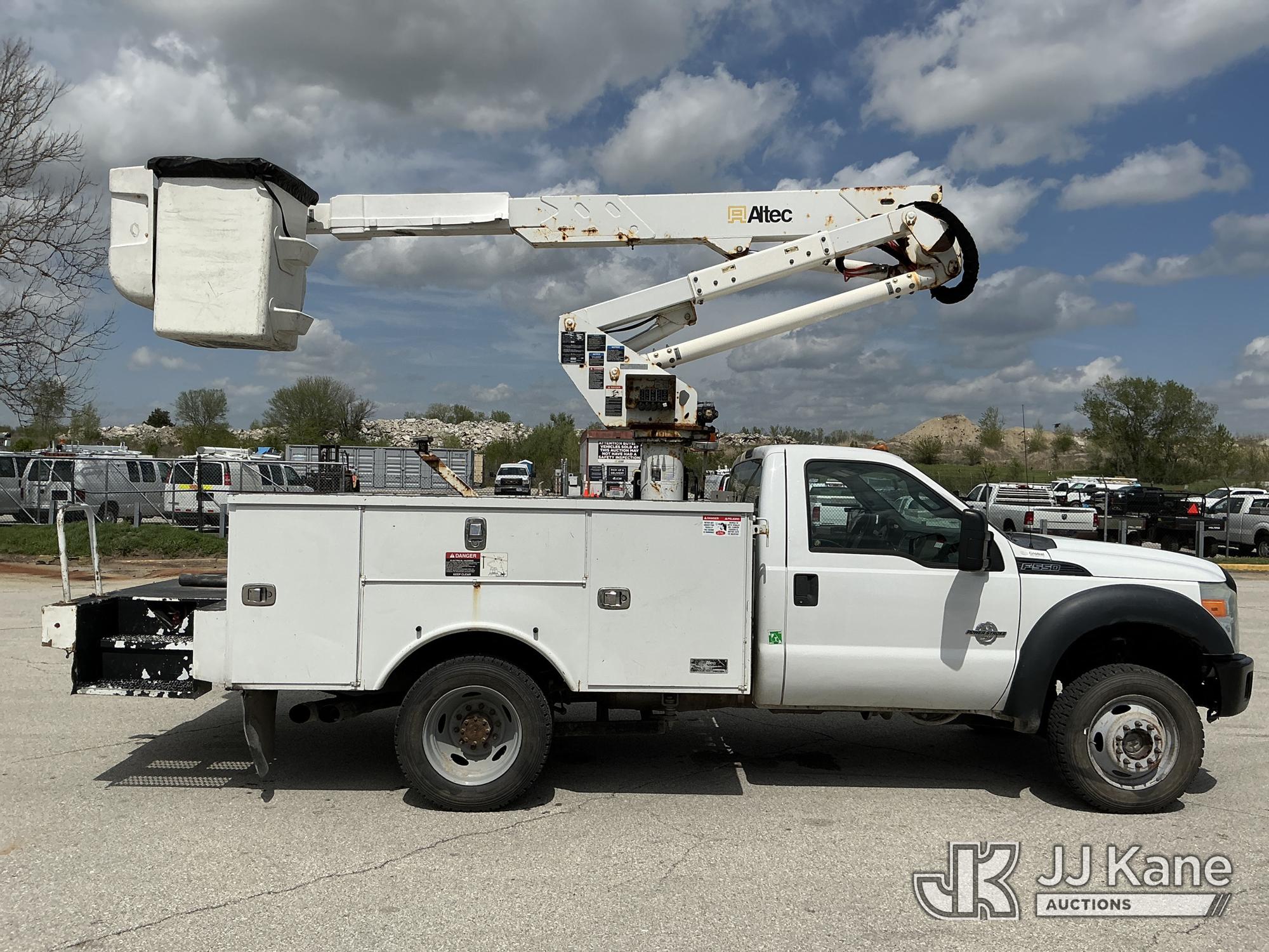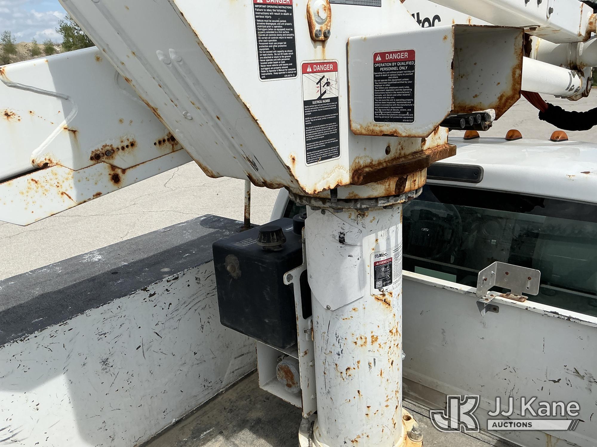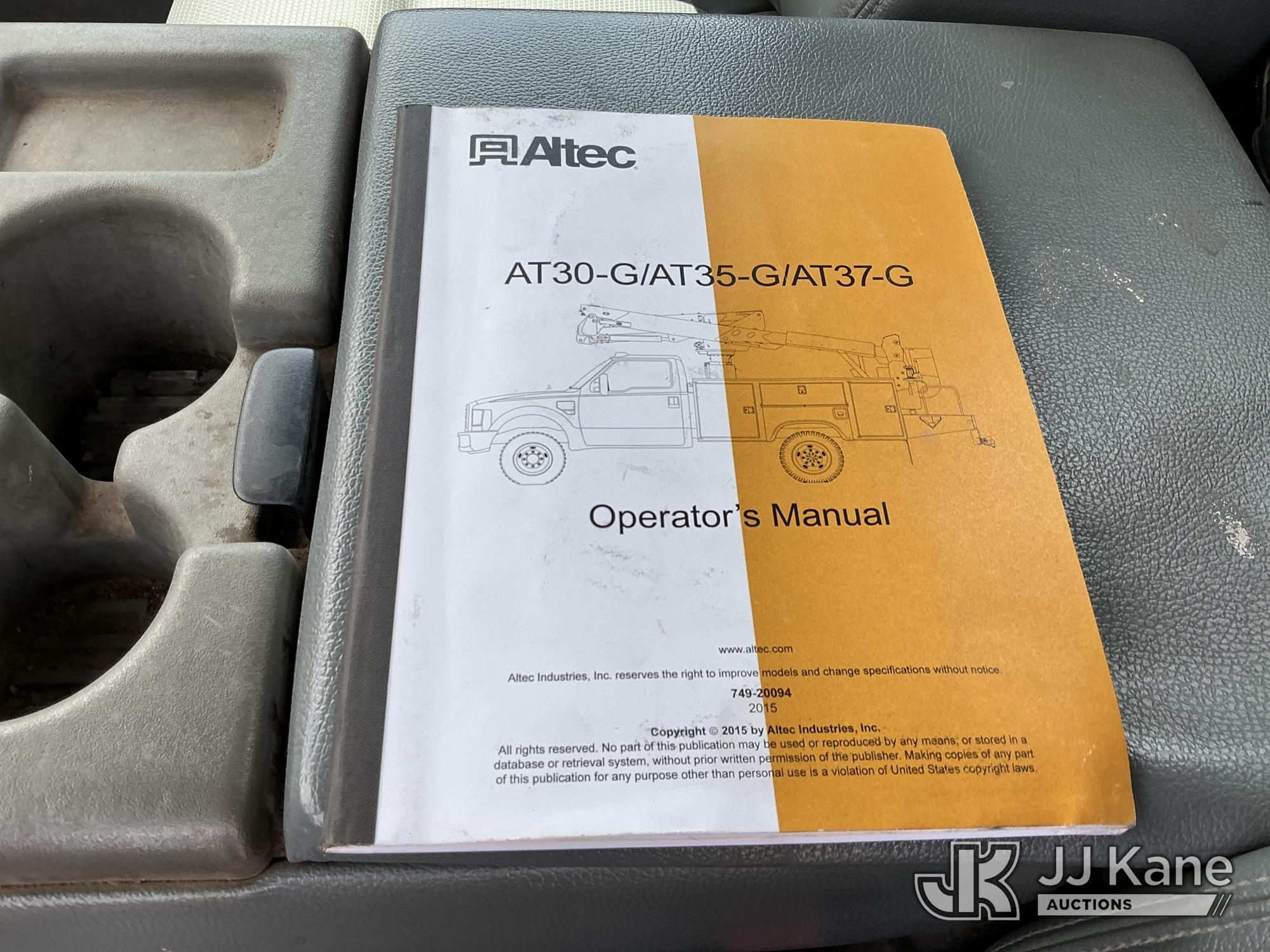 Altec AT37G, 42 ft, Articulating & Telescopic Bucket s/n 0815DE18269, with Single-Man Bucket, mounted behind cab on 2016 Ford F-550 Service Truck, 6.7L Diesel 4WD, auto, A/C, (179,120 miles) (Runs, Moves & Upper Operates) ( Dash Warning Indicator See Photo ) ) (Reads 13,566 hours) This is a Titled Item*