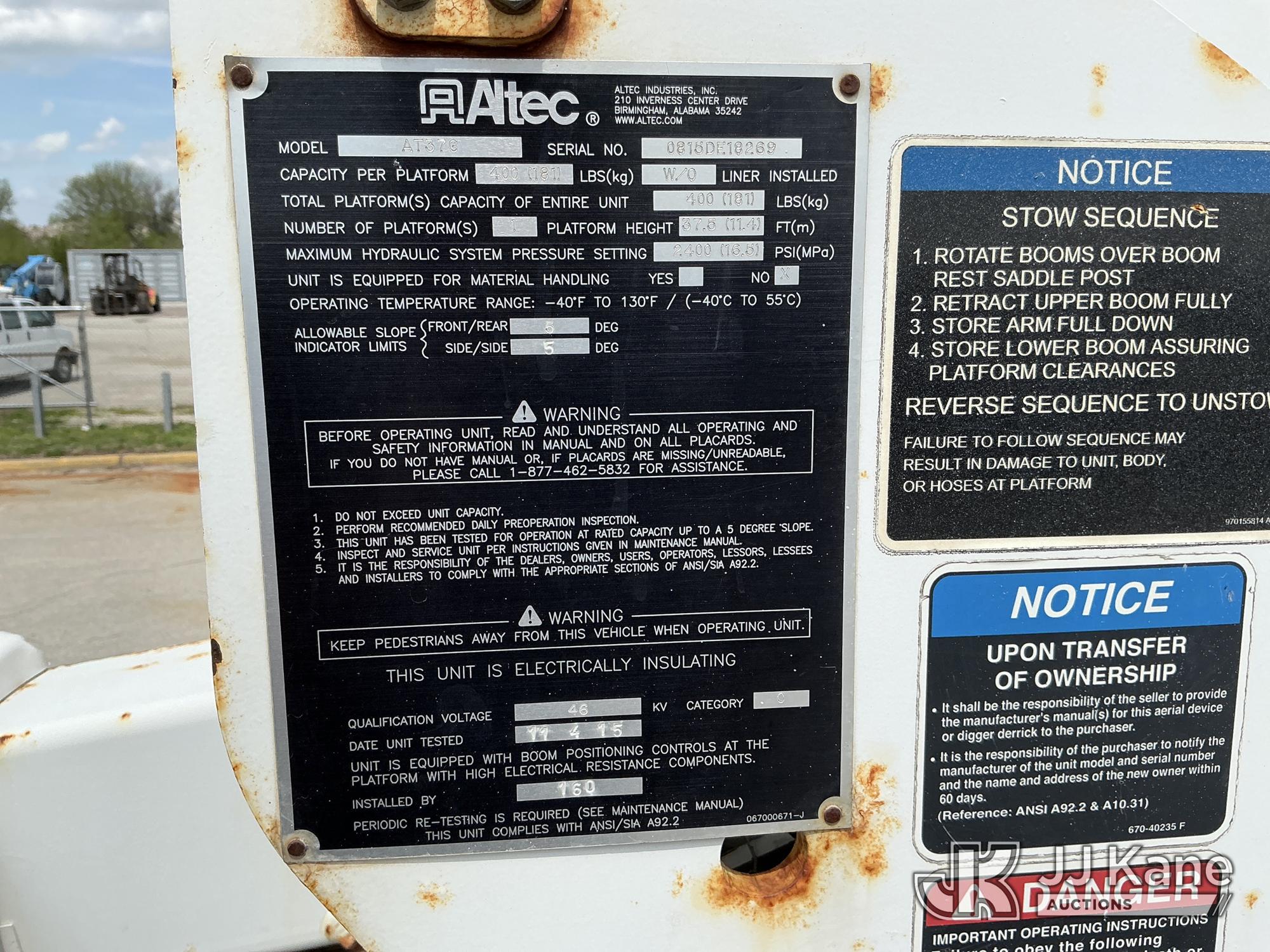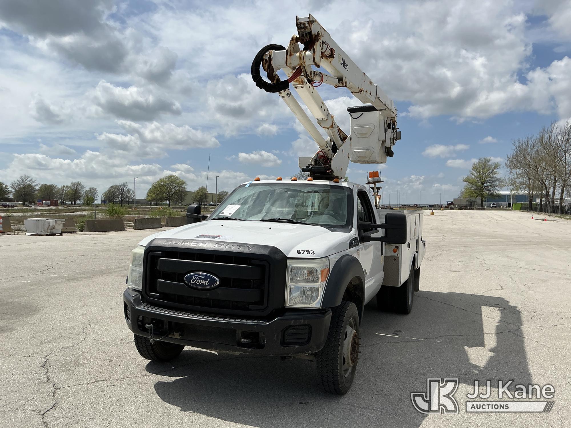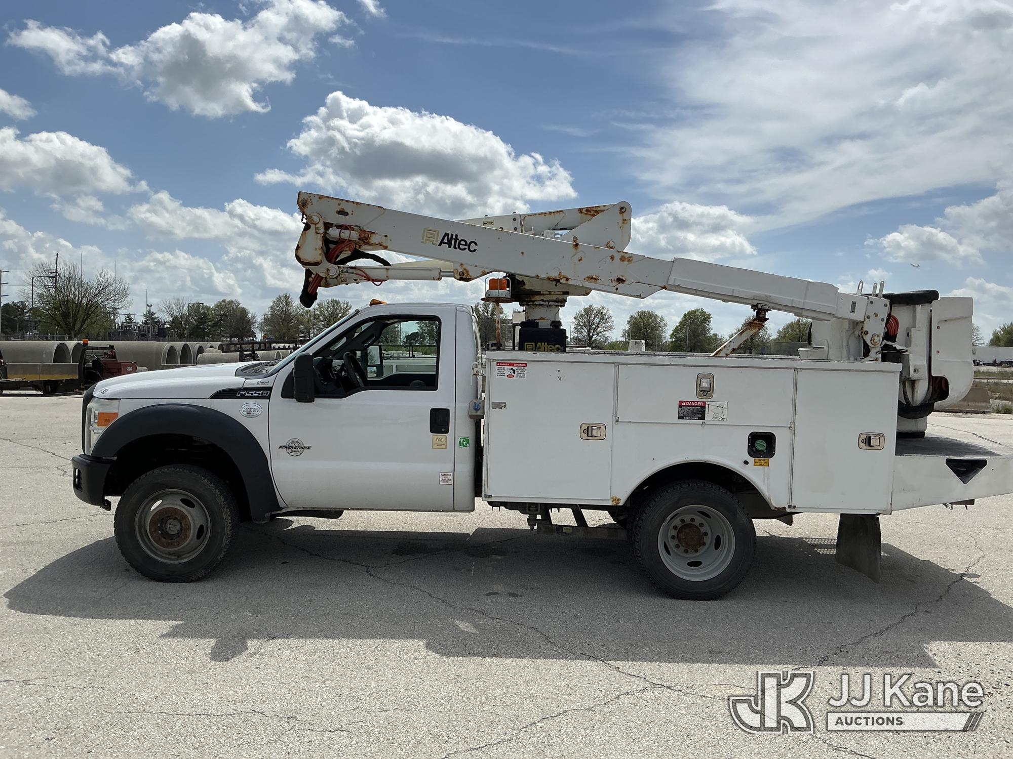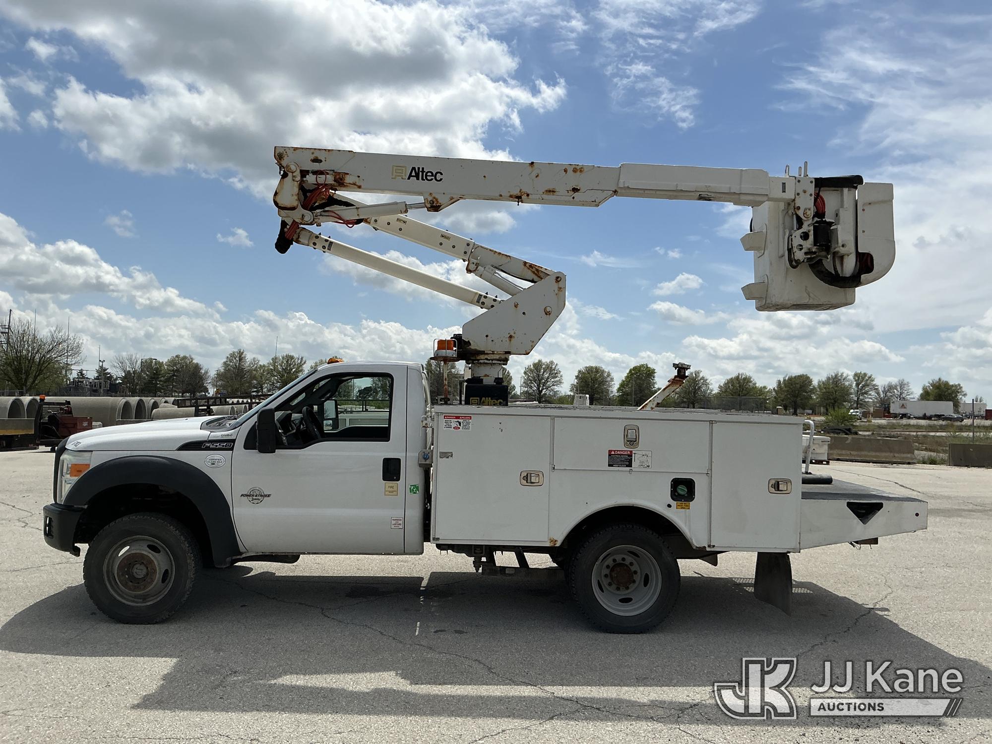 Altec AT37G, 42 ft, Articulating & Telescopic Bucket s/n 0815DE18269, with Single-Man Bucket, mounted behind cab on 2016 Ford F-550 Service Truck, 6.7L Diesel 4WD, auto, A/C, (179,120 miles) (Runs, Moves & Upper Operates) ( Dash Warning Indicator See Photo ) ) (Reads 13,566 hours) This is a Titled Item*