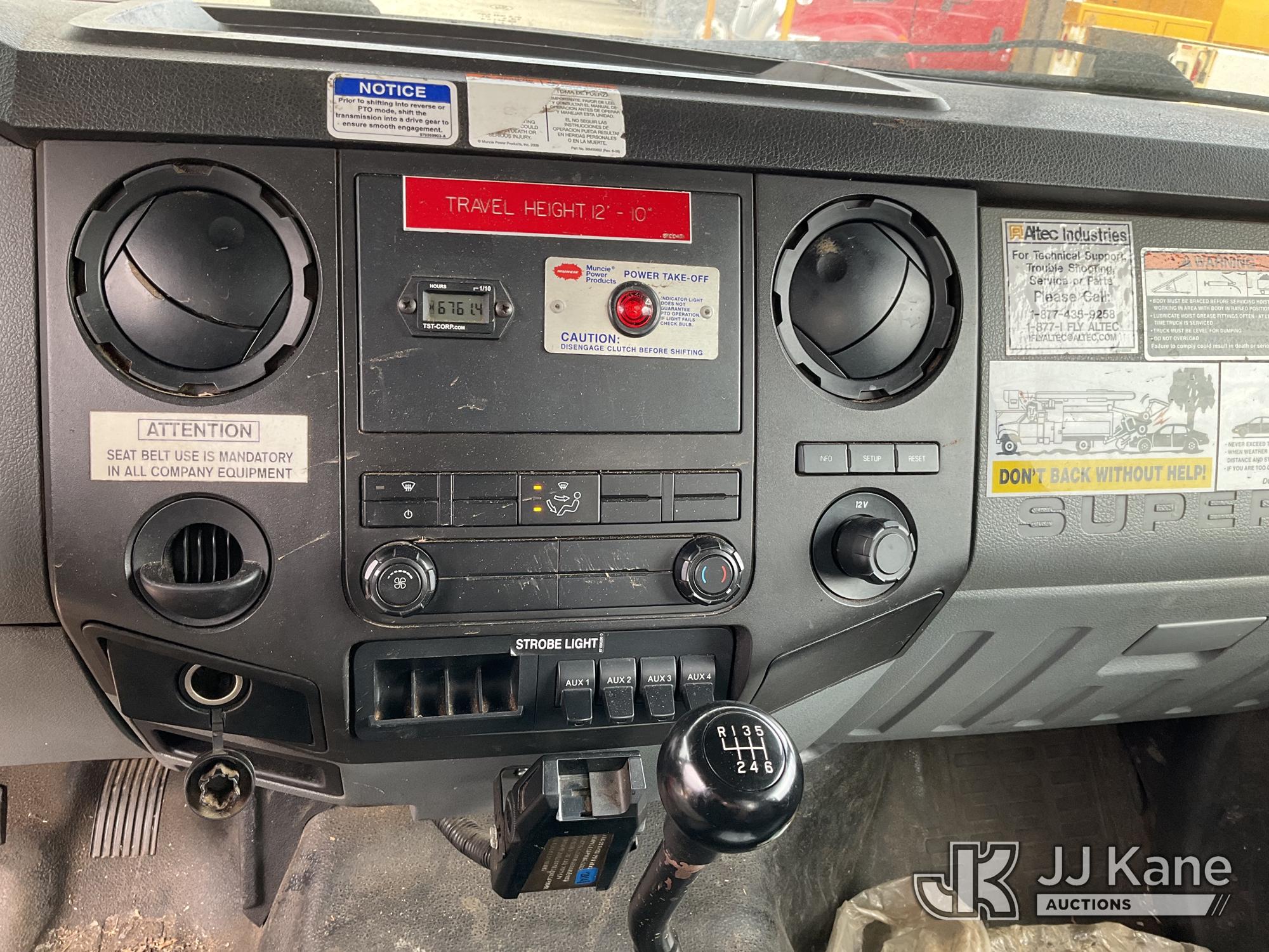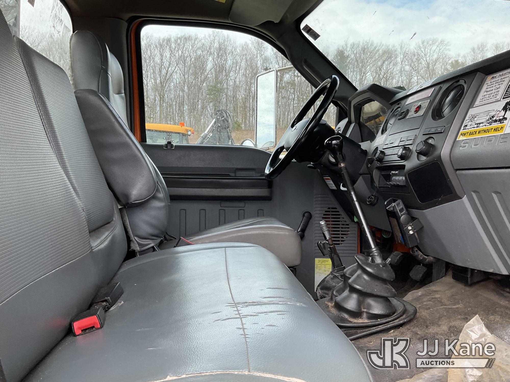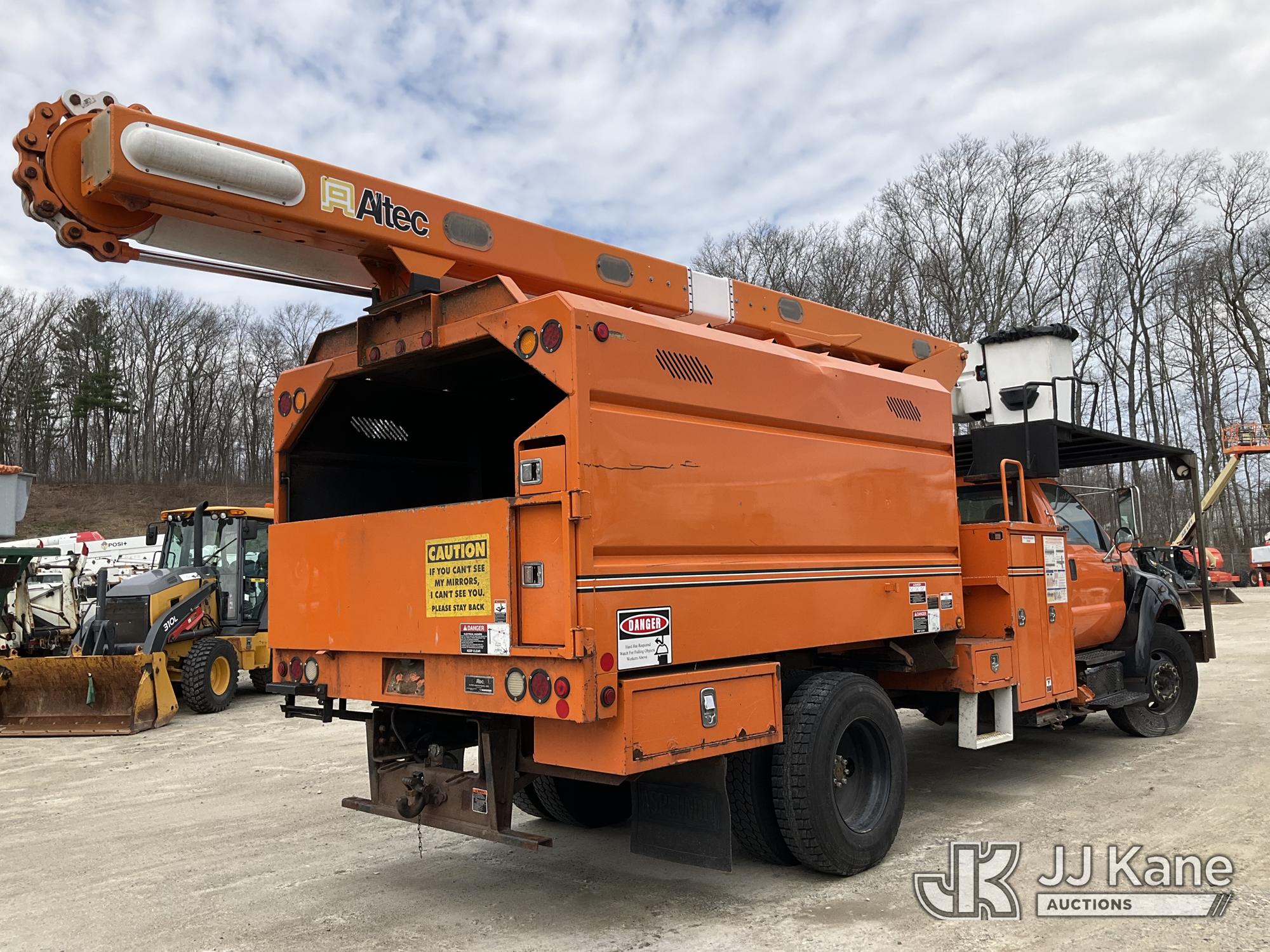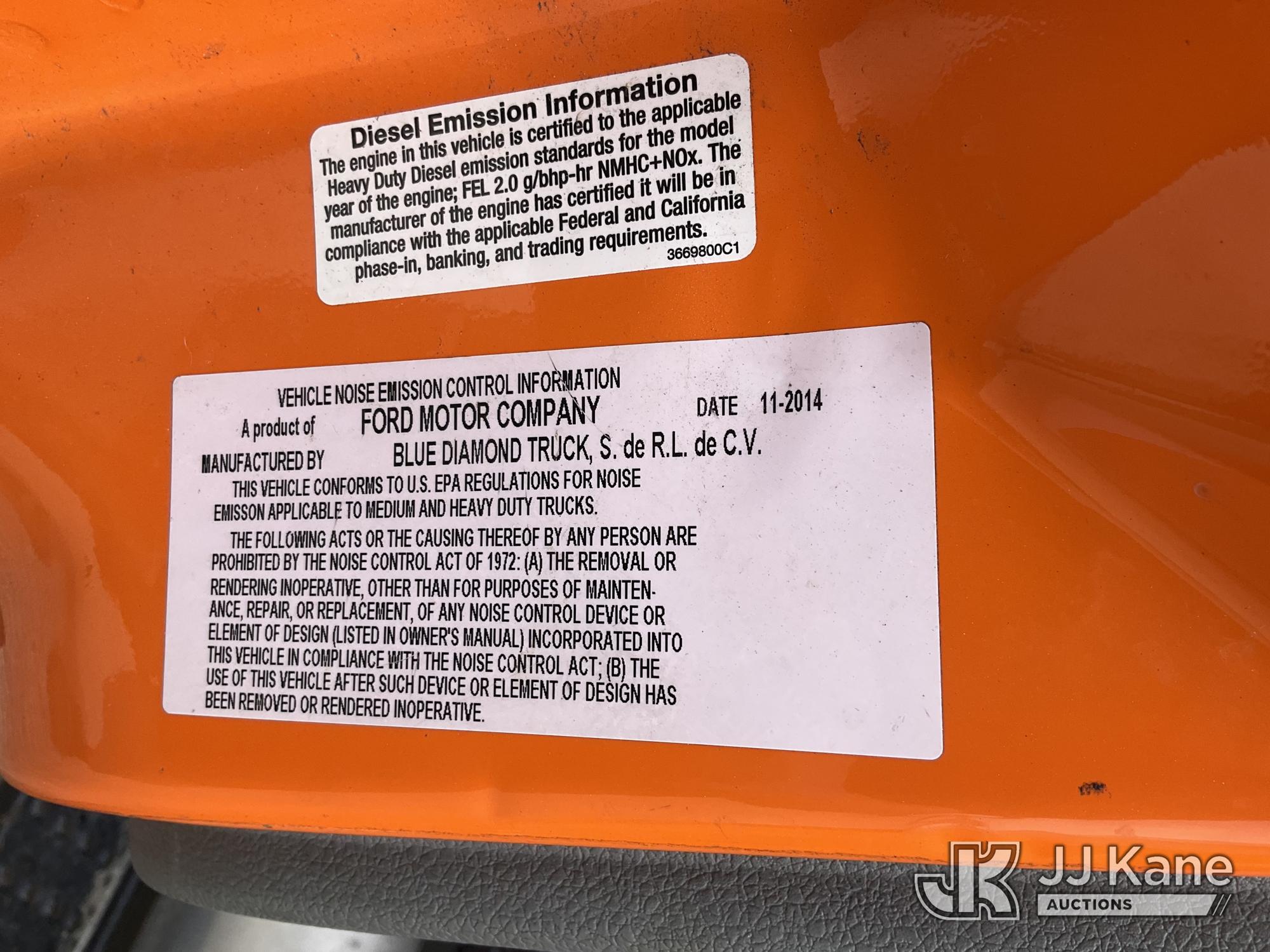 Altec LR760E70, 75 ft, Over-Center Elevator Bucket Truck s/n 0115FF3580, with single-man bucket & 2 hyd outriggers, mounted behind cab on 2015 Ford F-750 Chipper Dump Truck, Cummins 6.7L 4X2, diesel, 6-spd, A/C, (80,492 miles) (Not Running, Drivetrain & Upper Condition Unknown, Engine Failure, Hole In Block, Engine Oil Leak) This is a Titled Item*