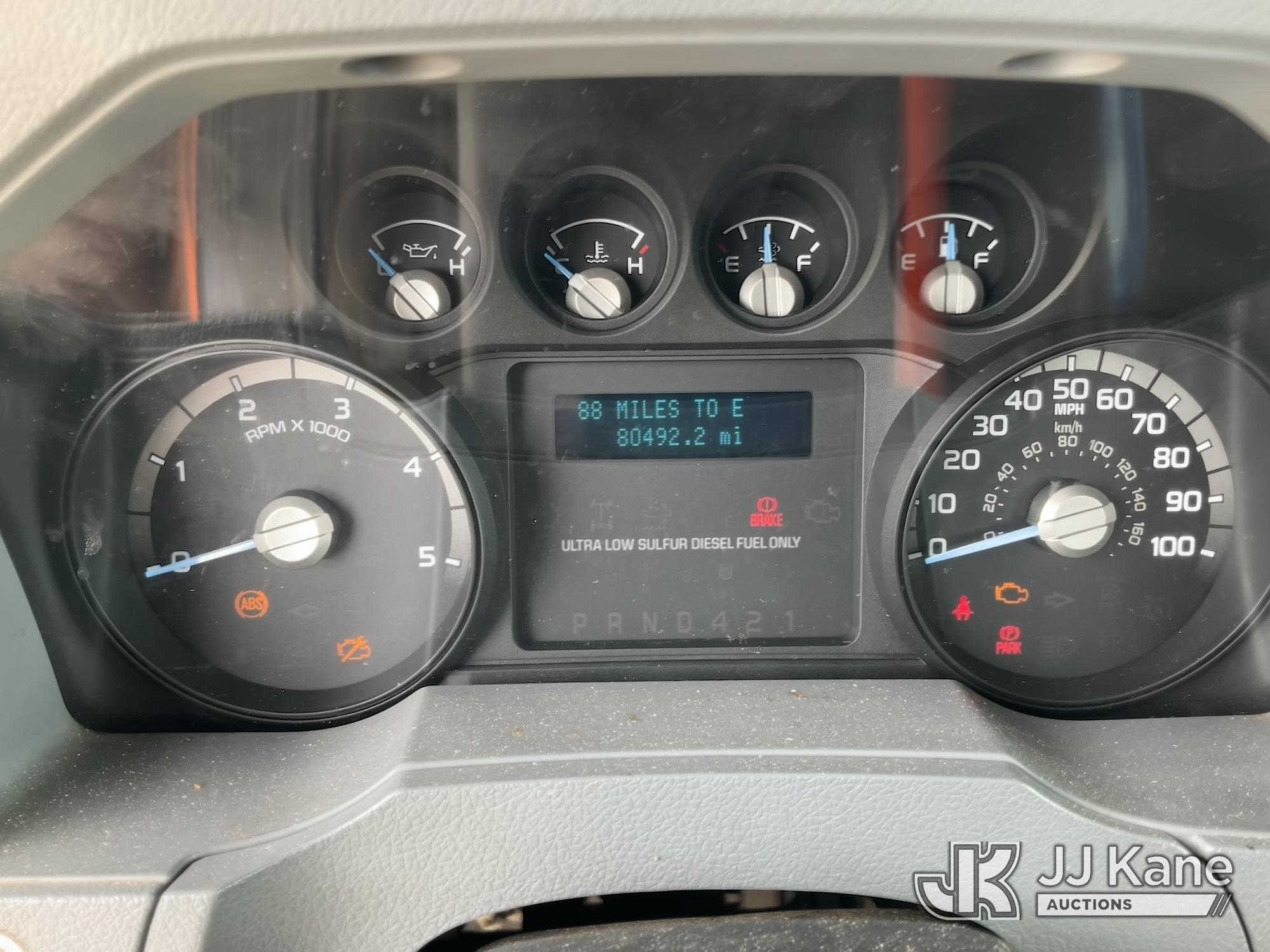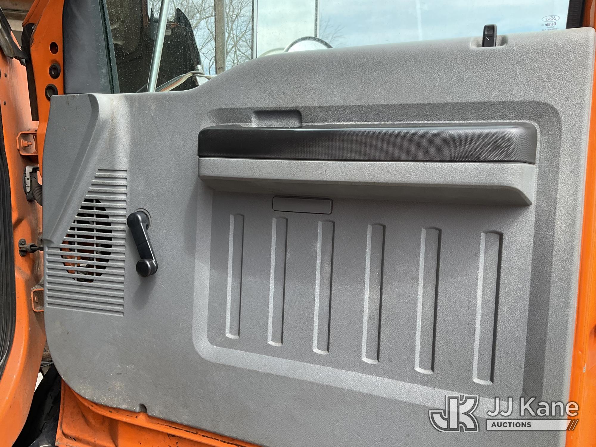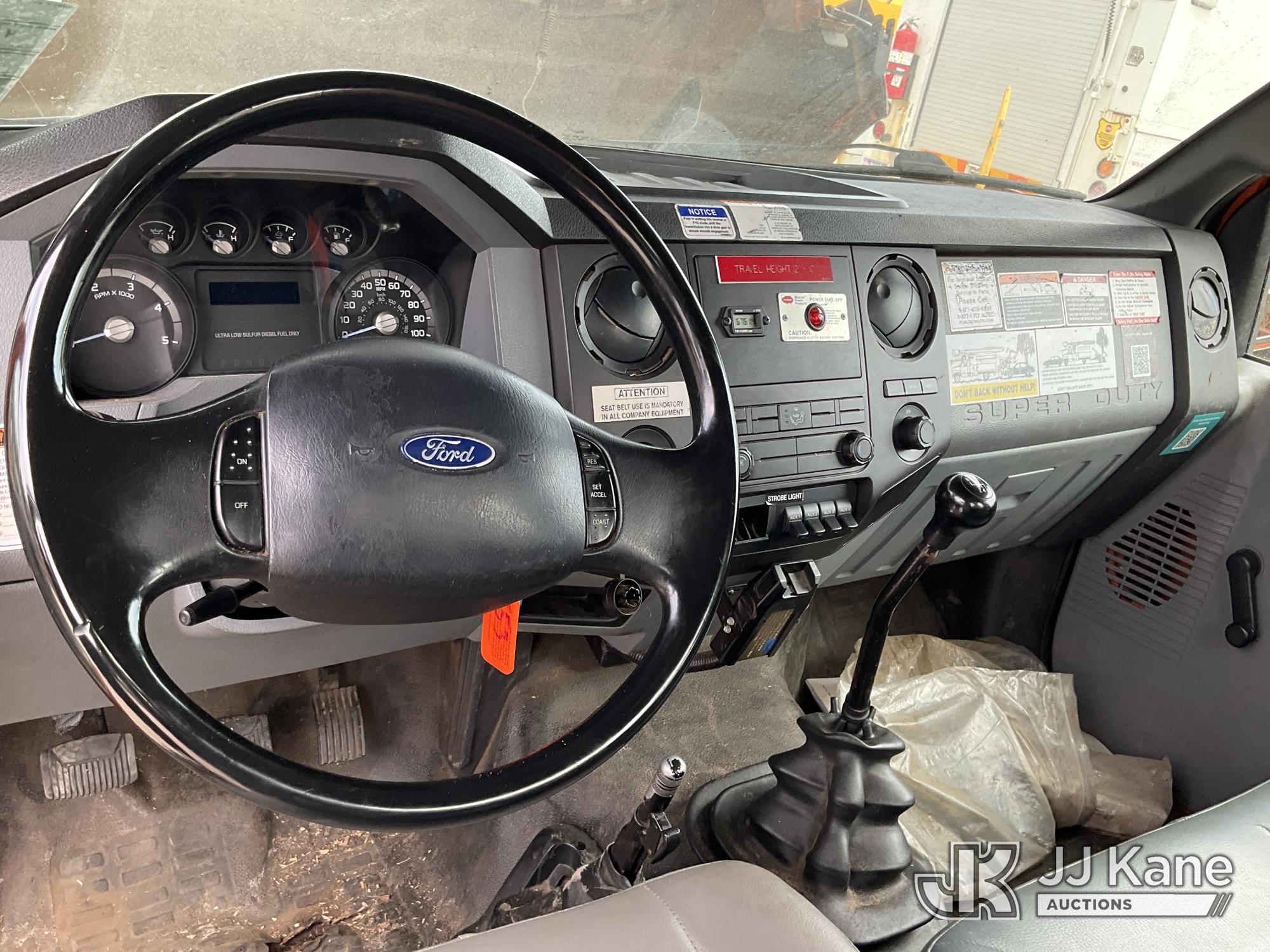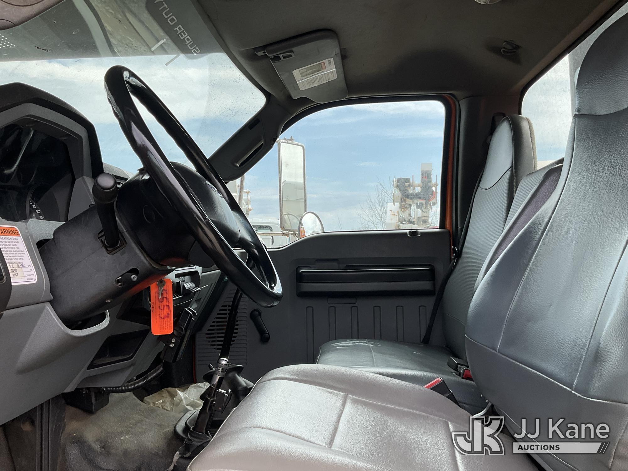Altec LR760E70, 75 ft, Over-Center Elevator Bucket Truck s/n 0115FF3580, with single-man bucket & 2 hyd outriggers, mounted behind cab on 2015 Ford F-750 Chipper Dump Truck, Cummins 6.7L 4X2, diesel, 6-spd, A/C, (80,492 miles) (Not Running, Drivetrain & Upper Condition Unknown, Engine Failure, Hole In Block, Engine Oil Leak) This is a Titled Item*