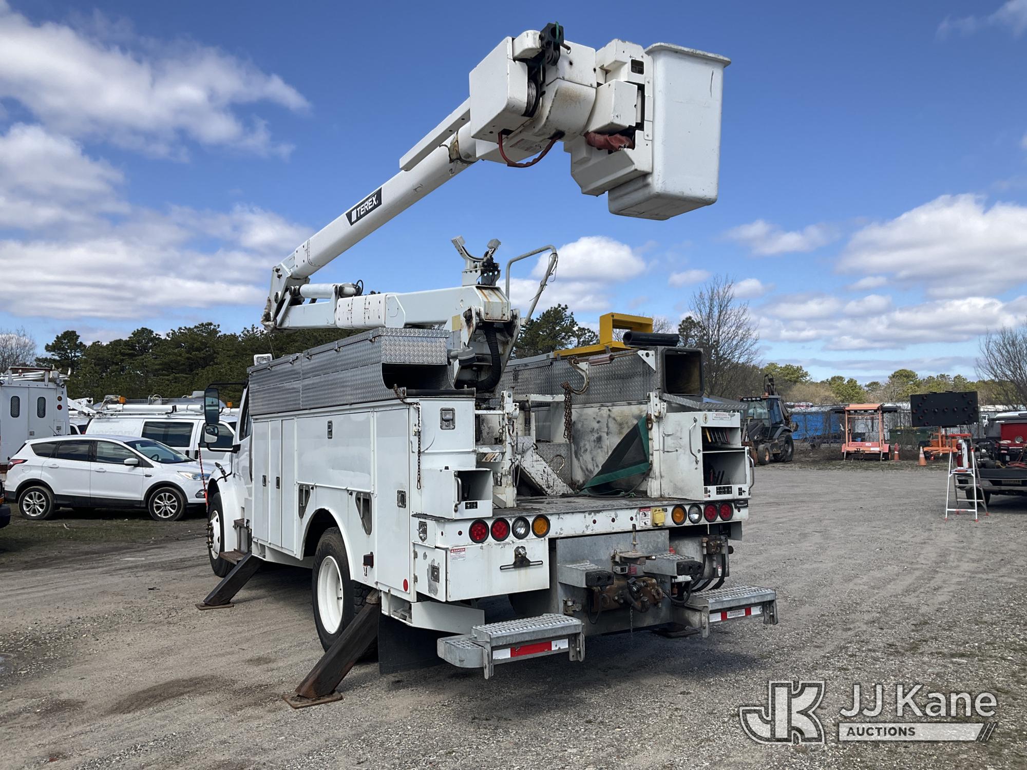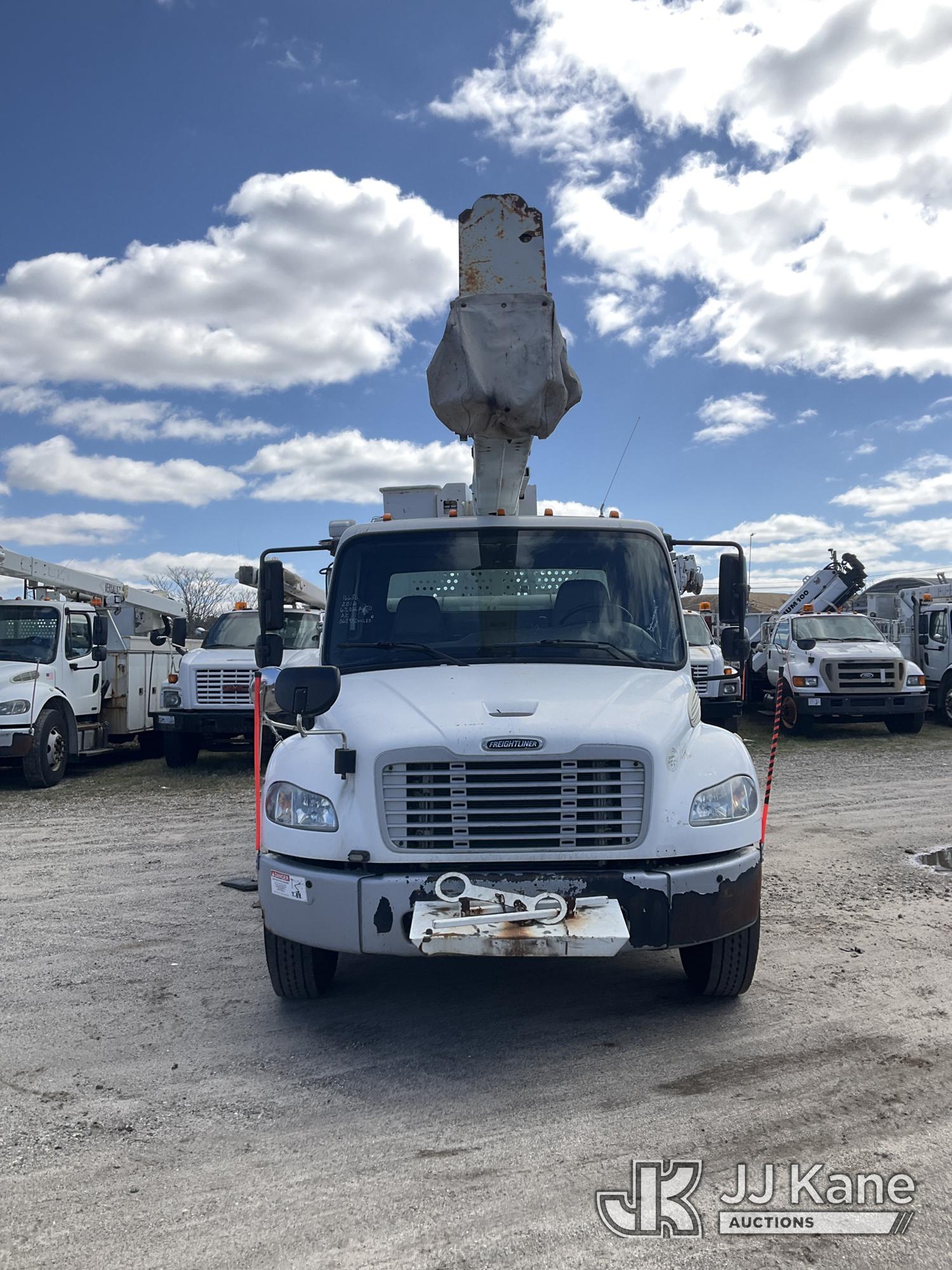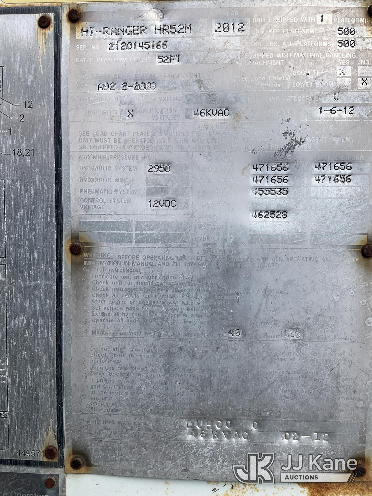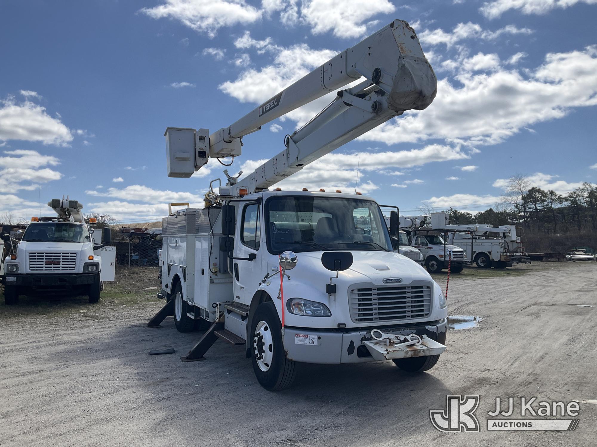 Terex/HiRanger HR52M, 57 ft, Material Handling Bucket Truck s/n 2120145166, with Single Man Bucket & 4 Outriggers , center mounted on 2012 Freightliner M2 106 Utility Truck, 6.7L diesel, Auto, A/C, (63,950 miles) (Runs & Moves & Upper Operates) (DEF Light On) (Removal is by Appointment Only, Buyer MUST make a appointment prior to picking up, Buyer/Transporter Must have PAID IN FULL RELEASE. No onsite assistance available, Please Come prepared.) This is a Titled Item*