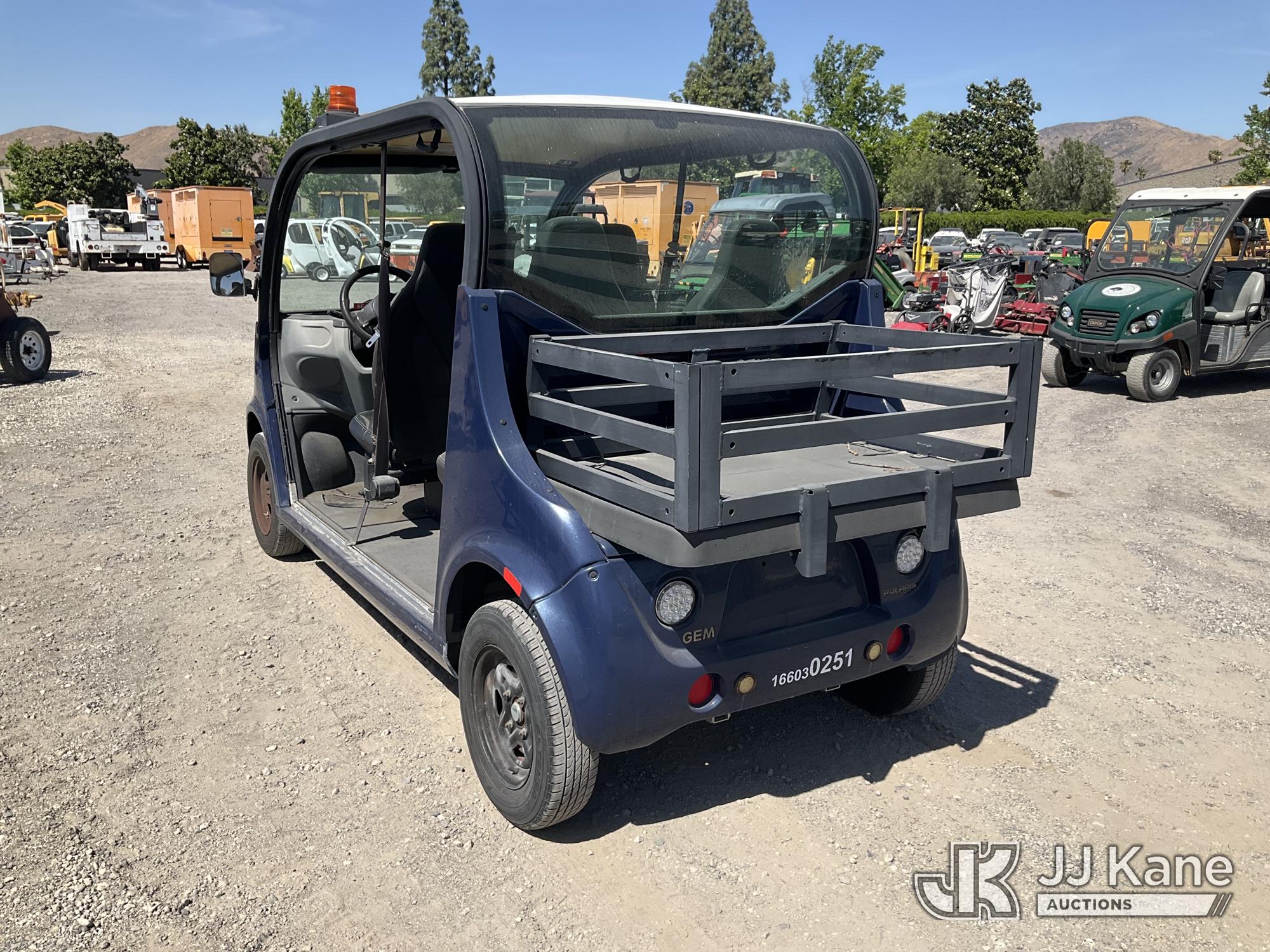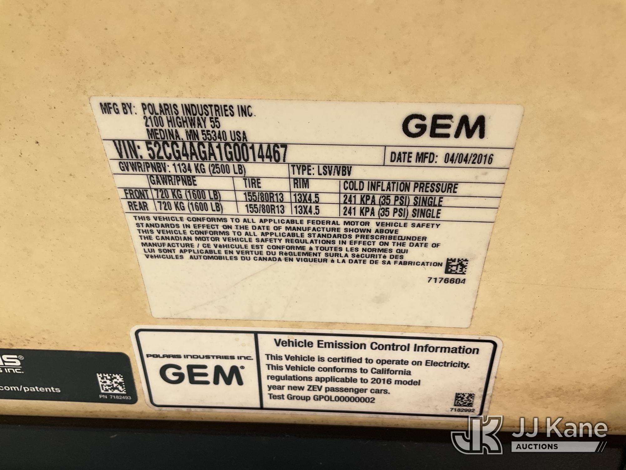 2016 GEM E4 s/n 52CG4AGA1G0014467, Battery electric, (Starts & Moves, Low Battery Has Key) (Reads 16,381 hours) This is a Titled Item*