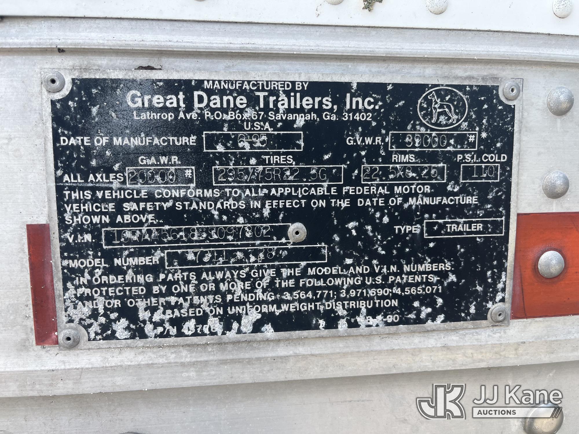 1995 Great Dane Trailers 7311 Enclosed Semi Trailer, 28ft Trailer (Condition Unknown) (Body Damage, Air Line Connection Broken, Wheel Hub Shattered, Burnt Smell From Rear Axle) (FL Residents Purchasing Titled Items – tax, title & registration fees will be collected at the maximum rate of $400.00 under 25,999 and $800.00 for Over 26,000 and $250.00 trailers – Proof of insurance is mandatory; Out of State Residents Purchasing Title Items – tax will be collected based upon your state rate.) This is a Titled Item*