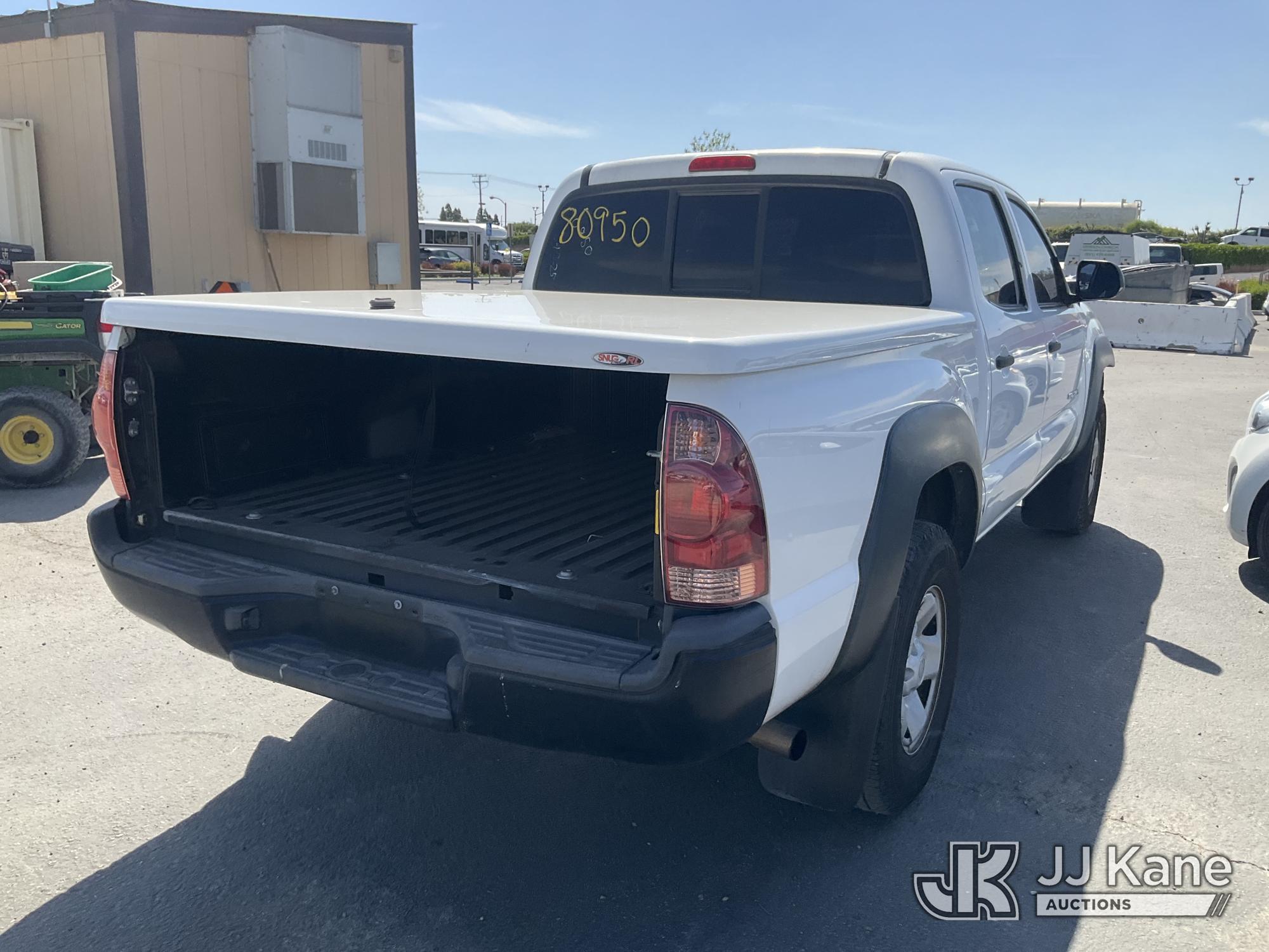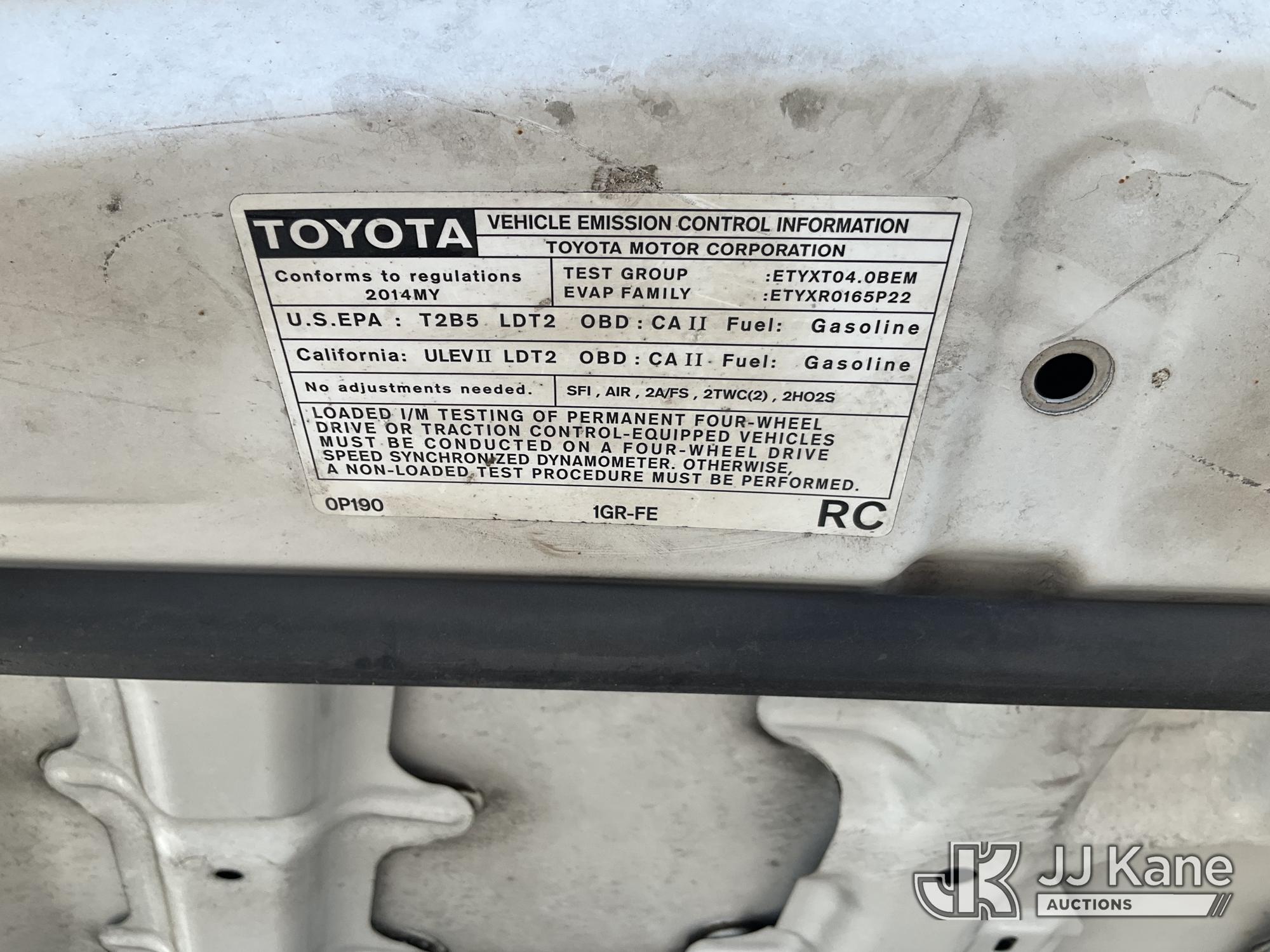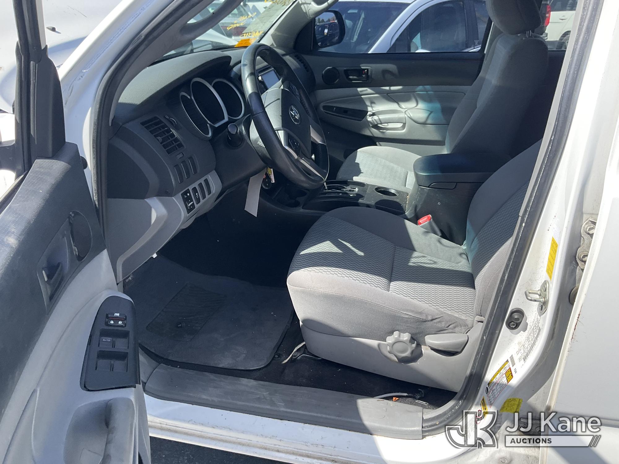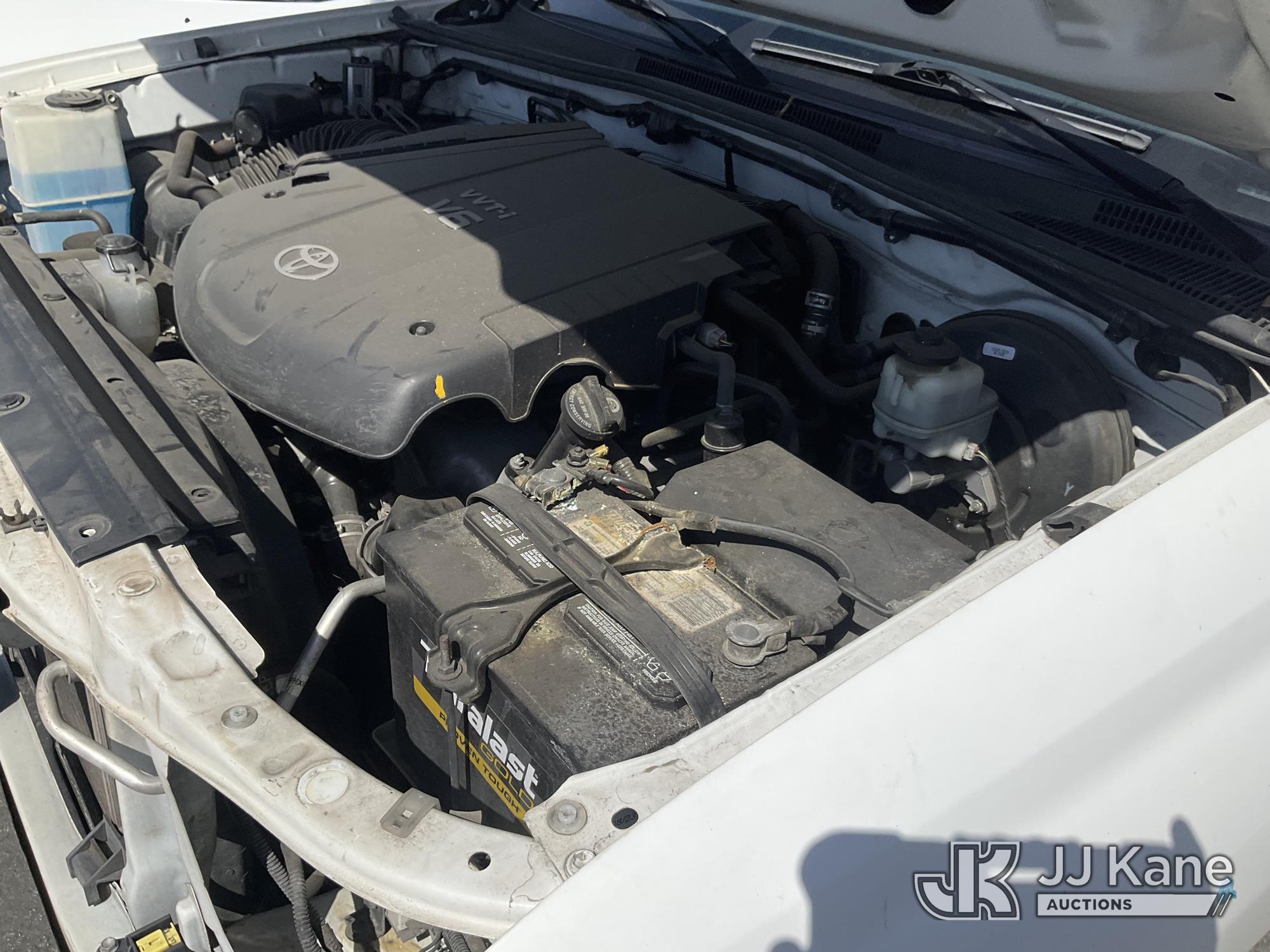 2014 Toyota Tacoma PreRunner Double Cab V6 5AT 2WD Crew-Cab Pickup Truck, s/n 3TMJU4GN8EM166580, 4.0L V6 DOHC 24V RWD, GAS, 5-Speed Automatic, A/C, with bed cover, (175,335 miles) (Runs & Moves, Traction Control Light On, Missing Front Bumper, Missing Side Panels, Missing Tailgate, Body Stripped Of Parts)(Vehicle previously used with a 'cold plate' or protected record registration. Due to the prior status, VIN may not appear in NMVTIS, which could affect DMV title/registration processing. Buyer acknowledges and accepts this) (Bidding Restricted to Licensed Vehicle Dealers Only), This is a Titled Item*