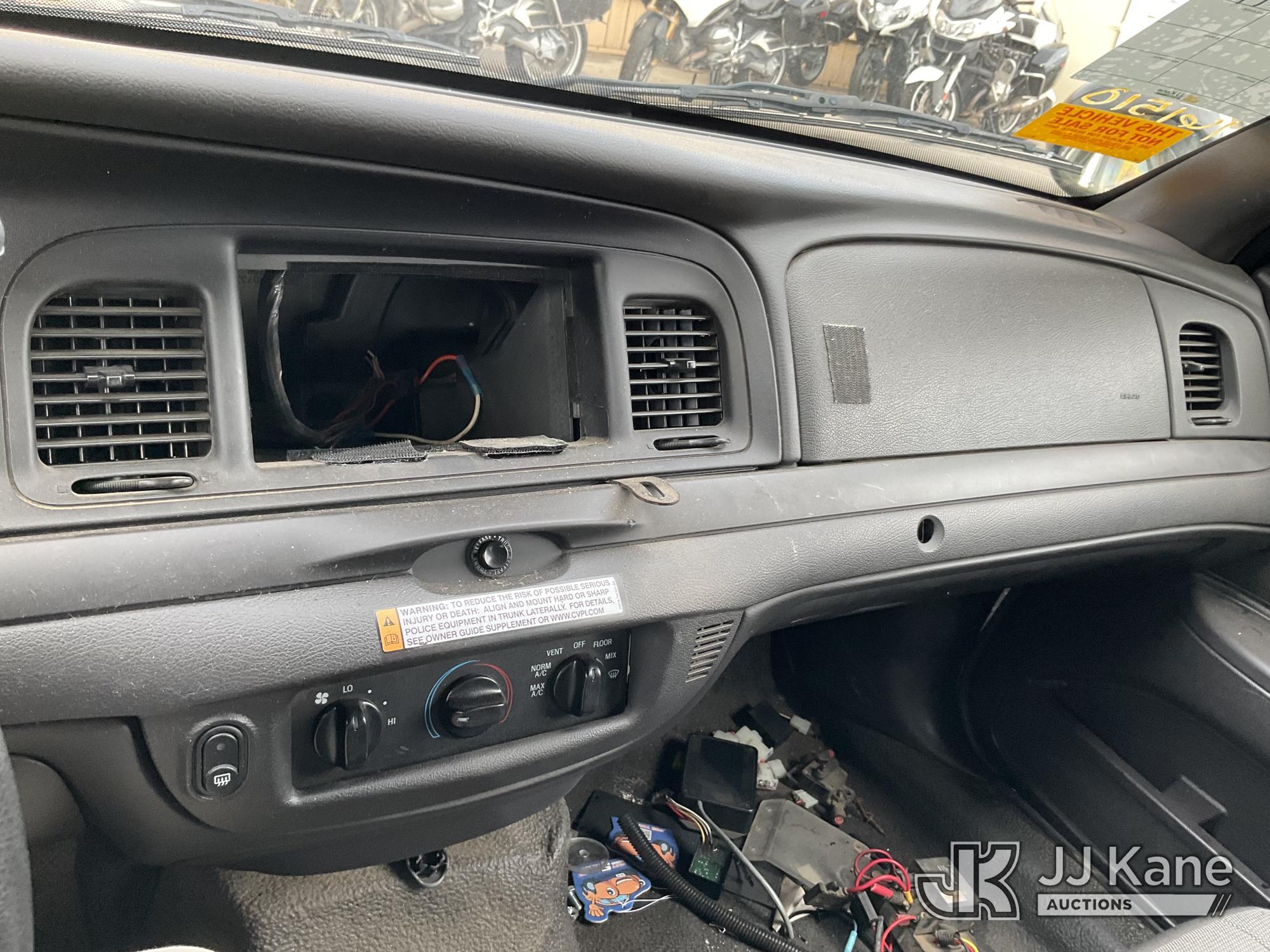 2011 Ford Crown Victoria Police Interceptor 4-Door Sedan, s/n 2FABP7BV3BX161510, 4.6L V8 SOHC 16V RWD, FFV, 4-Speed Automatic, A/C, (64,187 miles) (Runs & Moves, Missing Stereo, Interior Stripped Of Parts, Rear Doors Do Not Open) This is a Titled Item*