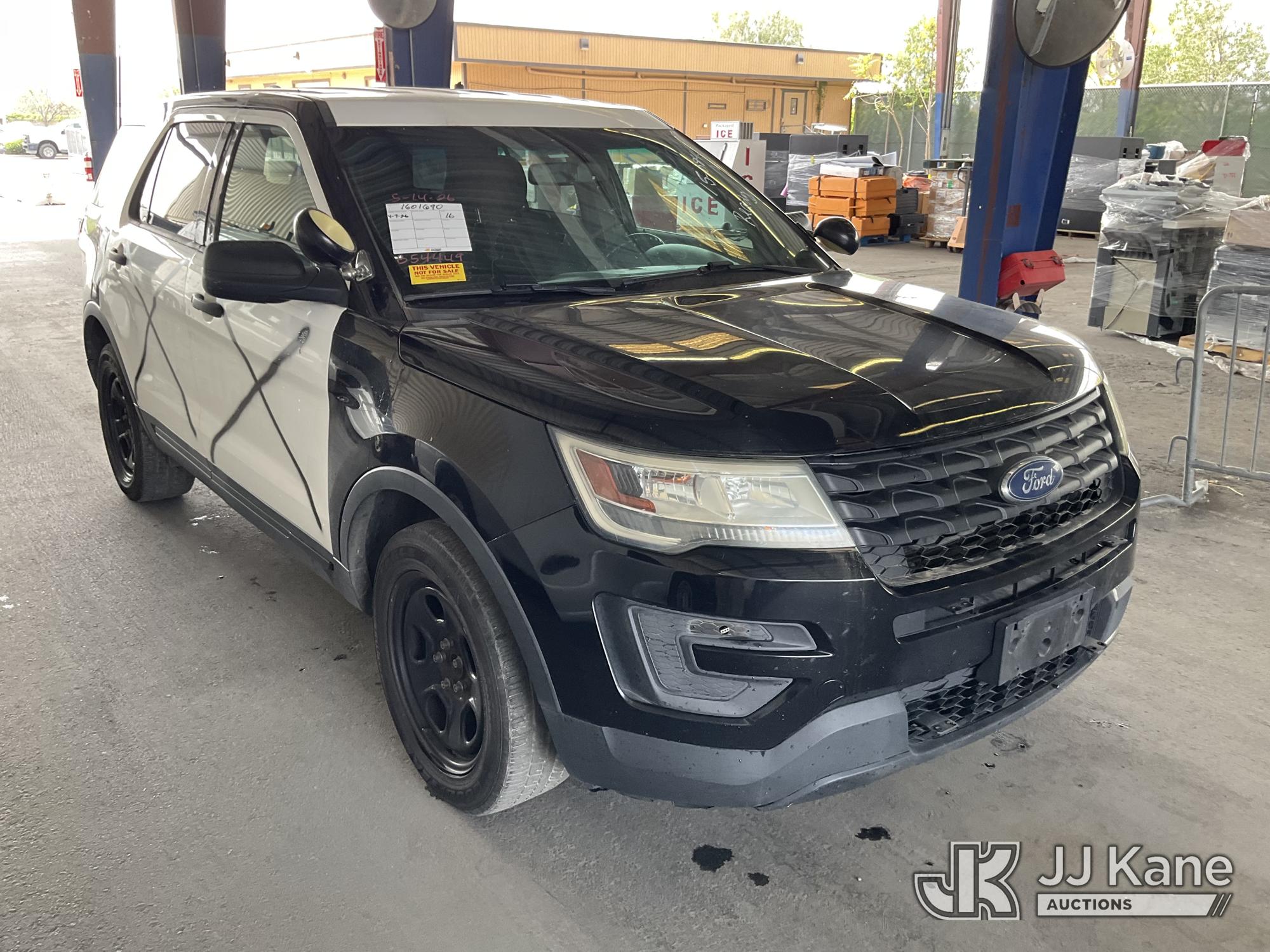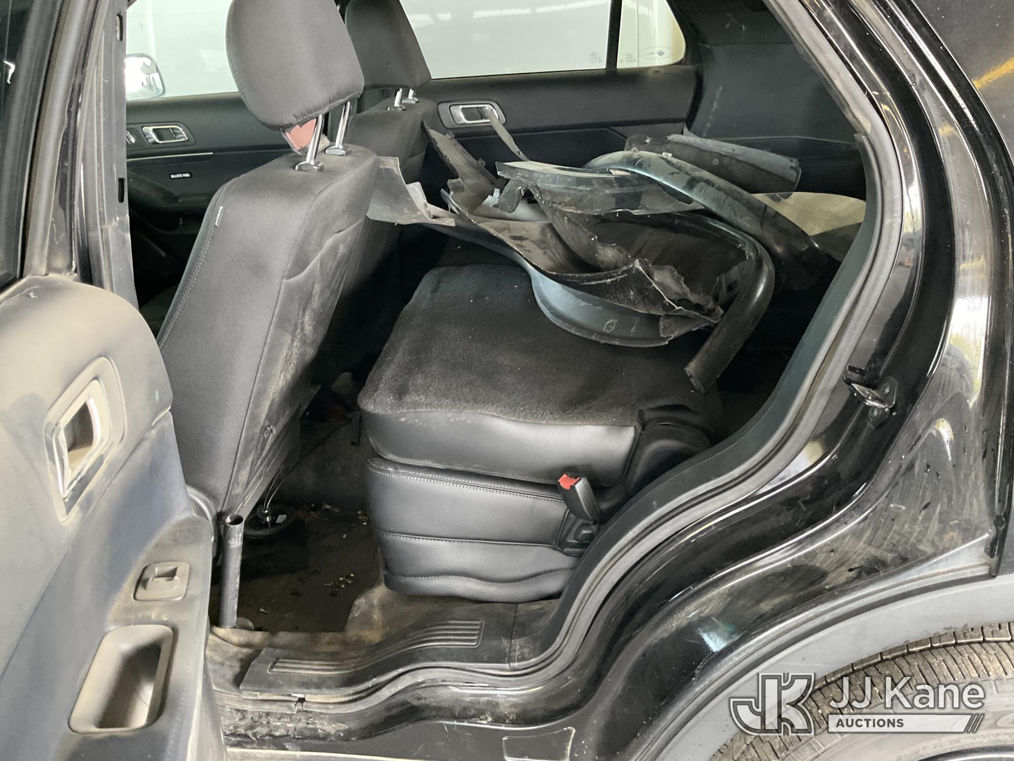 2016 Ford Explorer Police 4WD 4-Door Sport Utility Vehicle, s/n 1FM5K8AR1GGB54449, 3.7L V6 DOHC 24V GAS, 6-Speed Automatic, A/C, (114,224 miles) Vehicle is subject to an open NHTSA safety recall related to AN EXTERIOR A-PILLAR TRIM PART THAT DETACHES WHILE DRIVING CAN CREATE A ROAD HAZARD FOR OTHER ROAD USERS, INCREASING THE RISK OF A CRASH and THE DRIVER AND FRONT PASSENGER DOOR B-PILLAR TRIM APPLIQUES MAY BECOME PARTIALLY OR FULLY DETACHED. THIS MAY RESULT IN THE B-PILLAR TRIM APPLIQUES DETACHING WHILE DRIVING. A B-PILLAR TRIM APPLIQUE THAT DETACHES WHILE DRIVING CAN CREATE A ROAD HAZARD FOR OTHER VEHICLES, INCREASING THE RISK OF A CRASH, but a remedy for this recall does not appear to be available. Dealer is not authorized to perform the recall repair. Periodically contact the manufacturer or check the VIN on the NHTSA website at www.safercar.gov to determine whether a remedy for the recall is available. As soon as a remedy is available, arrange to have the recall remedied with a dealer from that make of car to make such repair. (Runs & Moves, Interior Stripped Of Parts, Open Recall, Remedy Not Yet Available, Vehicle previously used with a 'cold plate' or protected record registration. Due to the prior status, VIN may not appear in NMVTIS, which could affect DMV title/registration processing. Buyer acknowledges and accepts this) (Bidding Restricted to Licensed Vehicle Dealers Only), This is a Titled Item*