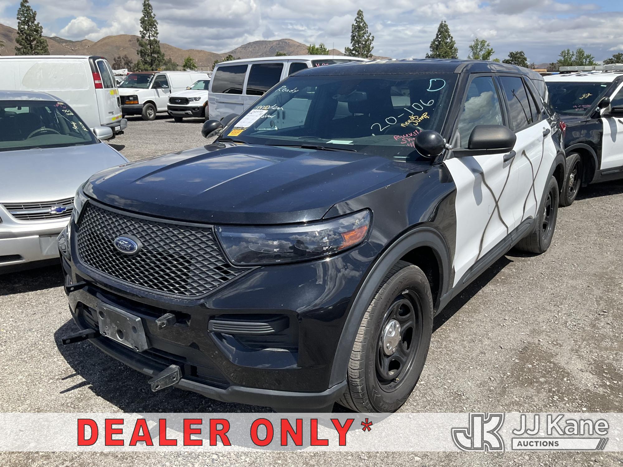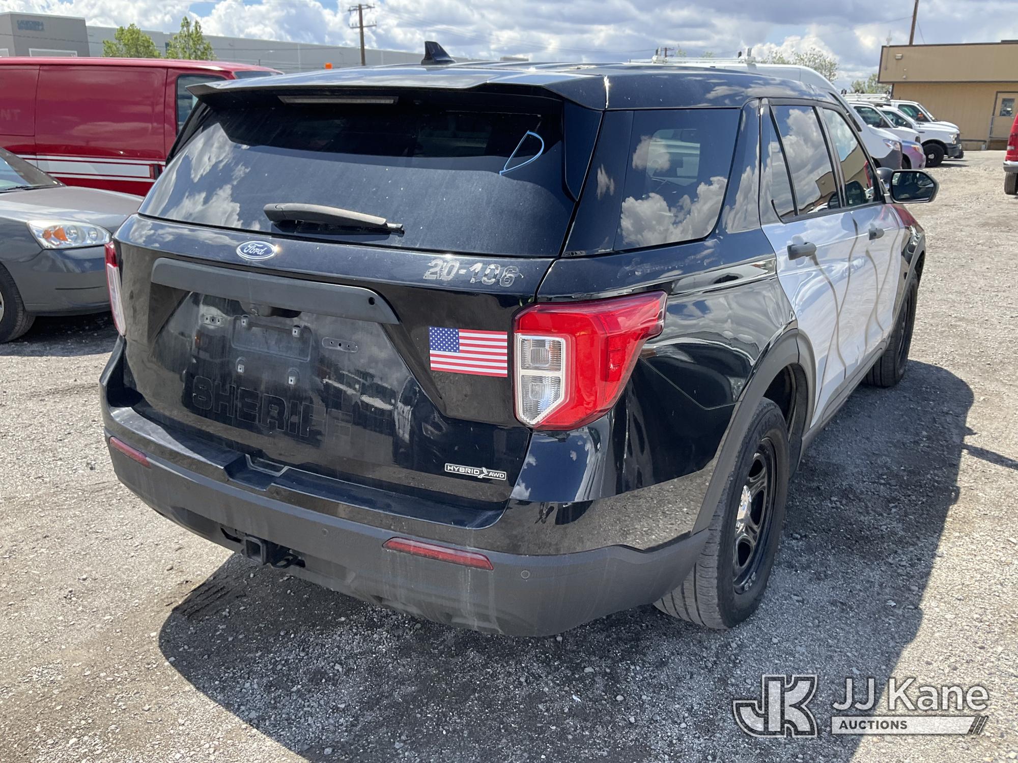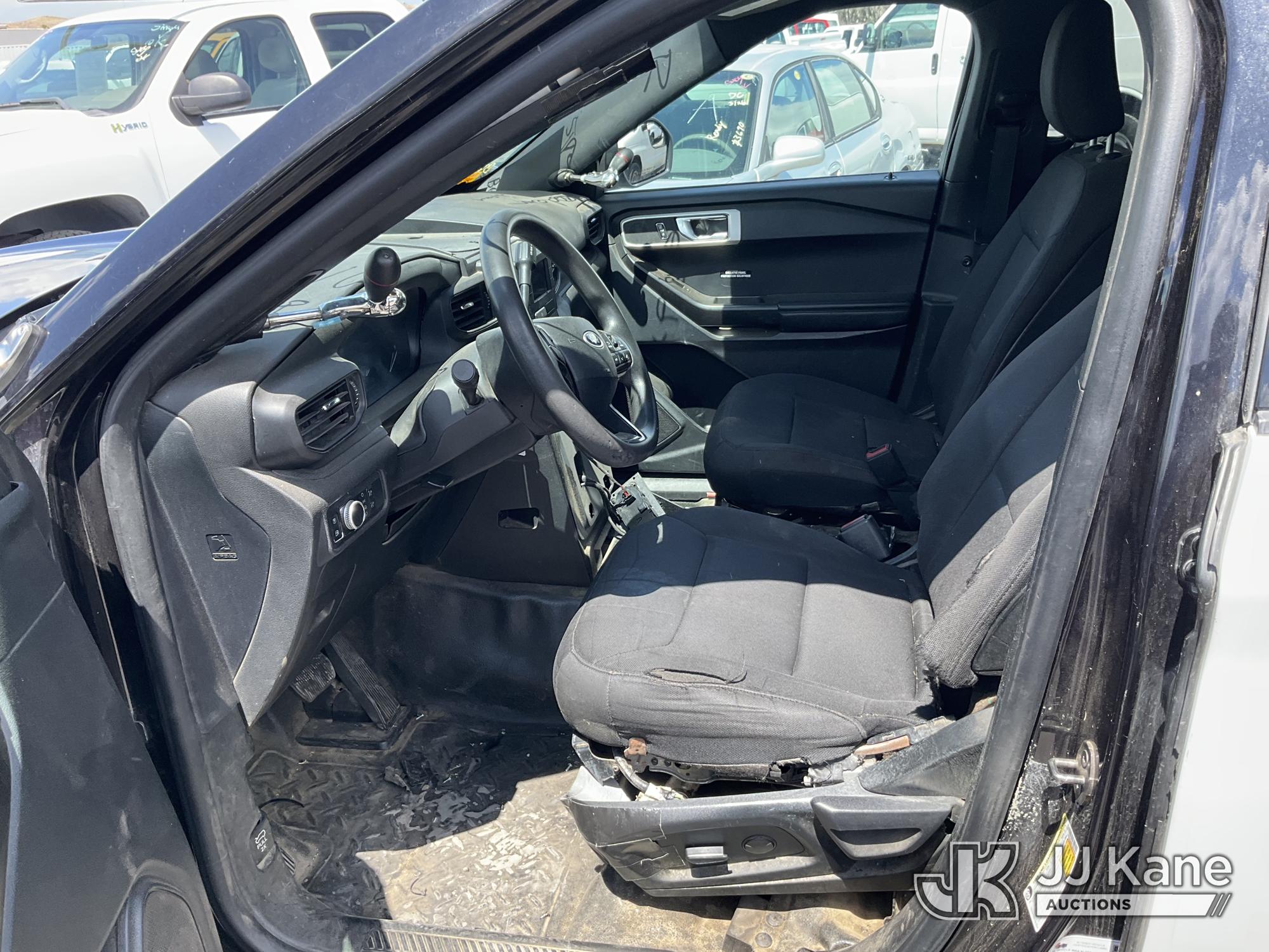 2020 Ford Explorer Police 4WD 4-Door Sport Utility Vehicle, s/n 1FM5K8AW5LGB66684, 3.3L V6 DOHC 24V AWD, HYBRID, 10-Speed Automatic, A/C, (108,519 miles) (Runs & Moves, Tires Grinding In Drive, Engine Light On, Per Seller Transmission Issue, Interior Stripped Of Parts, Open Recall, Must Be Towed) (Bidding Restricted to Licensed Vehicle Dealers Only), This is a Titled Item*