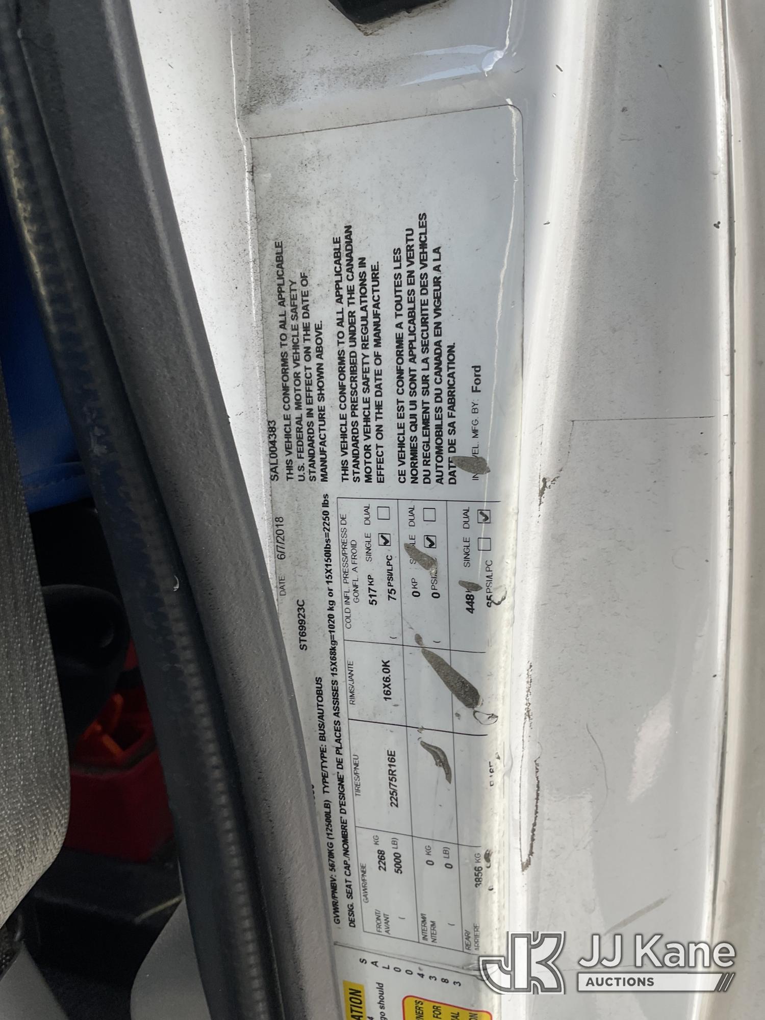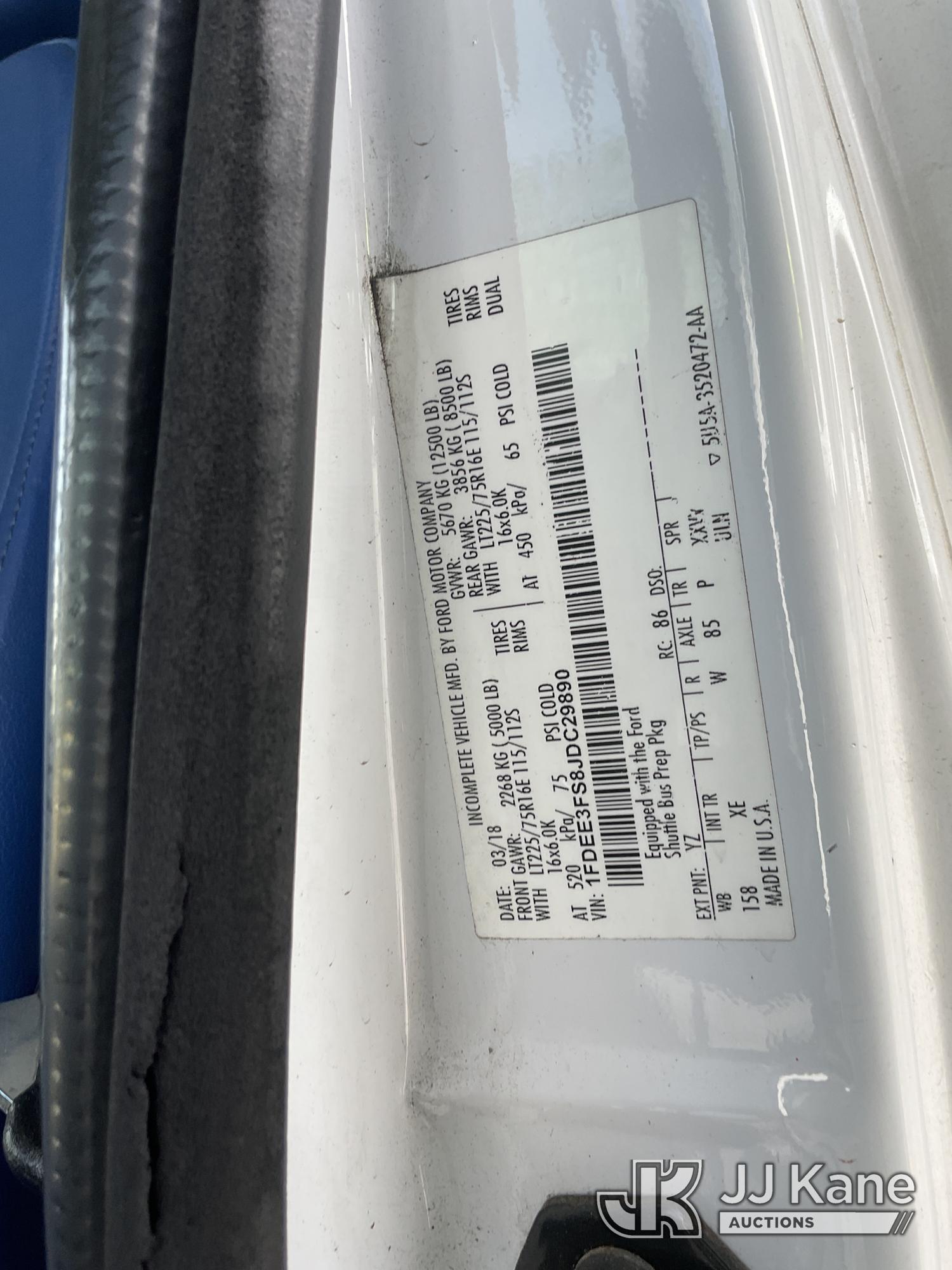 2018 Ford Econoline E350 Passenger Bus, s/n 1FDEE3FS8JDC29890, 6.8L V10 SOHC 20V RWD, GAS, Auto, A/C, with 12 Passenger Seating, Wheelchair Lift, (201,790 miles) (Runs & Moves, Check Engine Light On) (Bidding Restricted to Licensed Vehicle Dealers Only), This is a Titled Item*