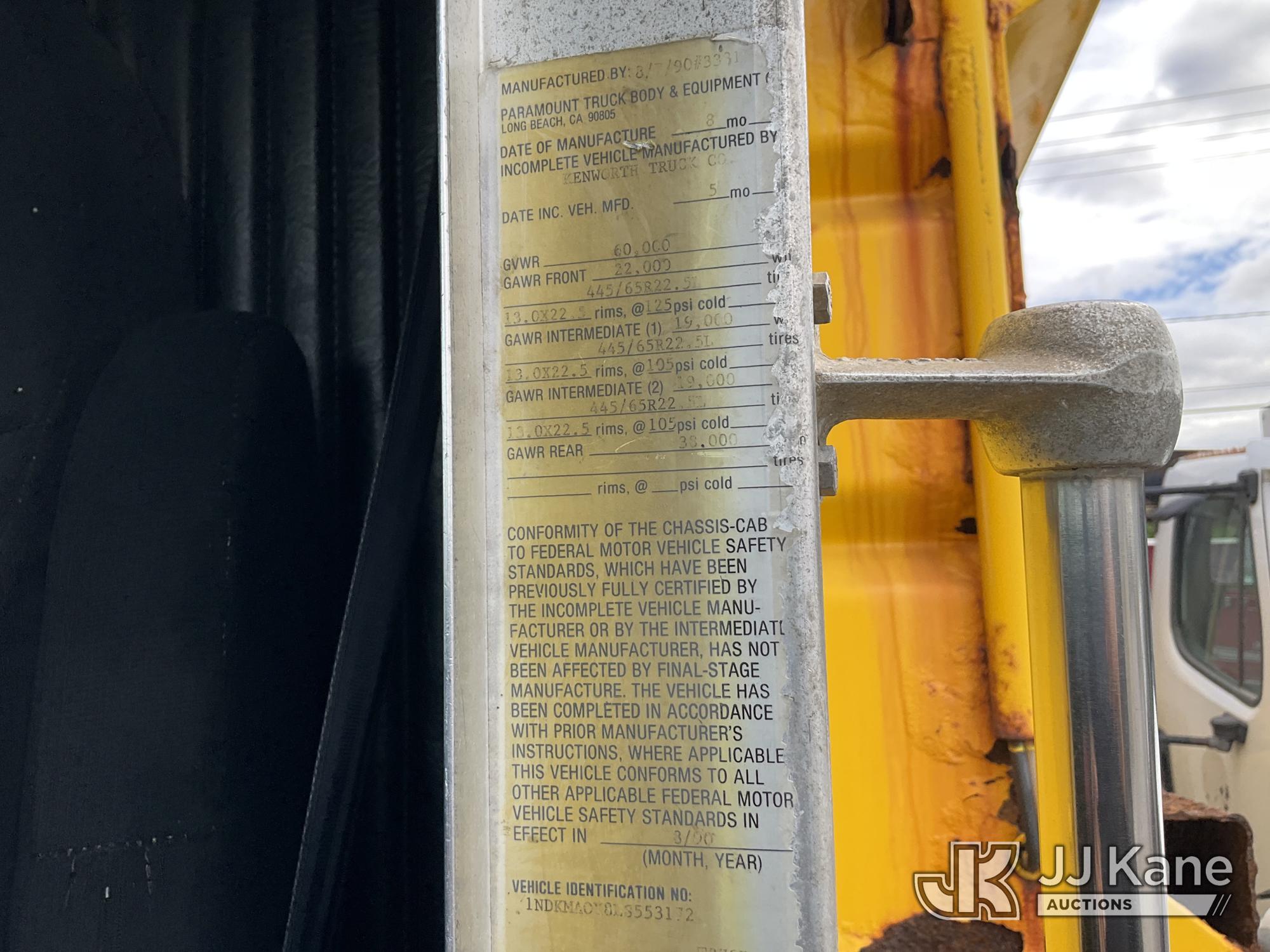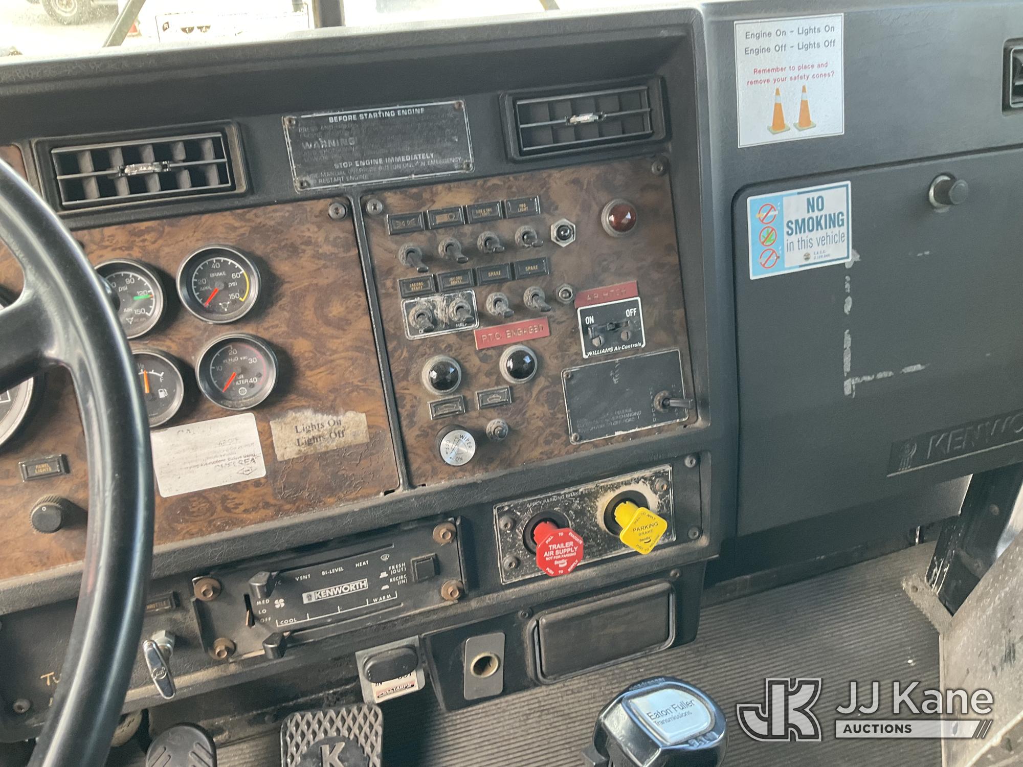 1990 Kenworth T/A Dump Truck, Cat diesel, 8-spd + Lo & Lo-Lo, with Tow Package , (Exempt from Odometer Disclosure - Reads 59,438 miles) (Runs, Moves & Dump Operates) NON-COMPLIANT OFF-ROAD DIESEL, BIDDING RESTRICTED TO NON-CALIFORNIA BUYERS ONLY This is a Titled Item*
