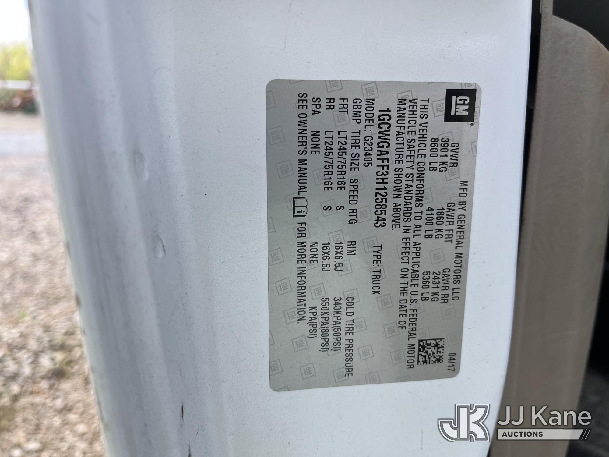 2017 Chevrolet Express G2500 Cargo Van, 4.8L V8 FFV, RWD, Automatic, A/C, (62,130 miles) (Not Running, Cranks, Condition Unknown, Seller States: Corrosion Issues) This is a Titled Item*