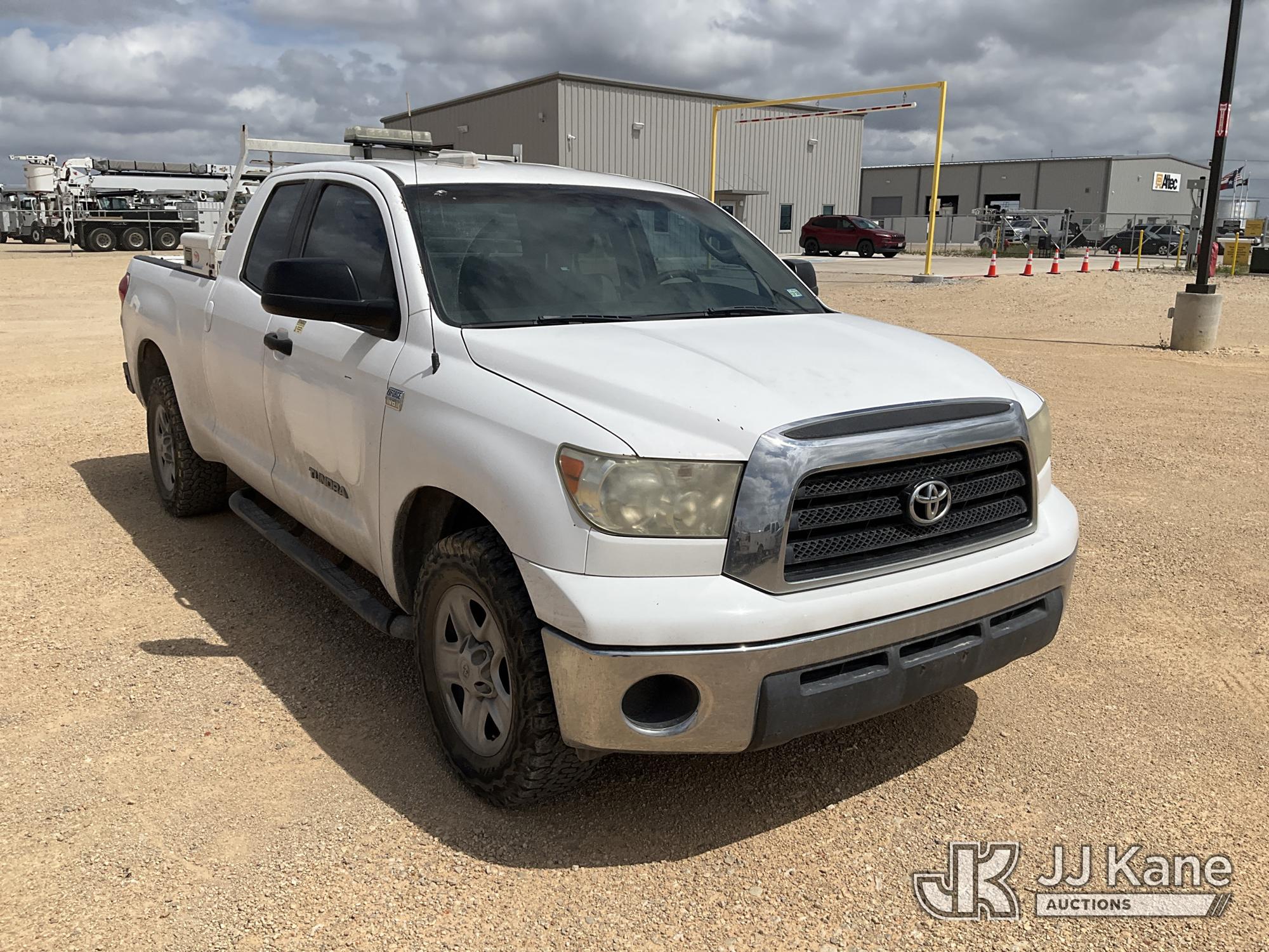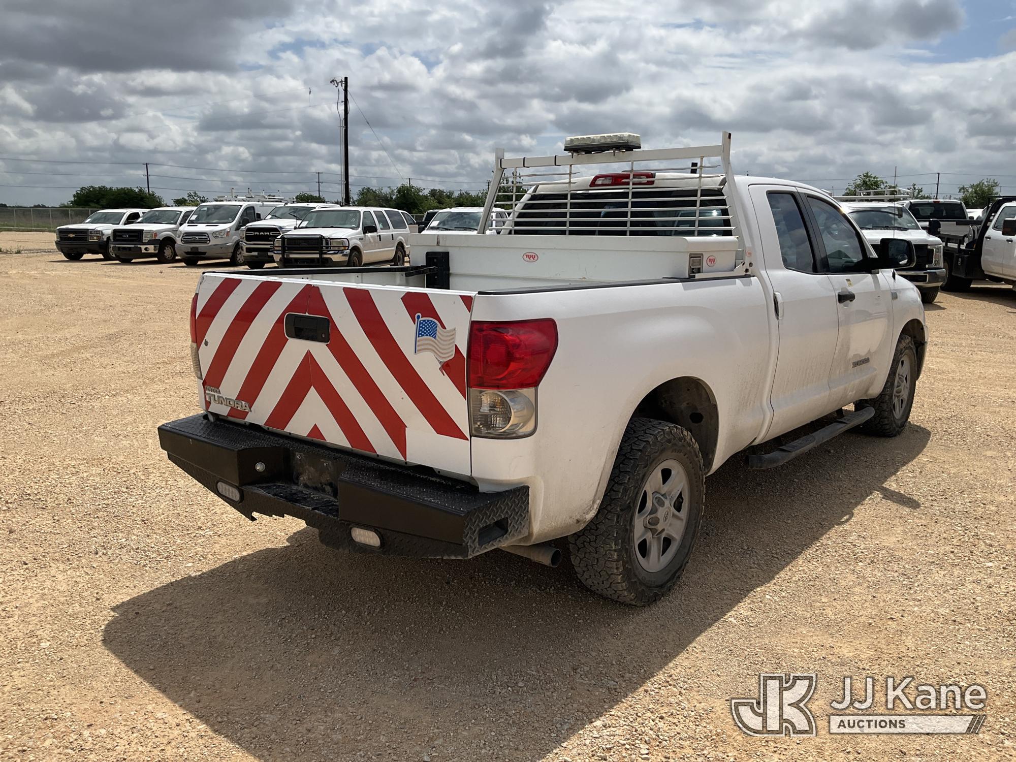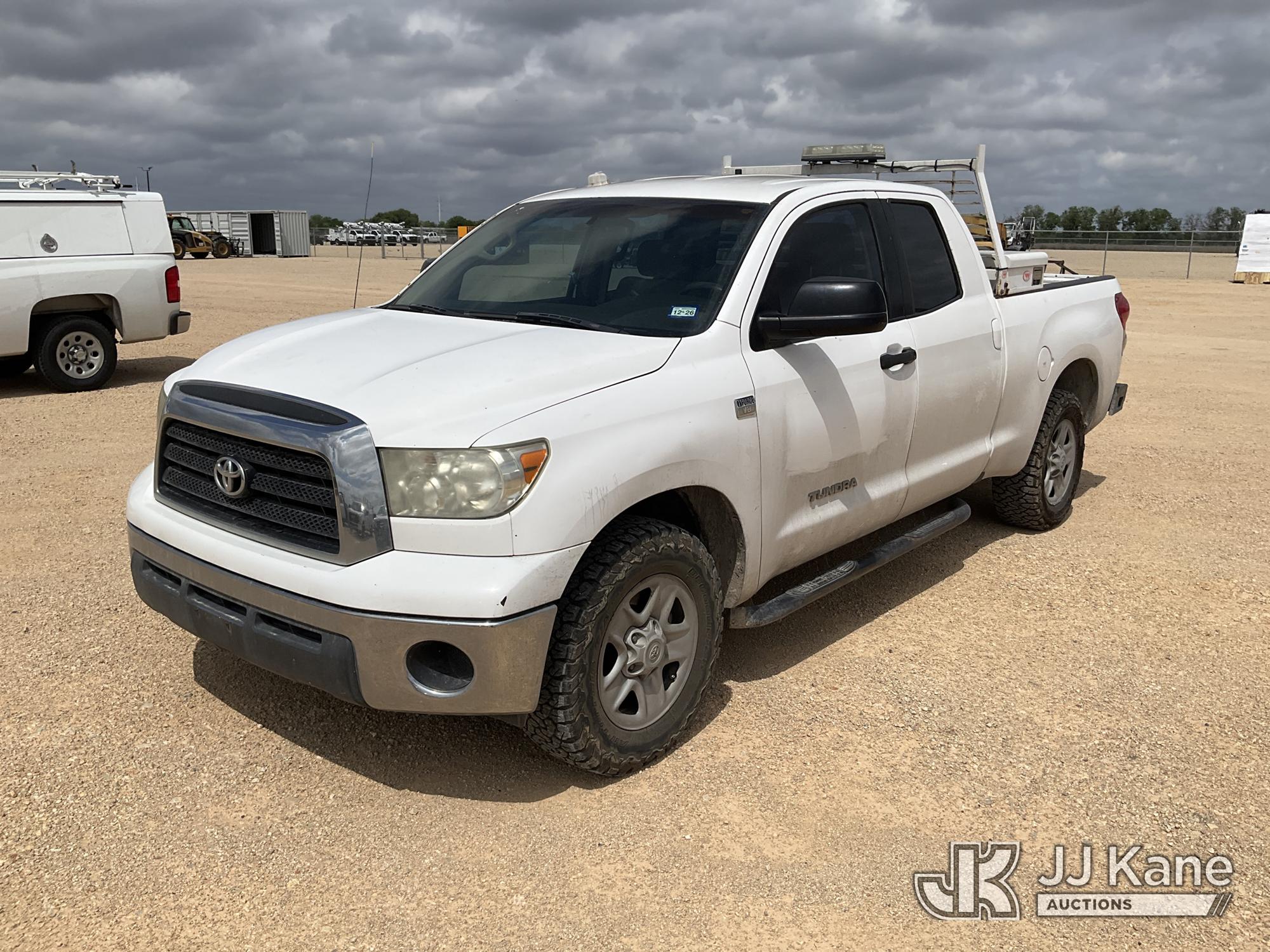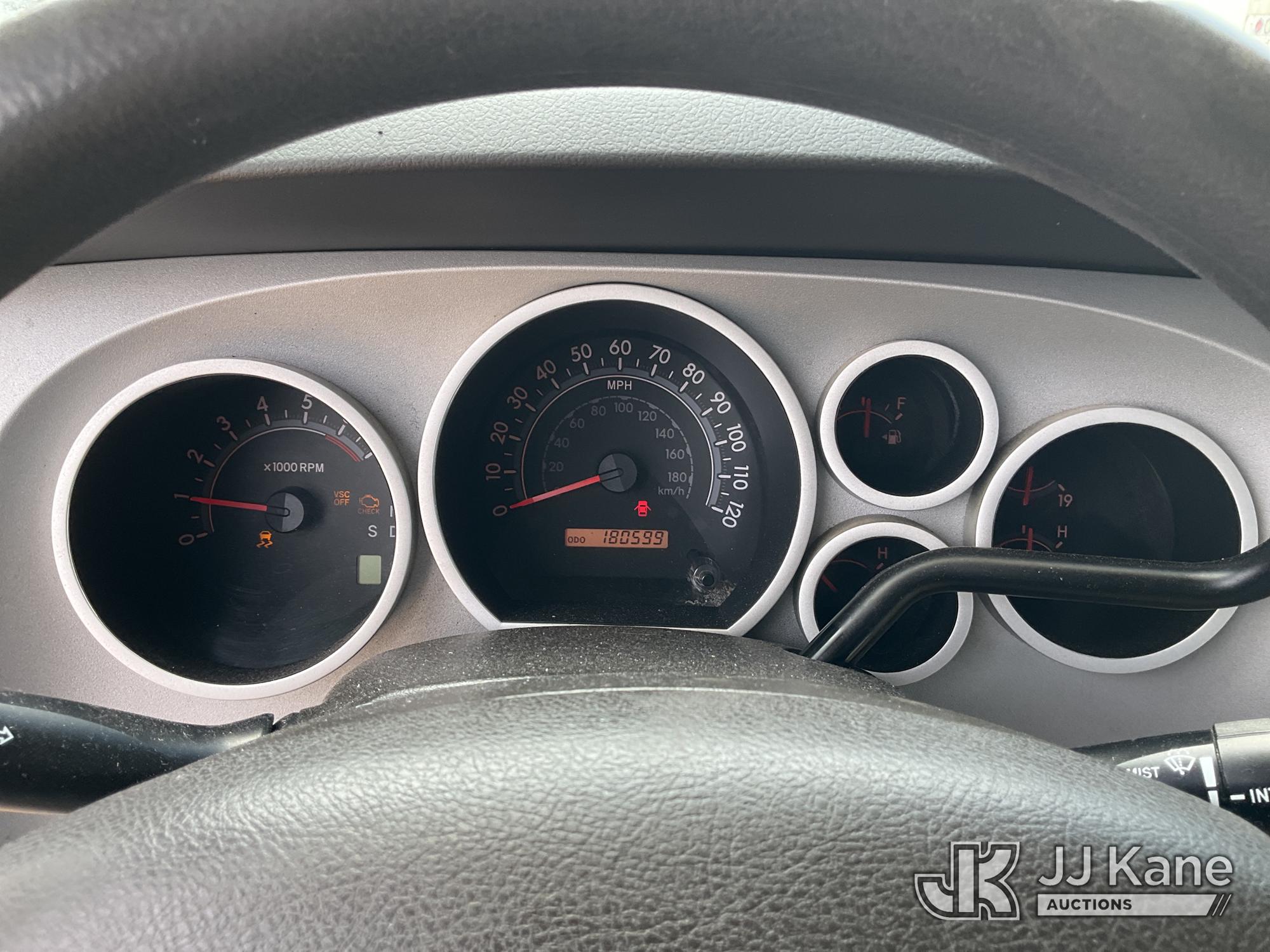 2008 Toyota Tundra Crew-Cab Pickup Truck, 8-cyl gas, 5-Speed Automatic, A/C, with Truck Bed Box, Truck Bed Rack, (180,599 miles) (Runs & Moves) (Traction Control Light On, Check Engine Light On, VSC Off Light On, tire Pressure Light On, Maintenance Required Light On, Crack In Windshield) This is a Titled Item*