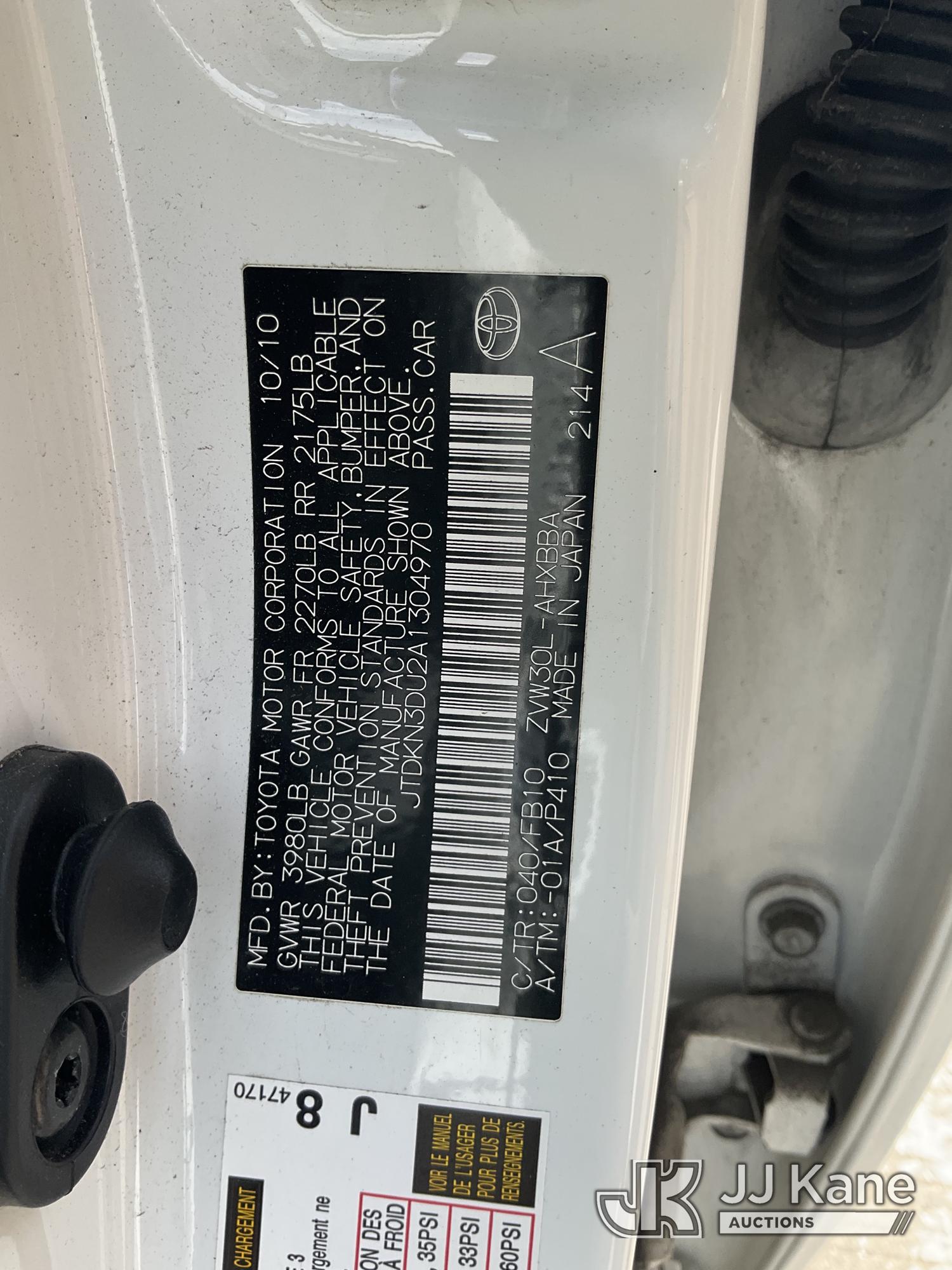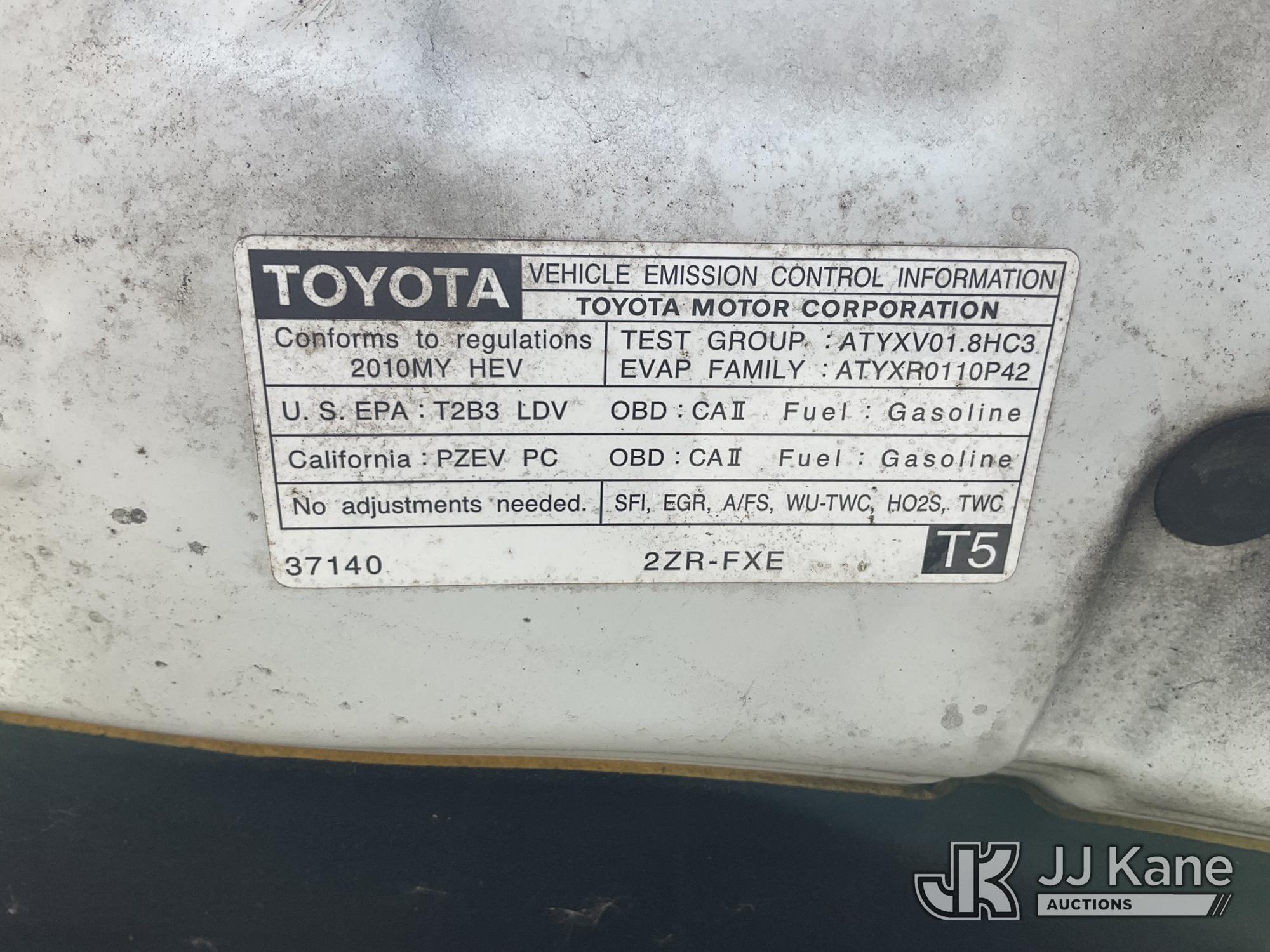 2010 Toyota Prius Hybrid 4-Door Hatch Back, s/n JTDKN3DU2A1304970, 1.8L L4 DOHC 16V FWD, HYBRID, Continuously Variable Transmission, A/C, (36,340 miles) (Runs & Moves, Paint Damage) This is a Titled Item*