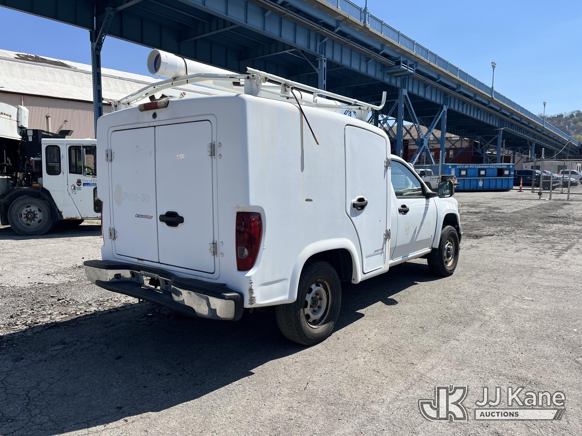 2008 Chevrolet Colorado 2WD Enclosed Service Truck, 5-cyl gas, Auto, A/C, (108,708 miles) (Runs & Moves, Jump To Start, Dents & Dings On Fenders) (Removal is by appointment only. Buyer/Transporter MUST have a PAID IN FULL RELEASE form. No on-site assistance will be provided, so please arrive fully prepared. The location cannot accommodate large rollback trucks for non-running vehicles. Smaller equipment must be used to move vehicles to an open area for loading.) This is a Titled Item*