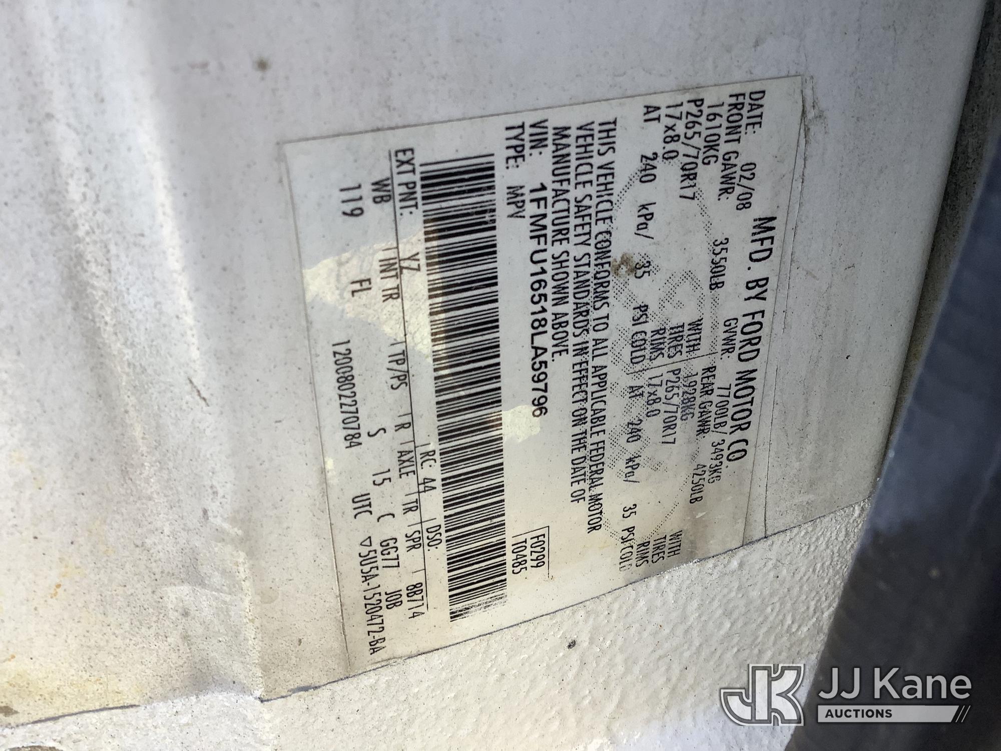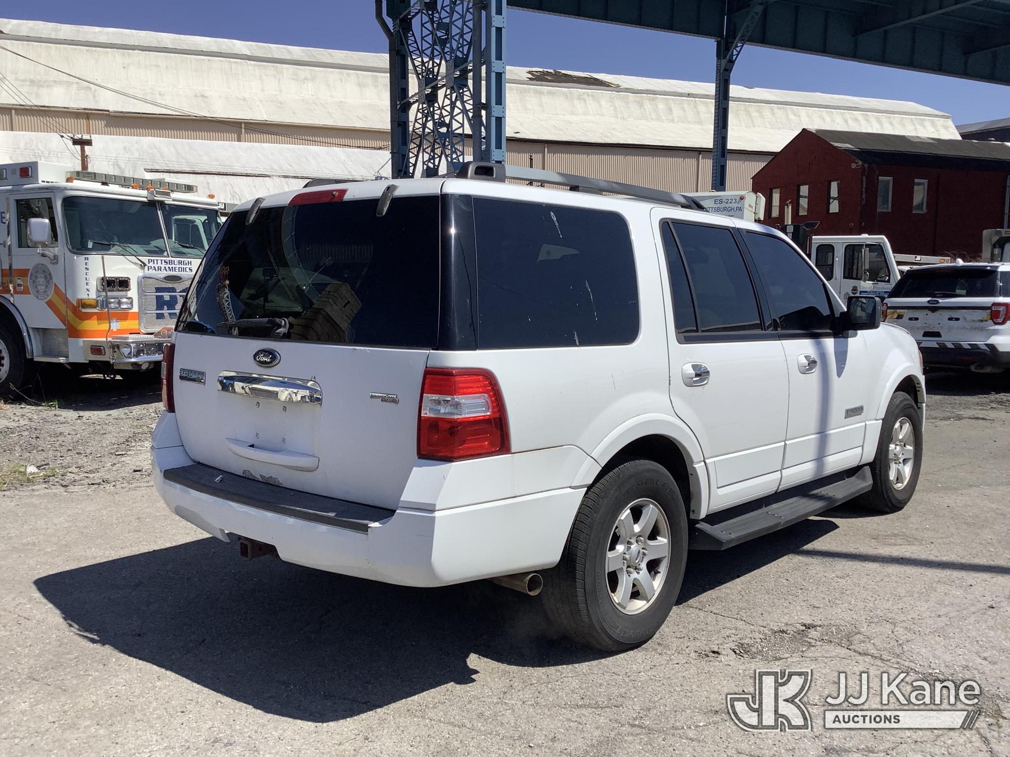 2008 Ford Expedition 4x4 4-Door Sport Utility Vehicle, 8-cyl gas, Auto, A/C, (91,779 miles) (Runs & Moves. Rear Door Inop, Hood Not Latching, Rust On Body) (Removal is by appointment only. Buyer/Transporter MUST have a PAID IN FULL RELEASE form. No on-site assistance will be provided, so please arrive fully prepared. The location cannot accommodate large rollback trucks for non-running vehicles. Smaller equipment must be used to move vehicles to an open area for loading.) This is a Titled Item*