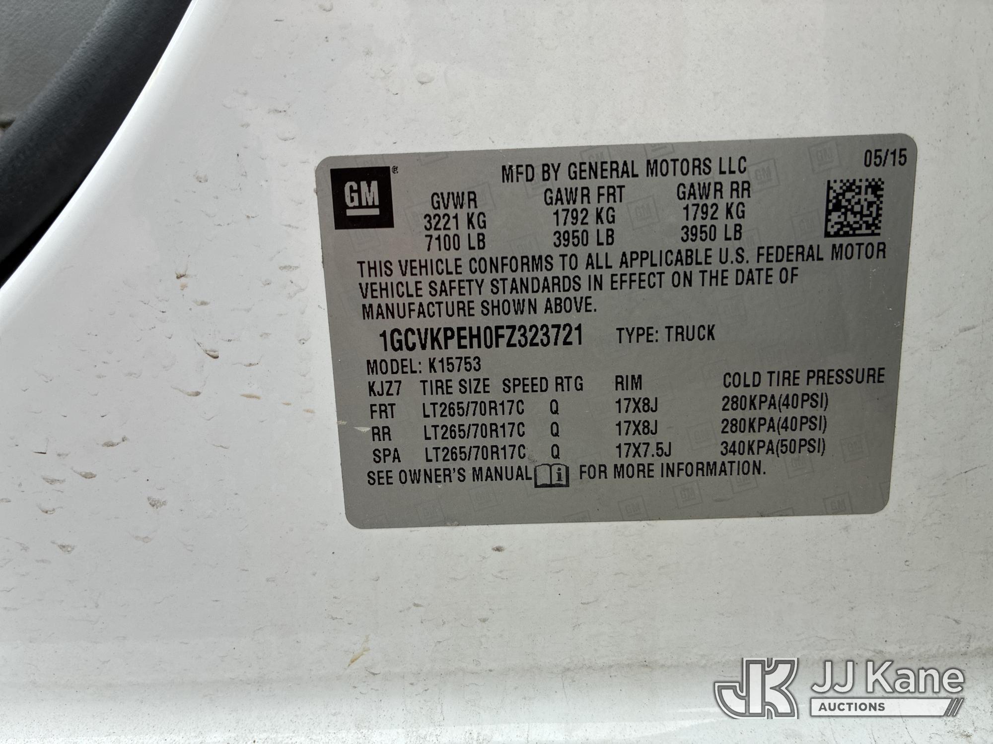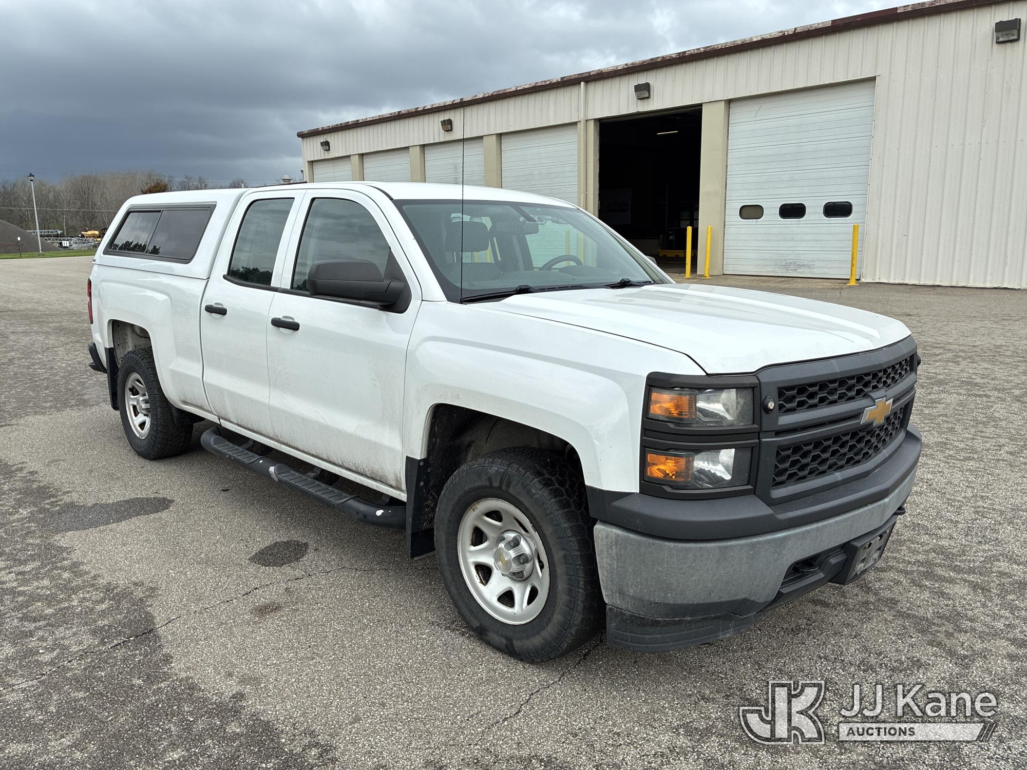 2015 Chevrolet Silverado 1500 4x4 Extended-Cab Pickup Truck, 4.3L V6 OHV 12V gas, 6-Speed Automatic, A/C, with bed cap & bed slide, (145,459 miles) (Runs & Moves) (Rip In Drivers Seat) (Reads 5,035 hours) This is a Titled Item*