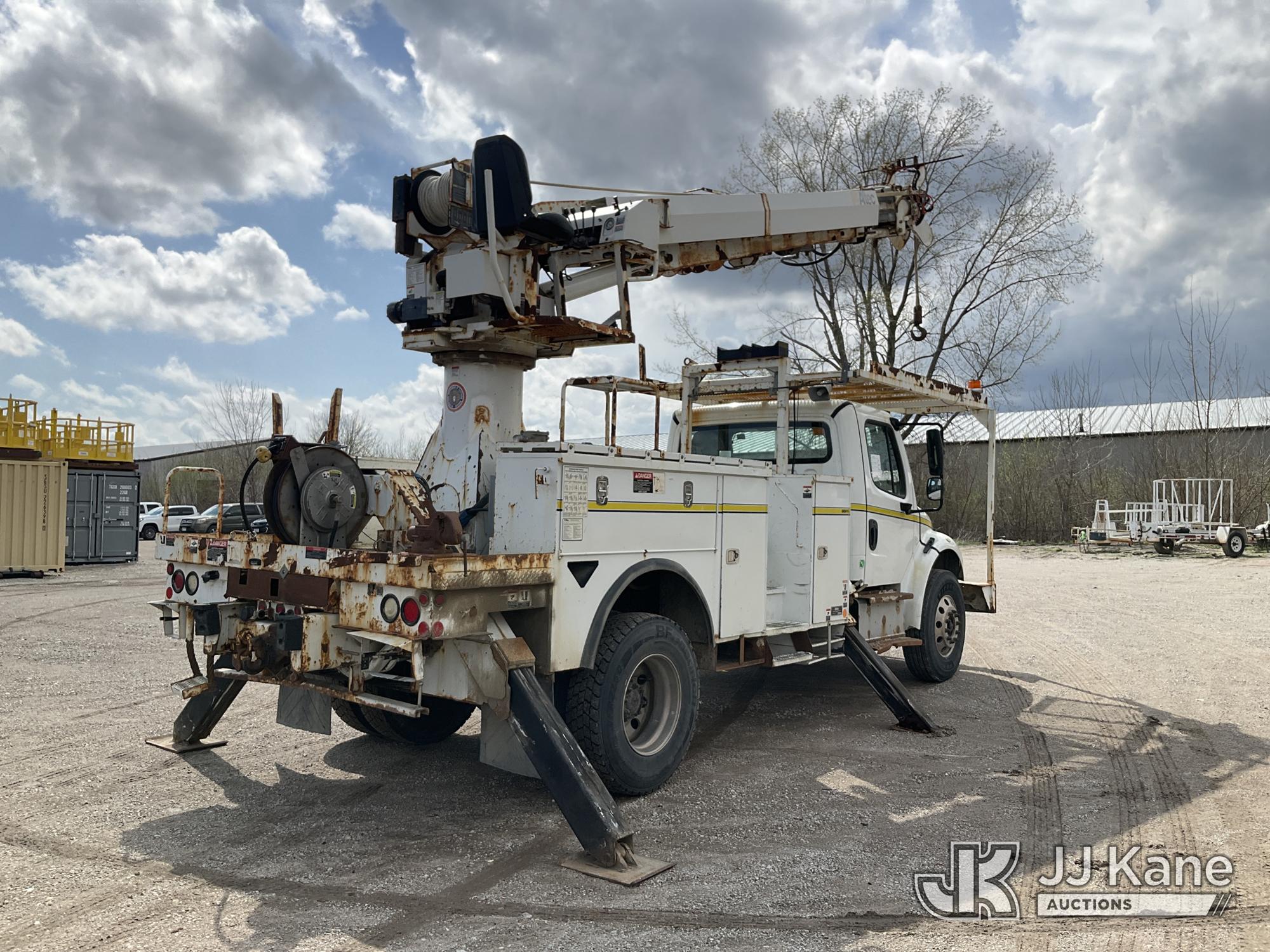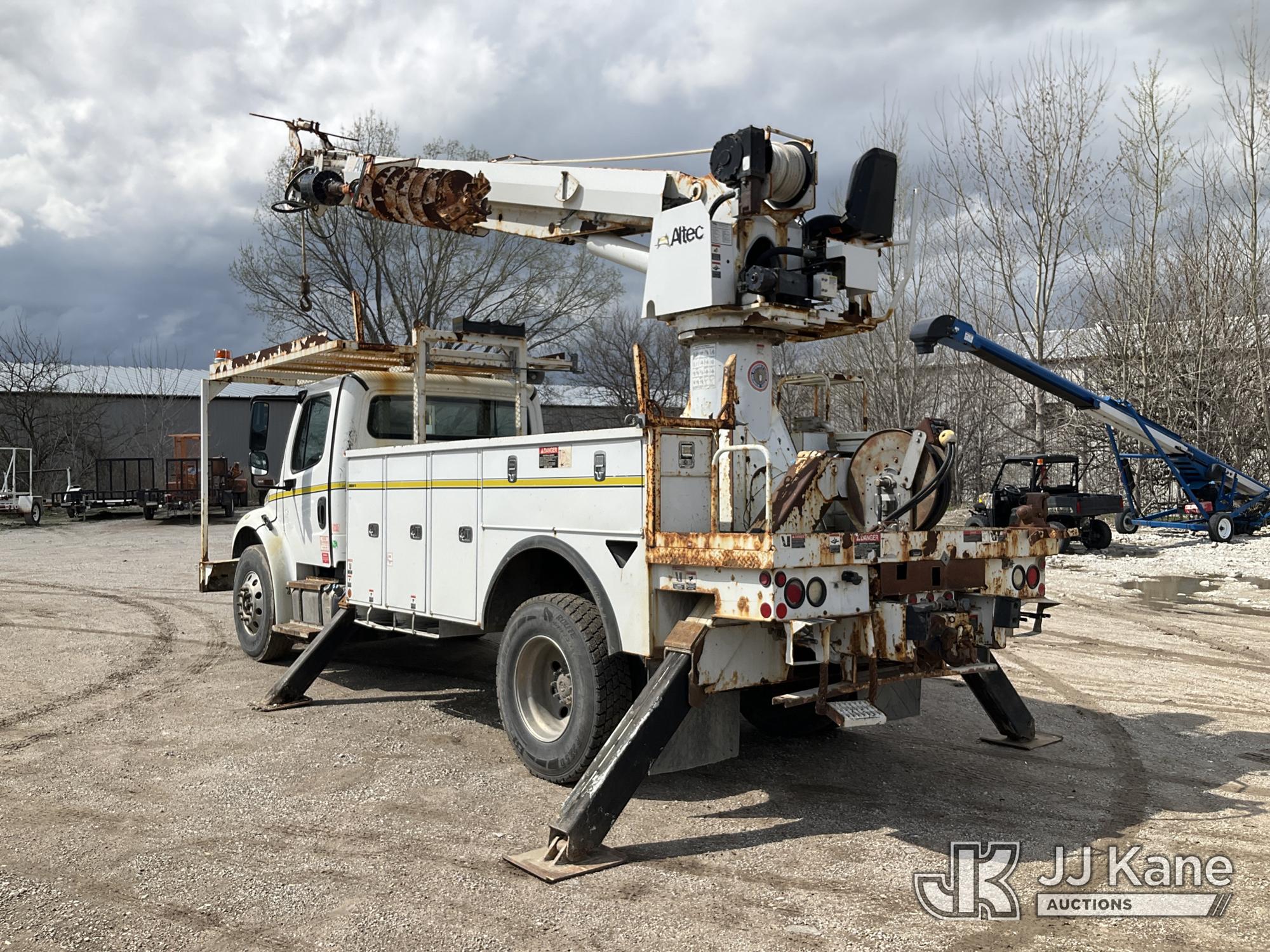 Altec DC47-TR, 23,790 Lb Digger Derrick s/n 1113EU0876, with 3 section, 47ft sheave height, heel winch, 4 hyd outriggers, pole grabs & riding console, rear mounted on 2014 Freightliner M2 106 Utility Truck, 6.7L L6 DIESEL 4X2, Auto, A/C, with 3083 PTO Hours , (69,889 miles) ((Runs, Moves & Upper Operates)) (Reads 8,281 hours) This is a Titled Item*