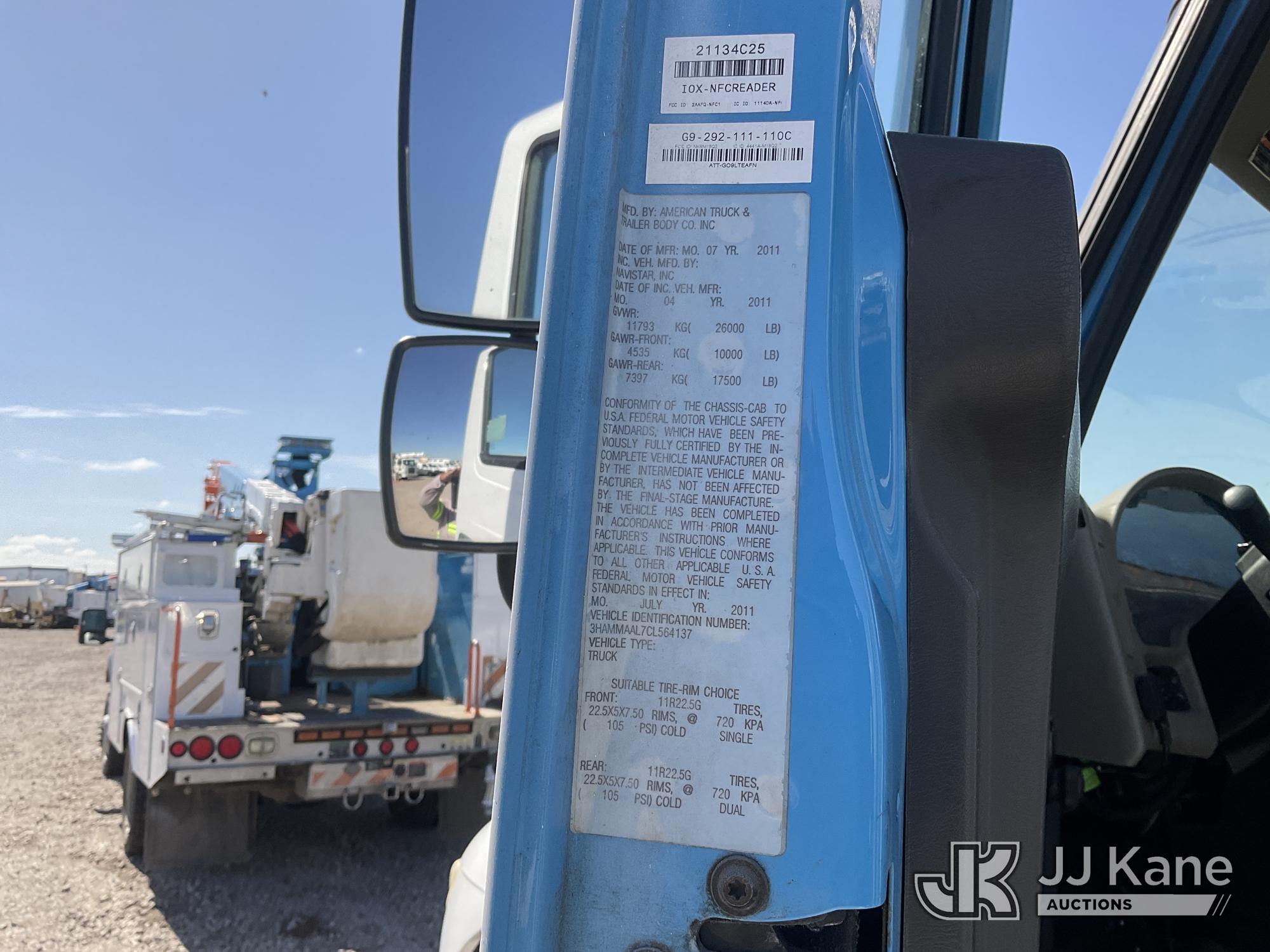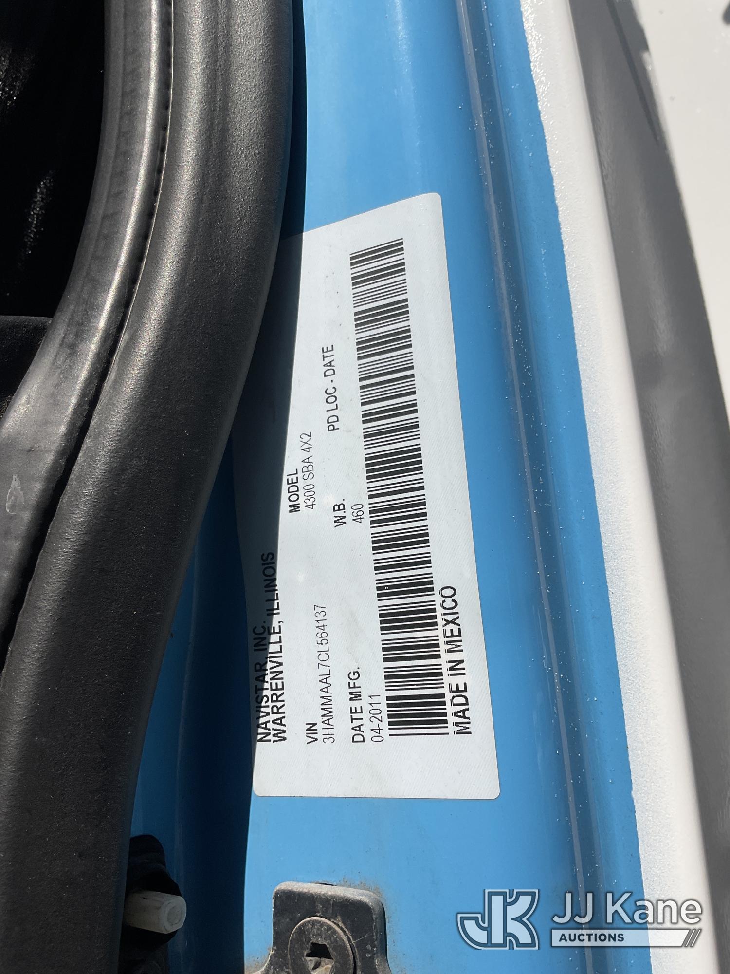2012 International DuraStar 4300 Mechanics Service Truck, s/n 3HAMMAAL7CL564137, 7.6L L6 4X2, DIESEL, Auto, A/C, with Tow Package, Auto Crane, Hydraulic Outriggers, Lincoln Electric Vantage 300, (35,827 miles) (Runs & Moves, Crane Does Not Operate) (Reads 1,766 hours) May be subject to ARB Regulations This is a Titled Item*