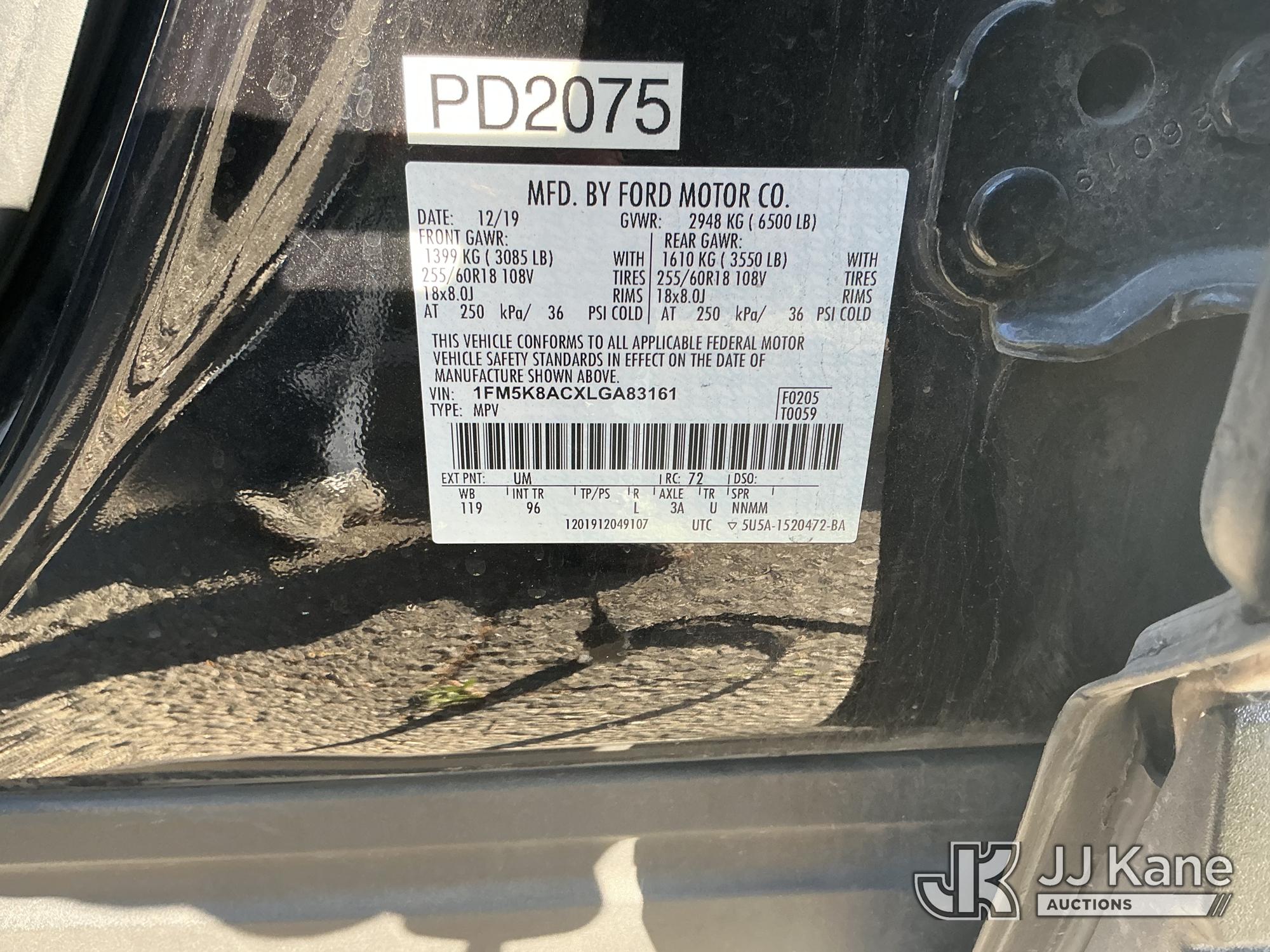 2020 Ford Explorer Police 4WD 4-Door Sport Utility Vehicle, s/n 1FM5K8ACXLGA83161, 3.0L V6 DOHC 24V GAS, 10-Speed Automatic, A/C, (83,101 miles) (Runs & Moves)(No Horn, No Rear Seats/Seatbelts, Front Windshield Cracked) (Bidding Restricted to Licensed Vehicle Dealers Only), This is a Titled Item*