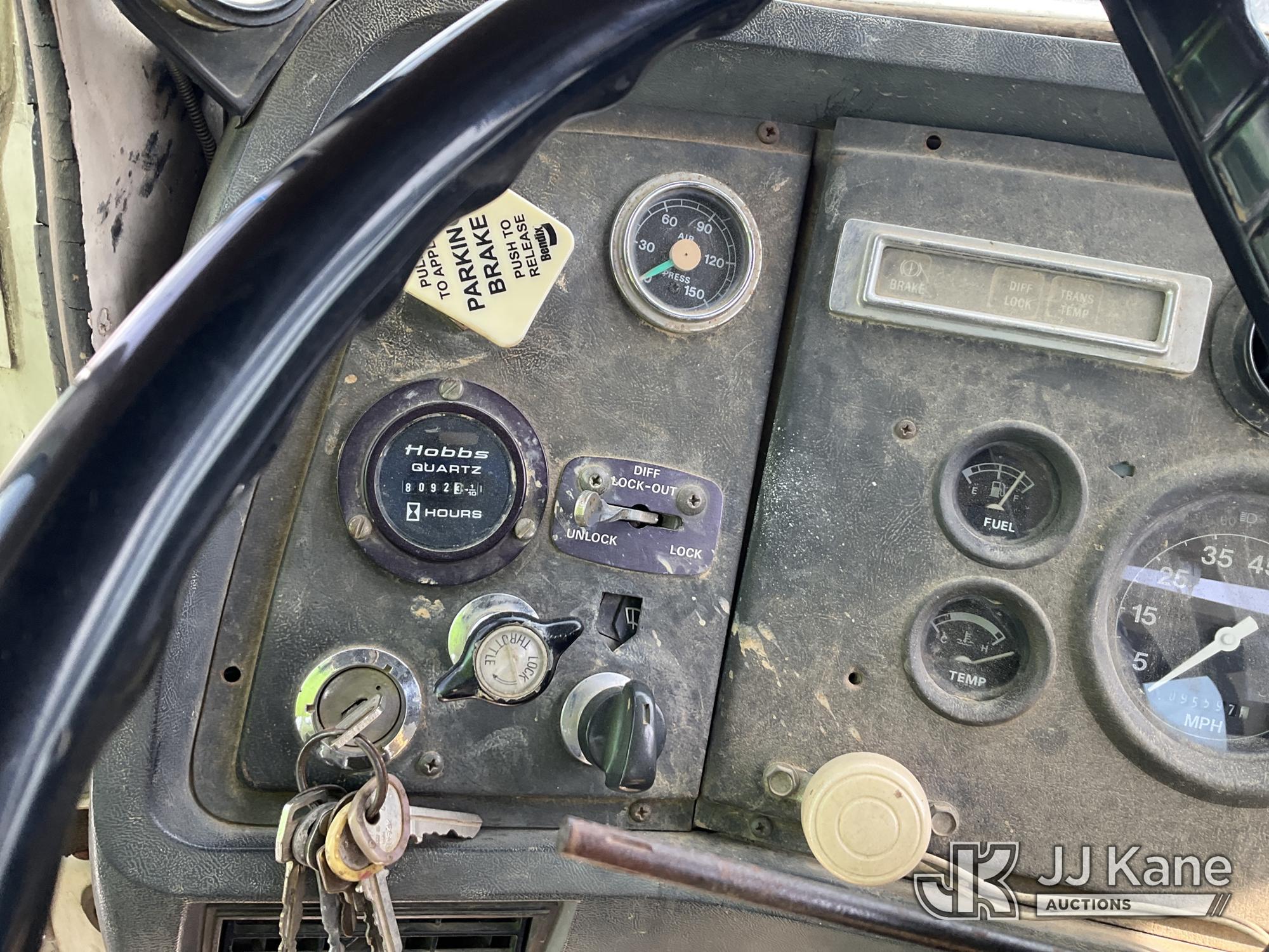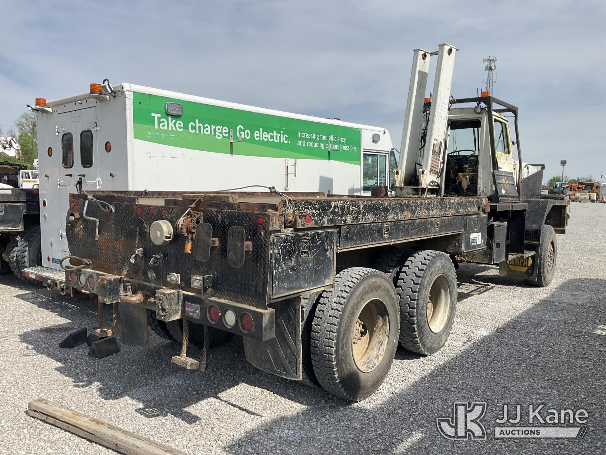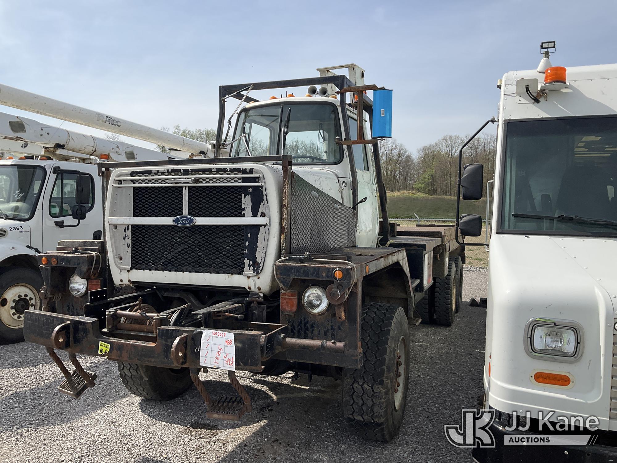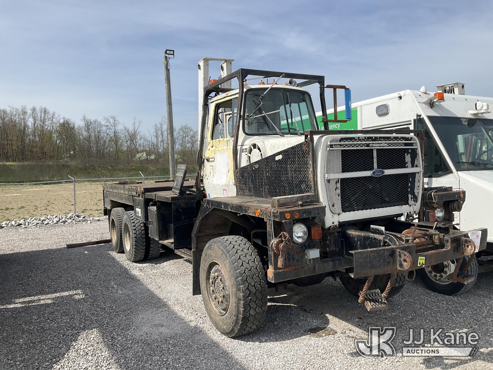 1989 Ford LTS8000 6x6 Flatbed Truck, Ford 7.8L diesel, Auto, A/C, (Exempt from Odometer Disclosure - Reads 95,597 miles) (Runs) (Does Not Move, Will Not Build Air Pressure, Rear Drive Shaft Removed, Knuckle Boom Removed, Rust & Body Damage) This is a Titled Item*