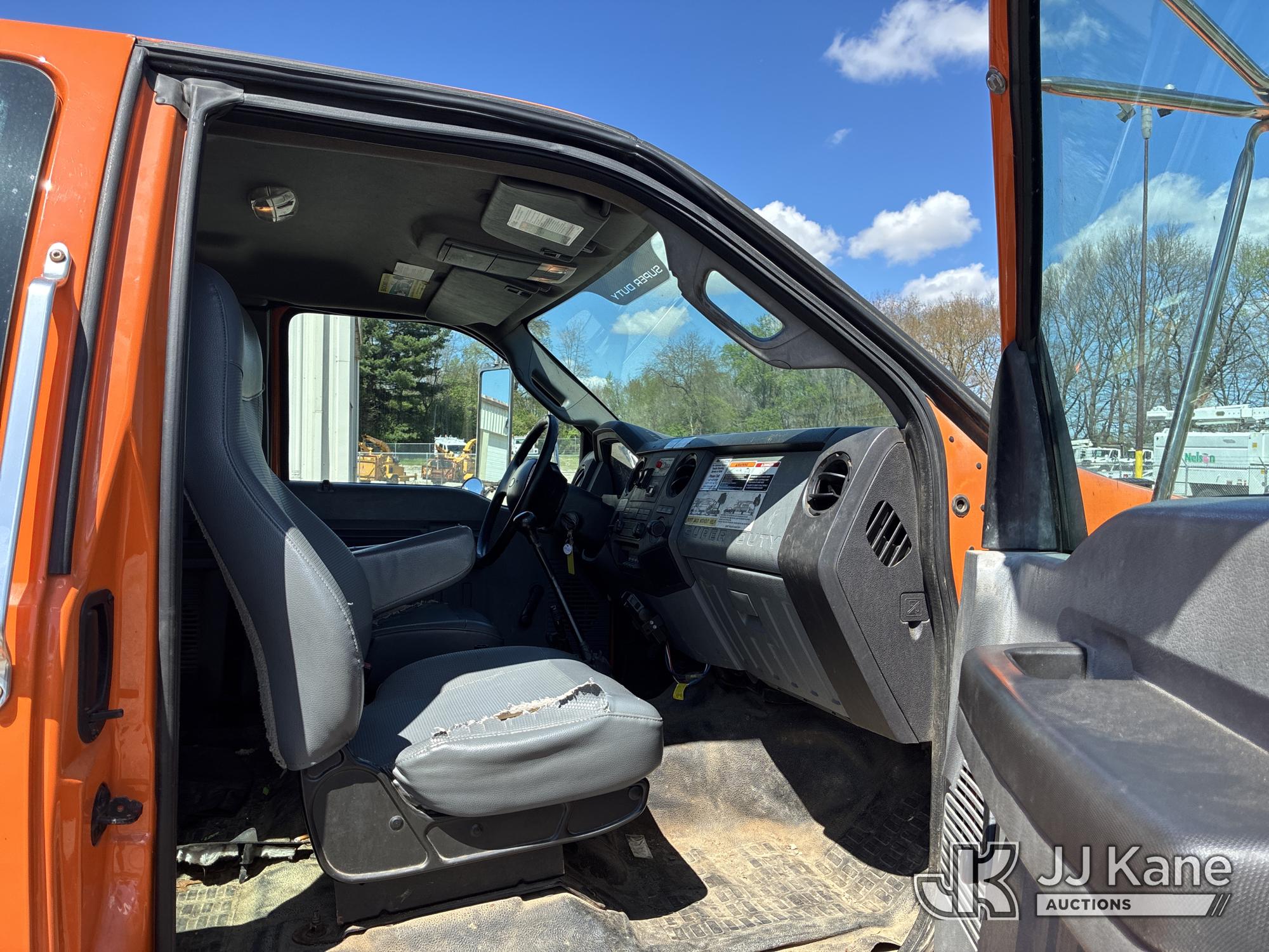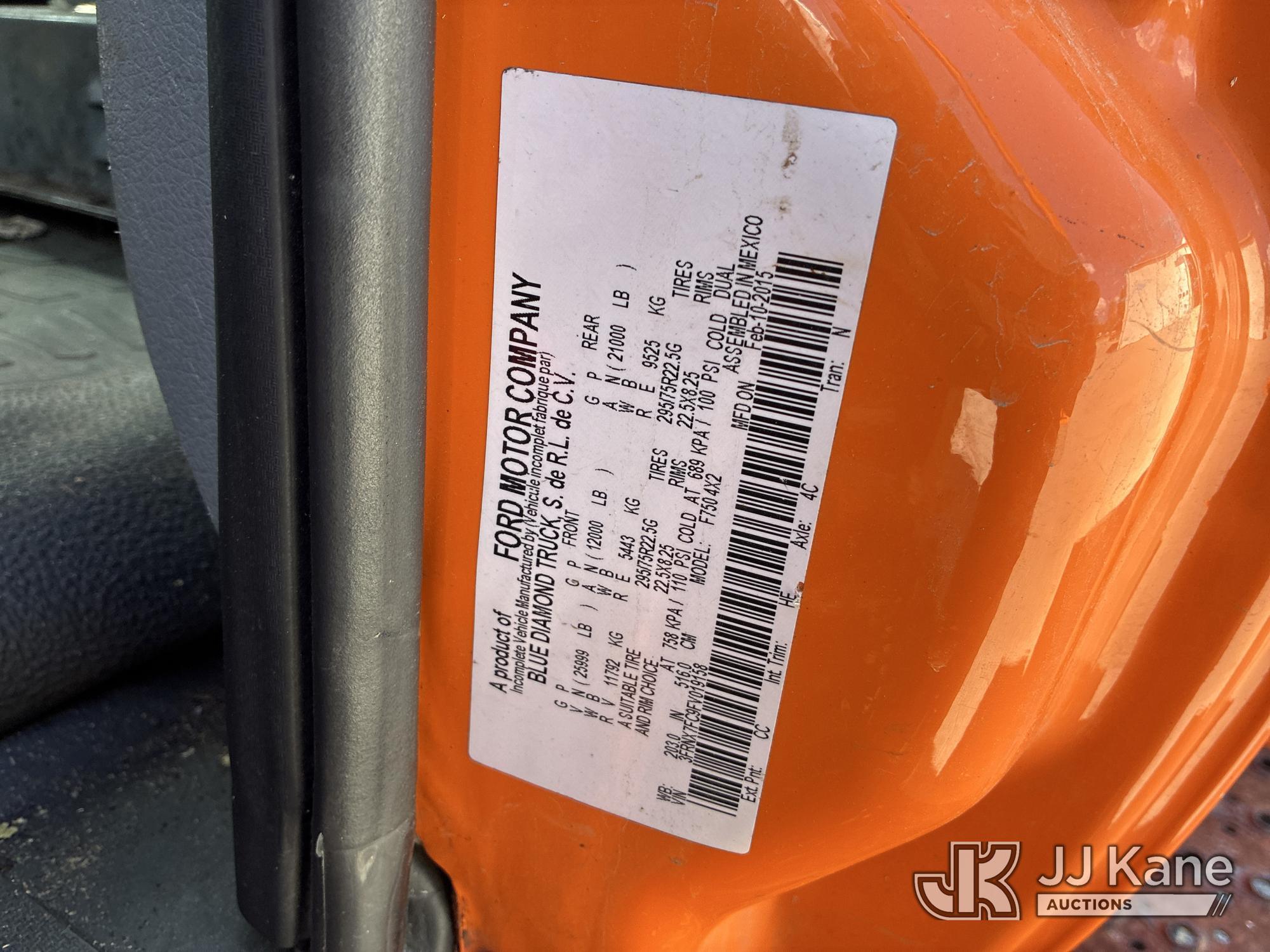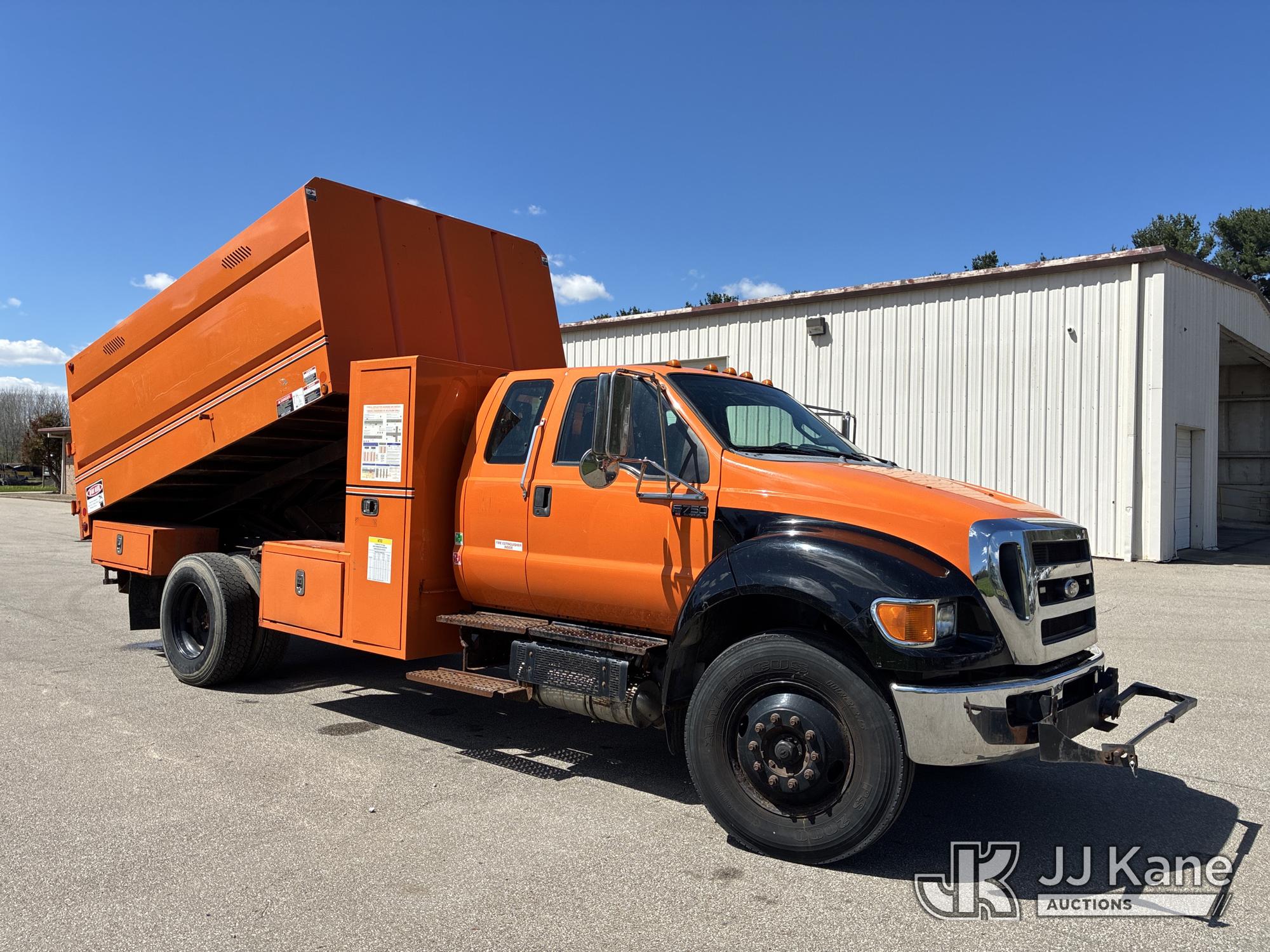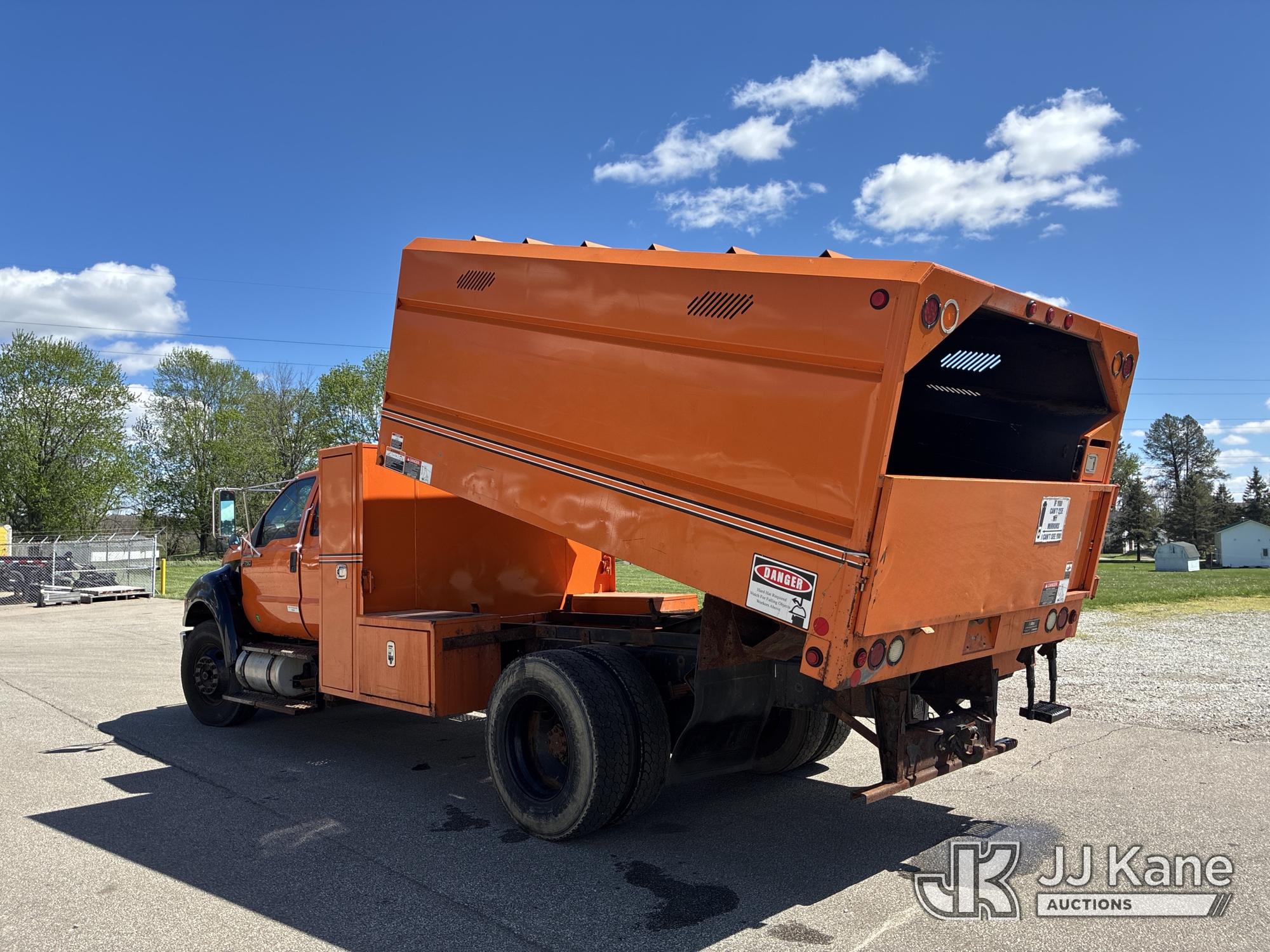2015 Ford F-750 SuperCab 2WD DRW Extended-Cab Chipper Dump Truck, 6.7L L6 DIESEL 4X2, 6-spd, (72,513 miles) all dash lights on, ABS needs repaired (Runs, Moves, & Dump Operates) (Interior Damage, Seller States All Dash Lights On, ABS Needs Repaired) This is a Titled Item*