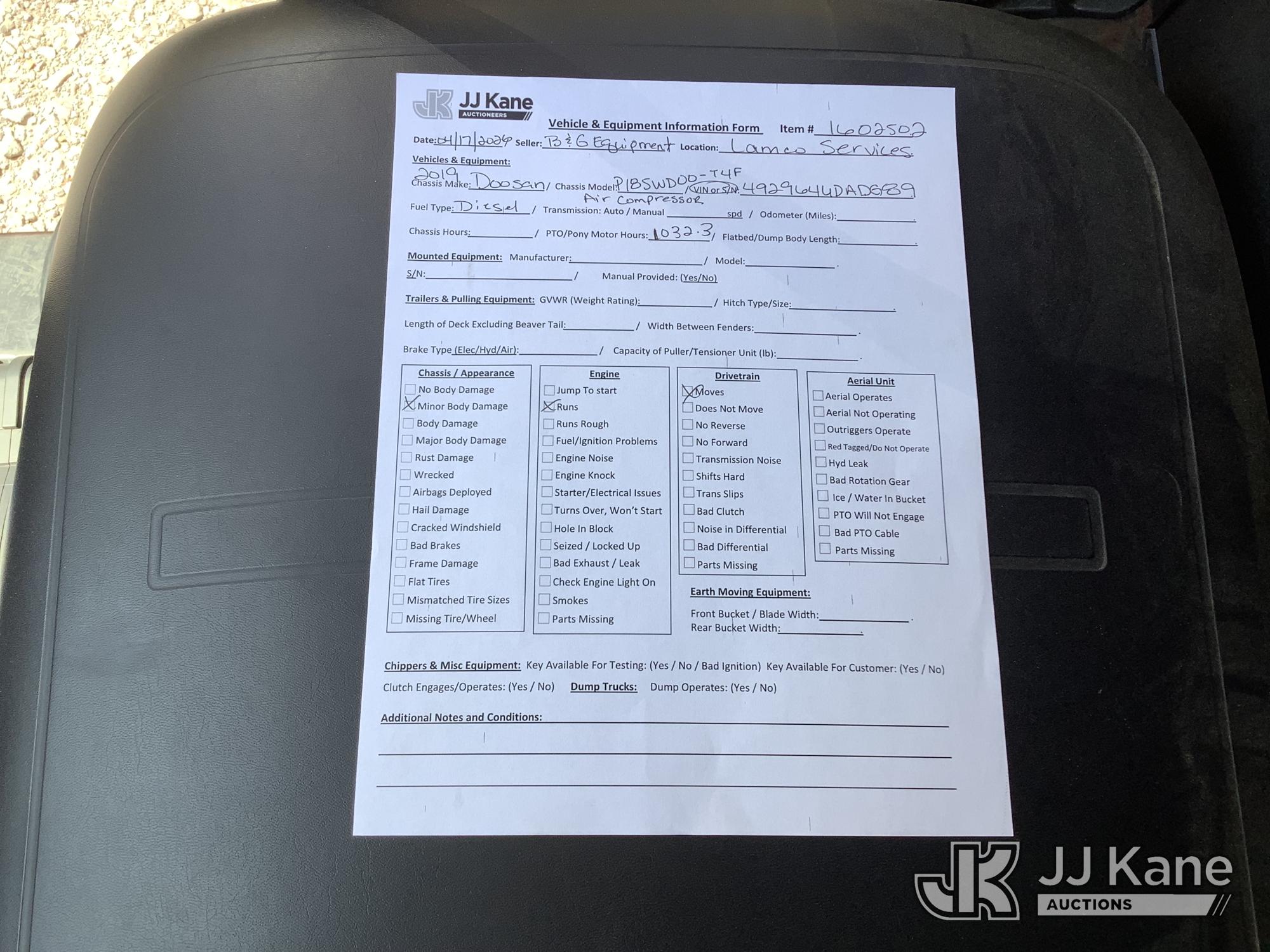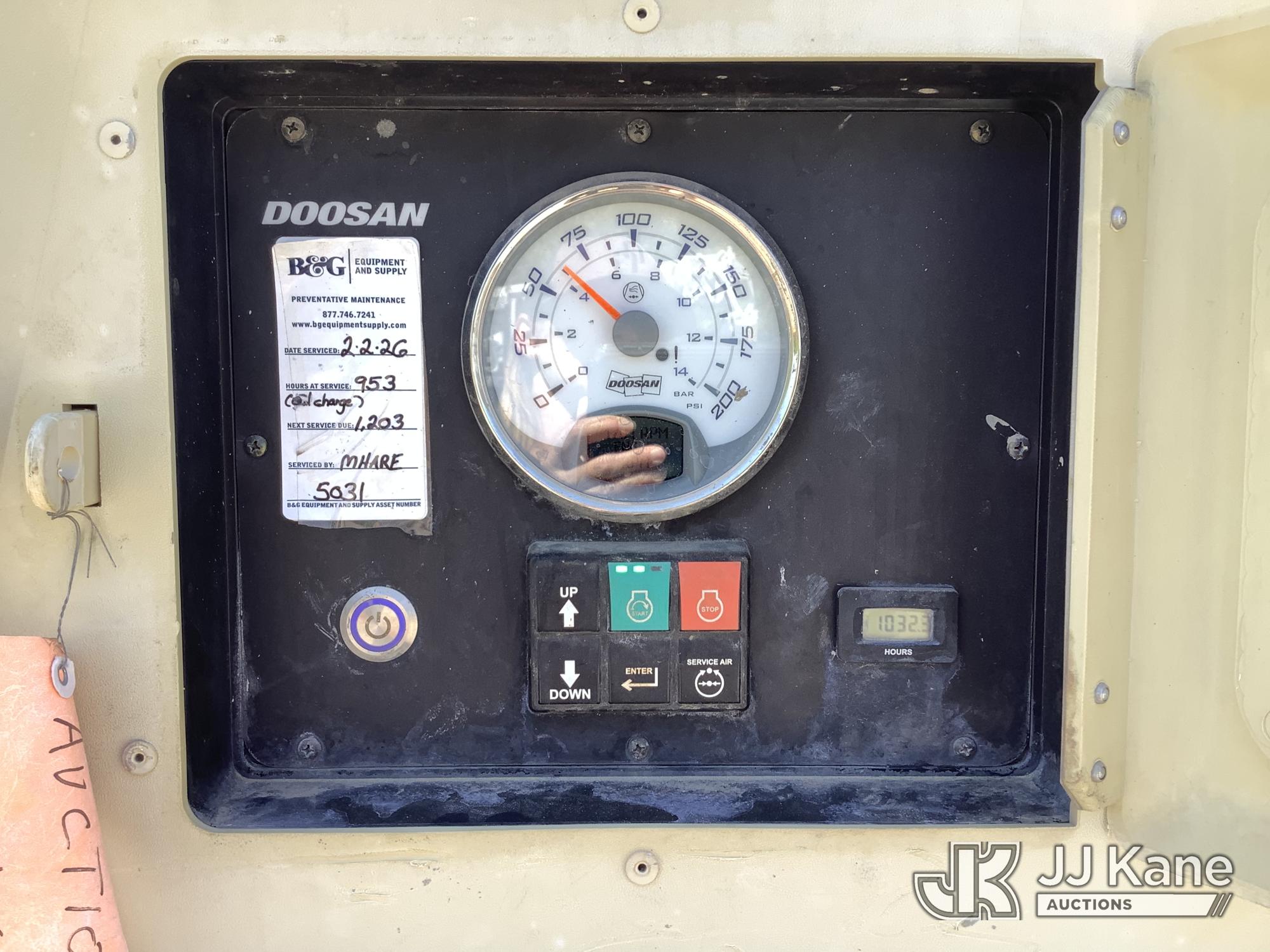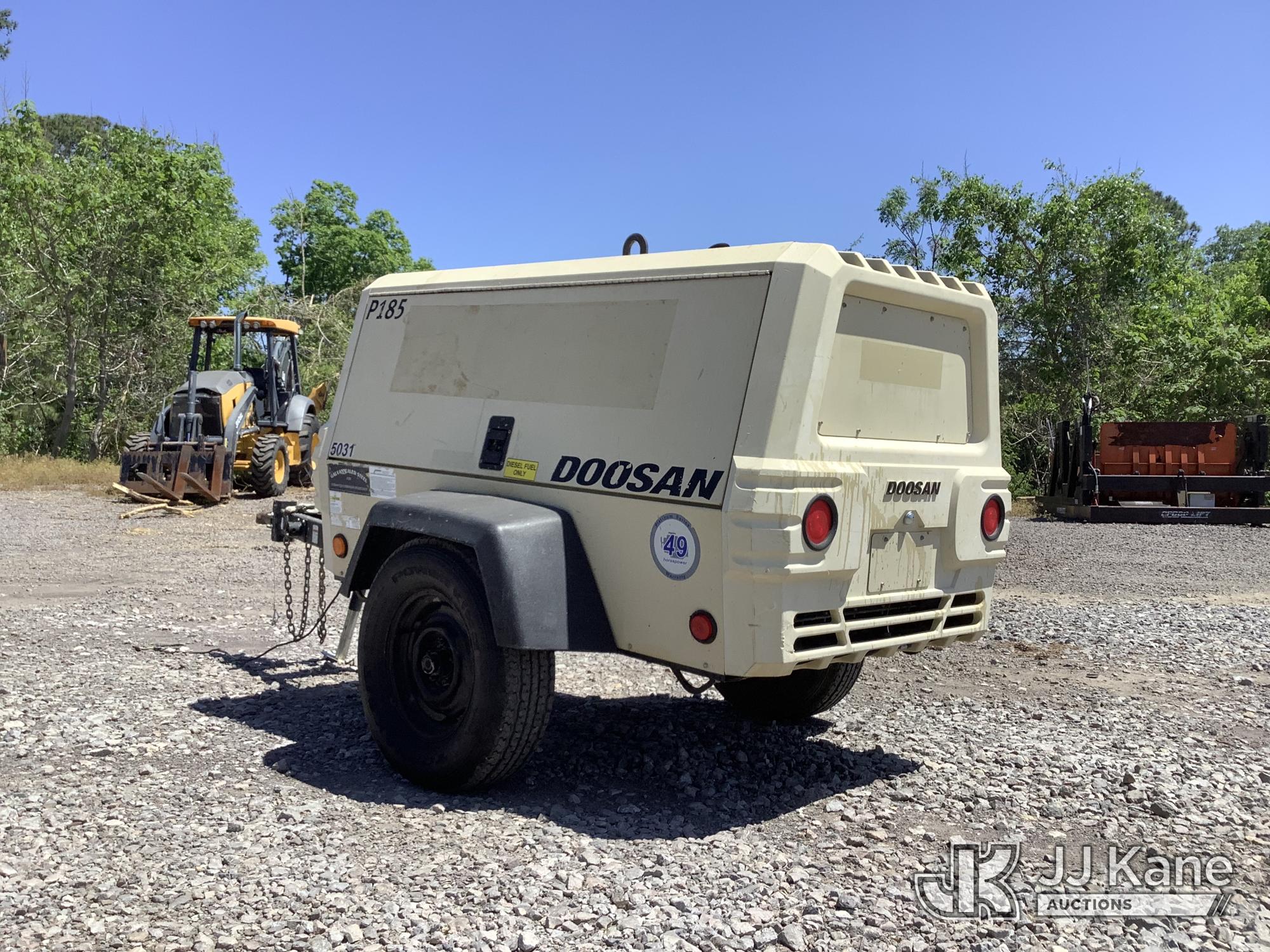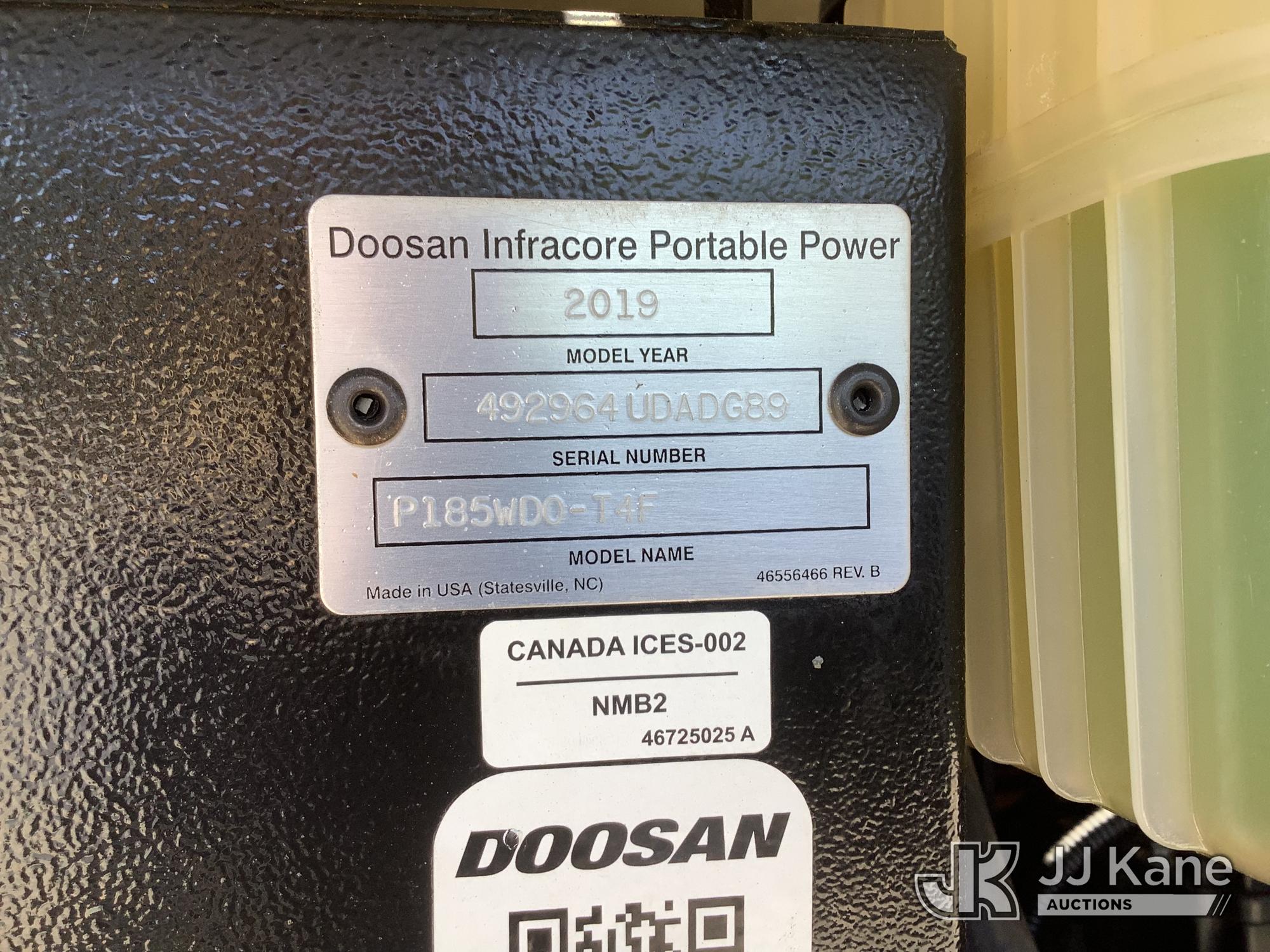 2019 Doosan P185WDO-T4F Portable Air Compressor, s/n 492964UDADG89, diesel, trailer mtd. (No Title) (Runs) (Reads 1,032 hours)*