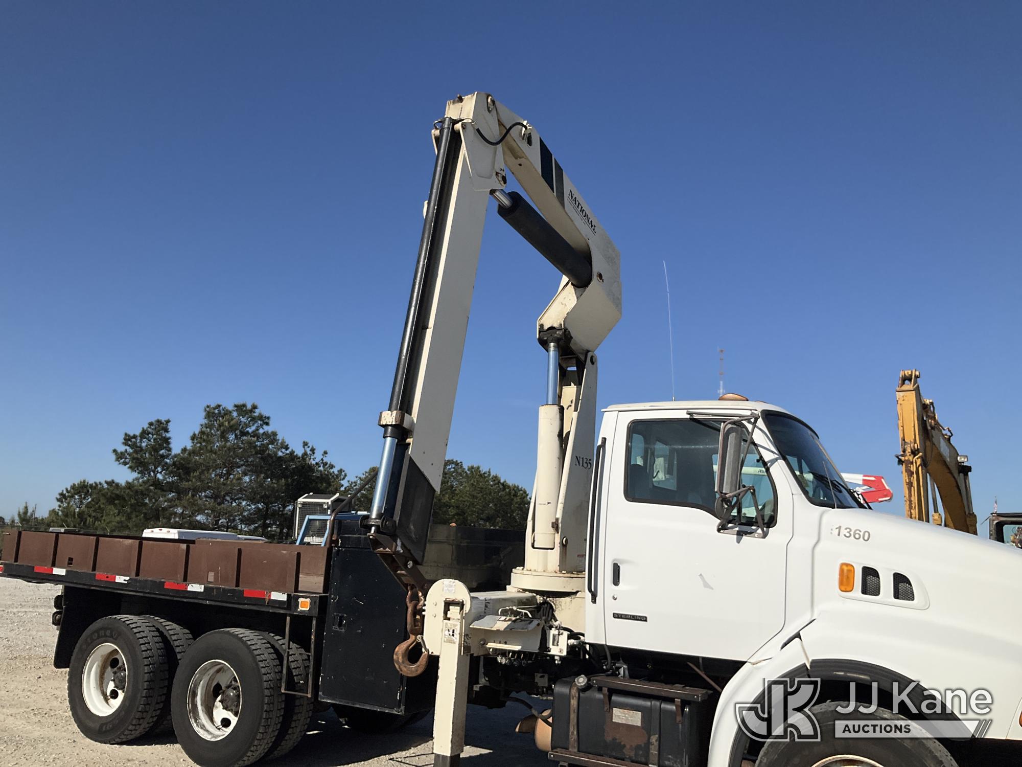 National N135, 19,000 Lb Knuckleboom Crane s/n 33129, with 34ft reach, mounted behind cab on 2001 Sterling LT8500 T/A Flatbed/Utility Truck, 7.2L 6X4, DIESEL, 9-spd, A/C, (Exempt from Odometer Disclosure - Reads 151,291 miles) (Runs, Moves & Operates) (Reads 9,089 hours) This is a Titled Item*