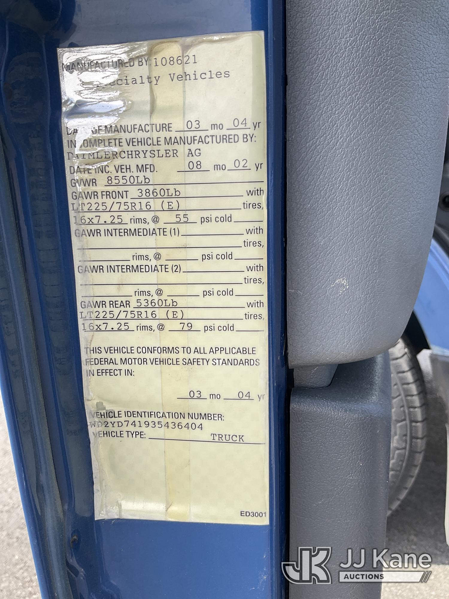 2003 Dodge Sprinter Van 2500 Super High Ceiling 158-in. WB Sprinter Cargo Van, 2.7L diesel, RWD, Auto, with Onan CMQD 7500 generator, communications equipment, (Exempt from Odometer Disclosure - Reads 11,901 miles) (Runs & Moves) (Driver Window Does Not Roll Up) This is a Titled Item*
