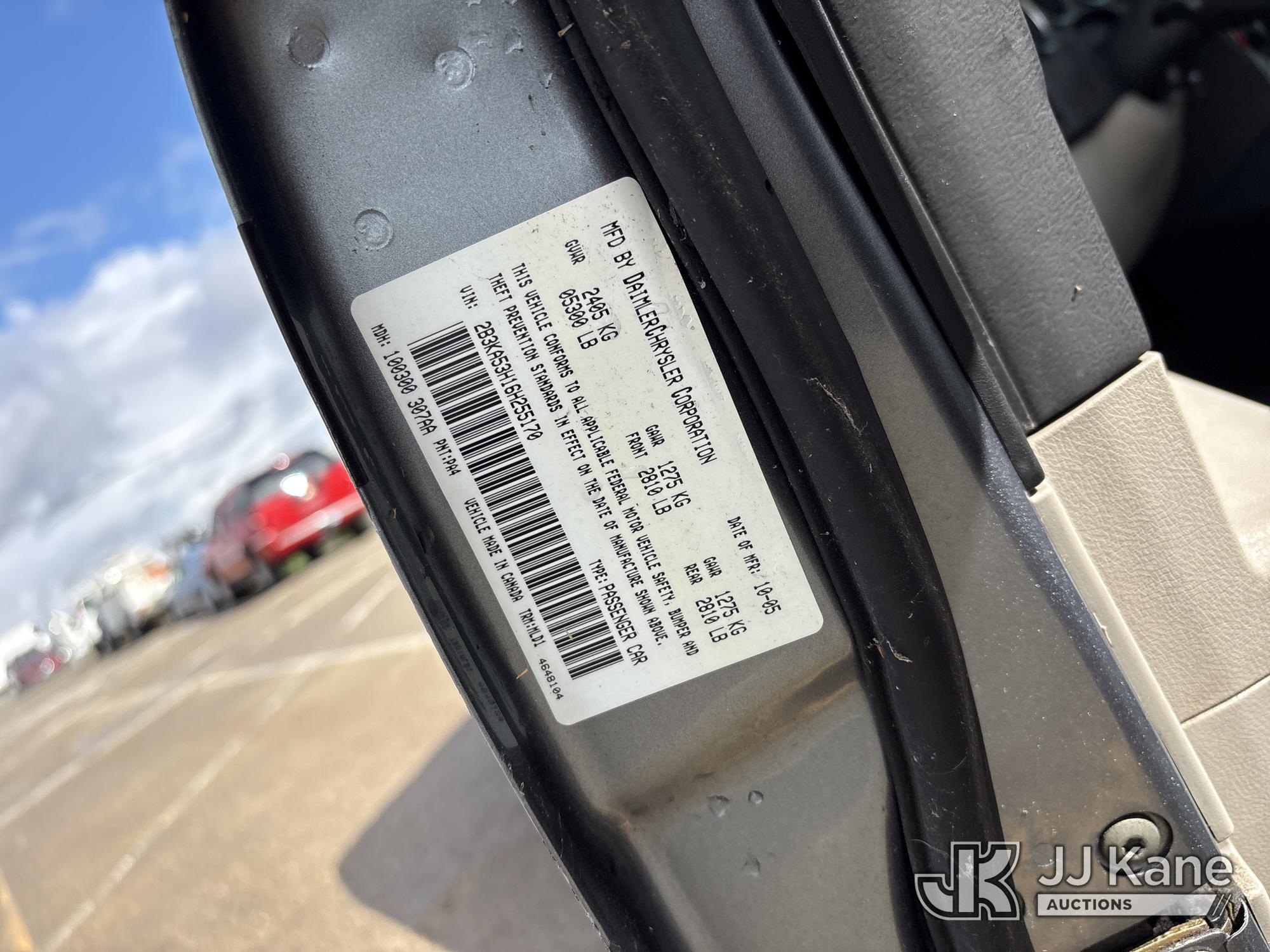 2006 Dodge Charger R/T 4-Door Sedan, s/n 2B3KA53H16H255170, 5.7L V8 OHV 16V RWD, GAS, 5-Speed Automatic, A/C, (Exempt from Odometer Disclosure - Reads 140,119 miles) (Runs & Moves)(Needs Jump Pack To Stay Connected , Vehicle previously used with a ‘cold plate’ or protected record registration. Due to the prior status, VIN may not yet appear in NMVTIS, which could affect DMV title/registration processing. Buyer acknowledges and accepts this) (Bidding Restricted to Licensed Vehicle Dealers Only), This is a Titled Item*