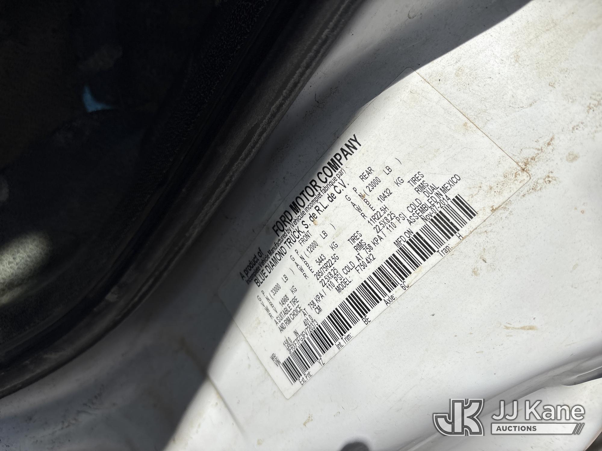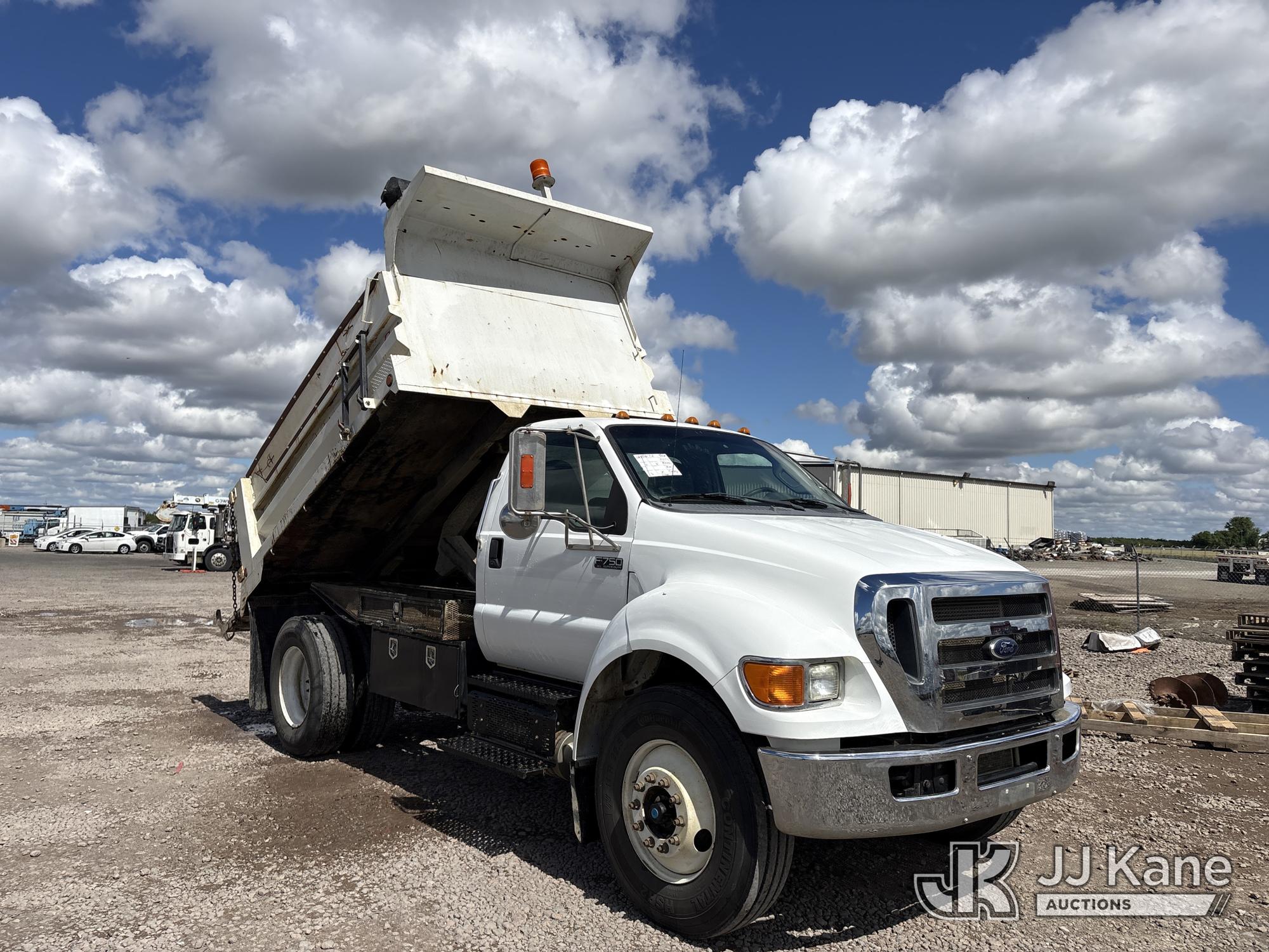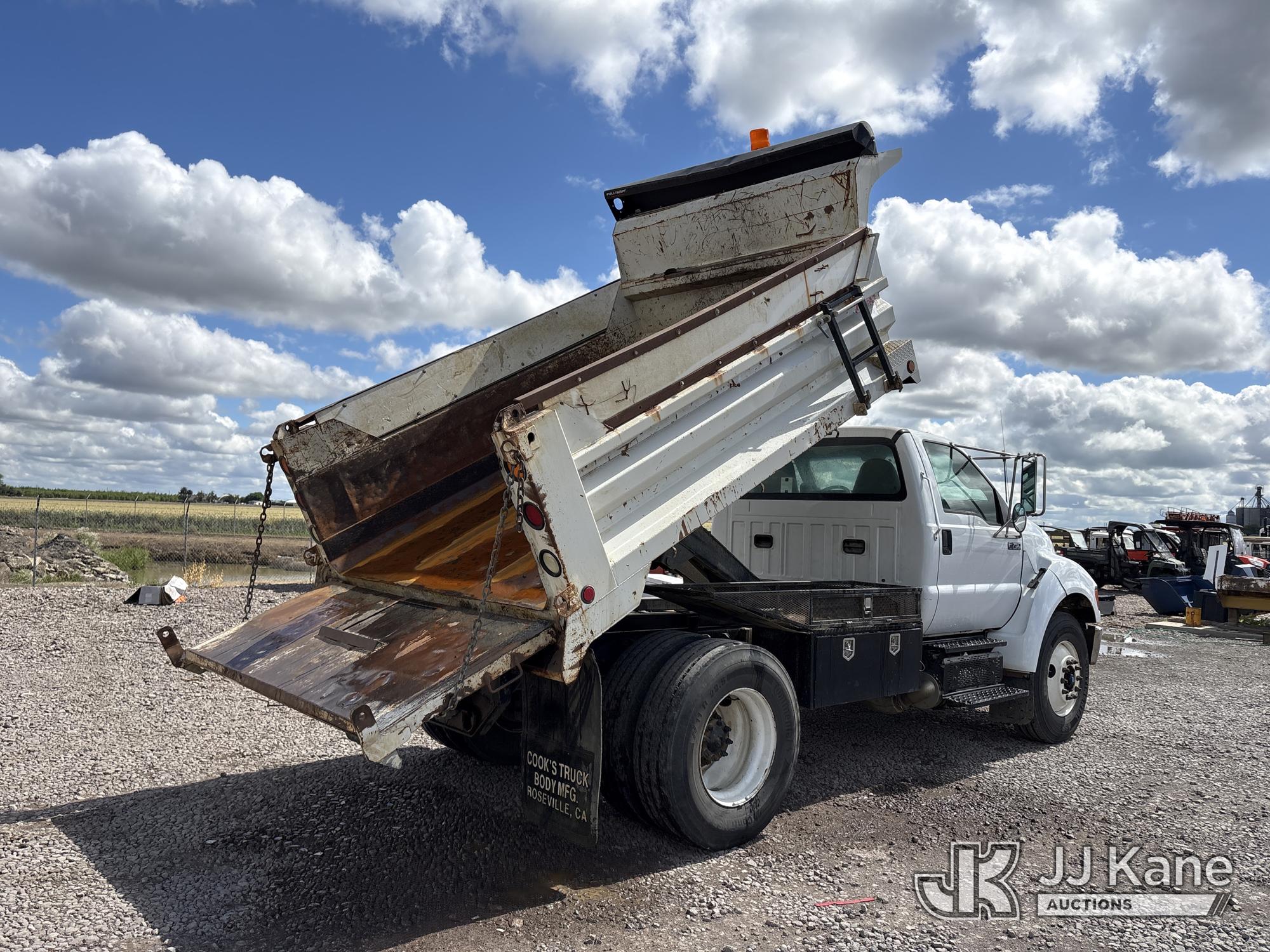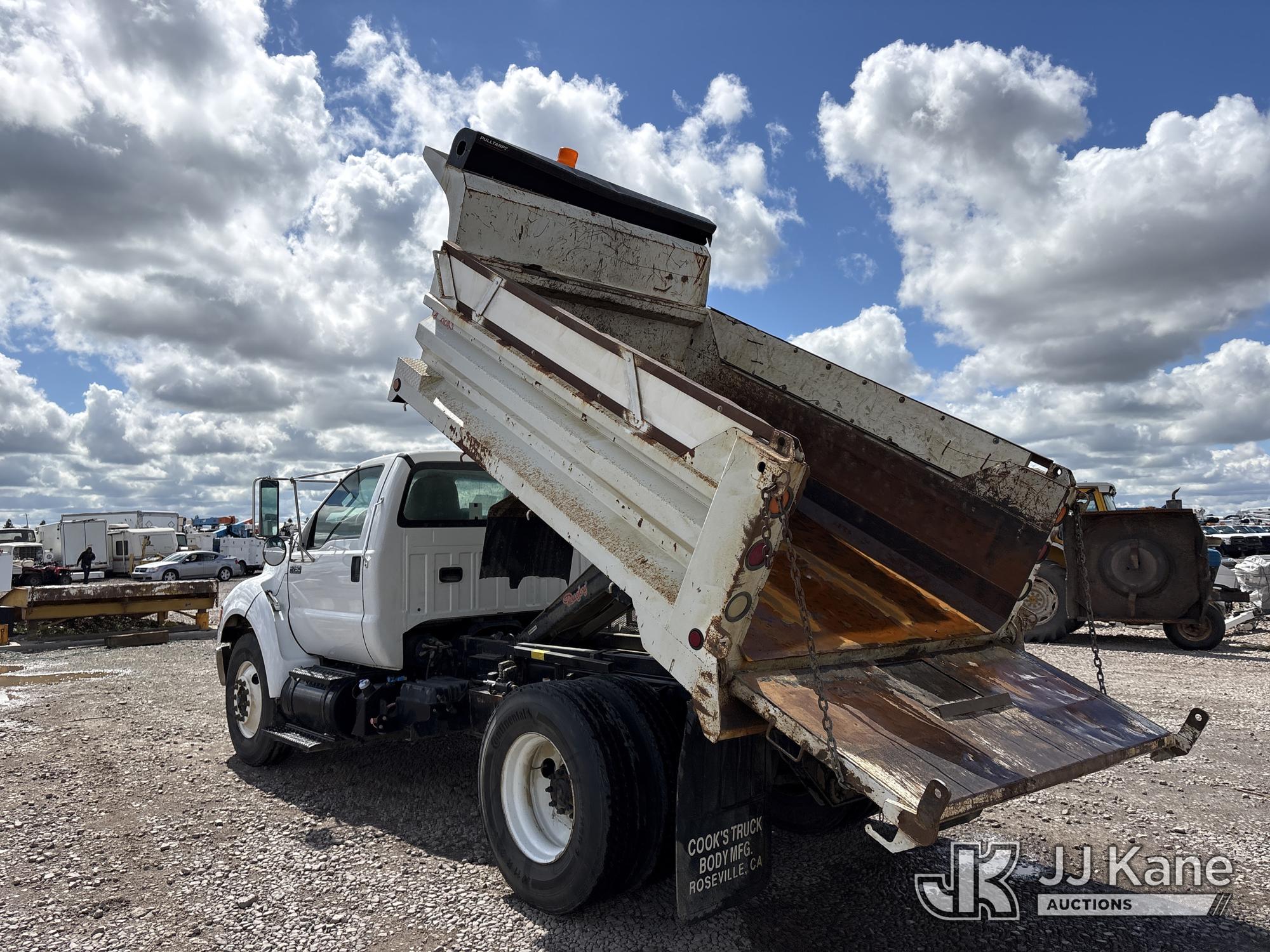 2015 Ford F-750 Regular Cab 2WD DRW Dump Truck, s/n 3FRXF7FG3FV720373, 6.7L L6 4X2, DIESEL, Auto, A/C, (82,341 miles) (Runs, Moves & Operates, Upper Pins Missing For Tail Gate) May be subject to ARB Regulations This is a Titled Item*
