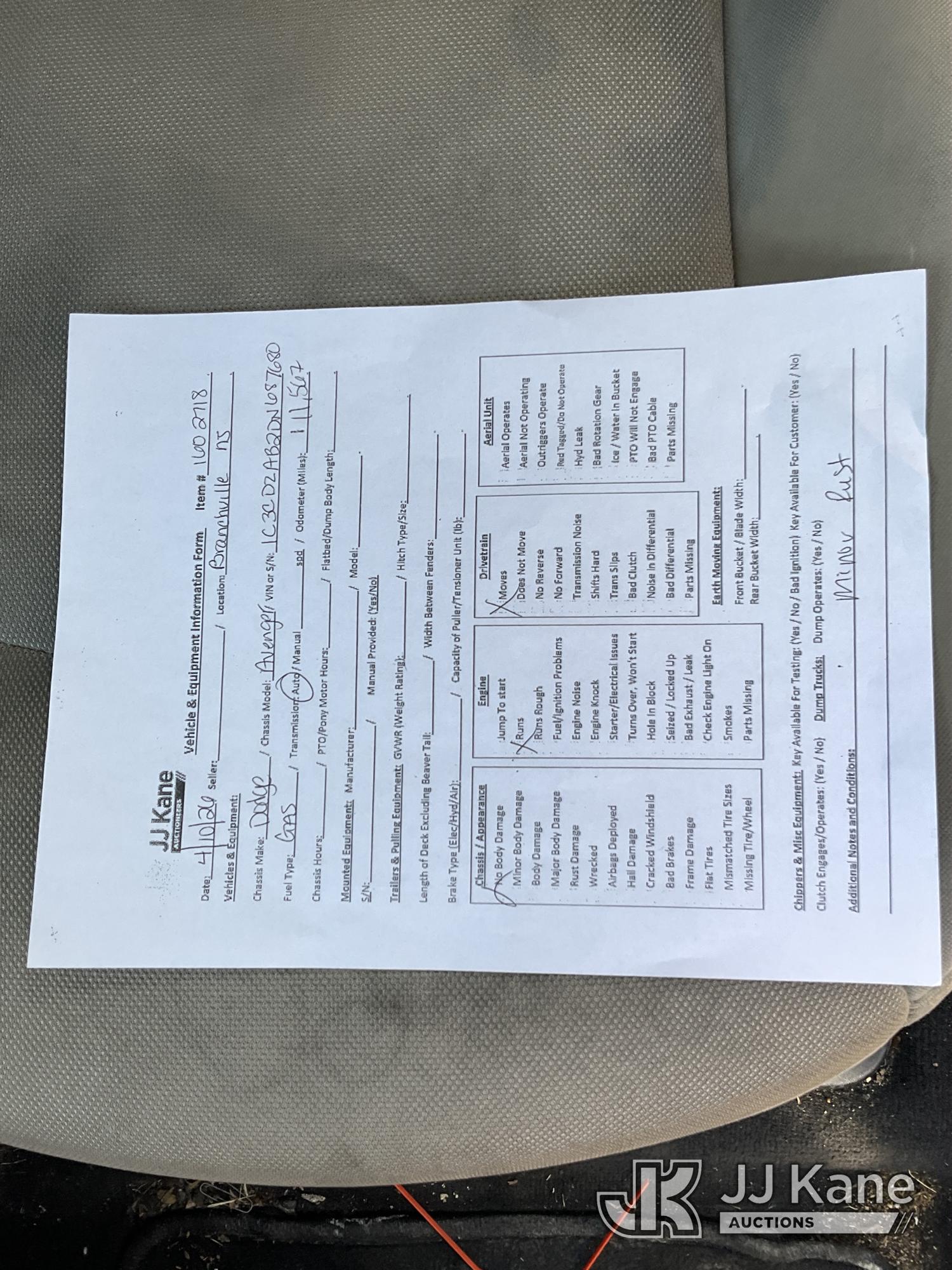 2013 Dodge Avenger 4-Door Sedan, 4-cyl gas, Auto, A/C, (111,567 miles) (Runs & Moves) (Removal is by Appointment Only, Buyer MUST make a appointment prior to picking up, Buyer/Transporter Must have PAID IN FULL RELEASE. No onsite assistance available, Please Come prepared.) This is a Titled Item*