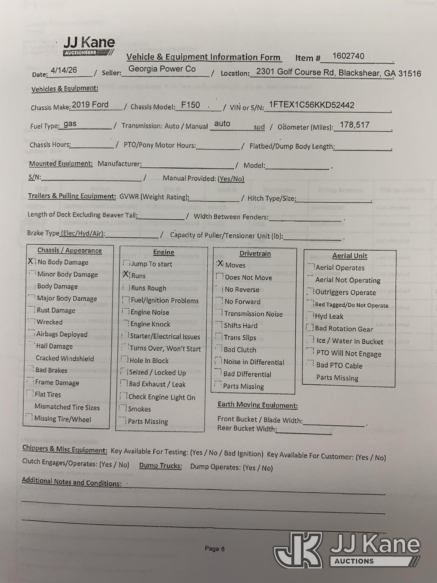 - Equipment Location: Blackshear, GA