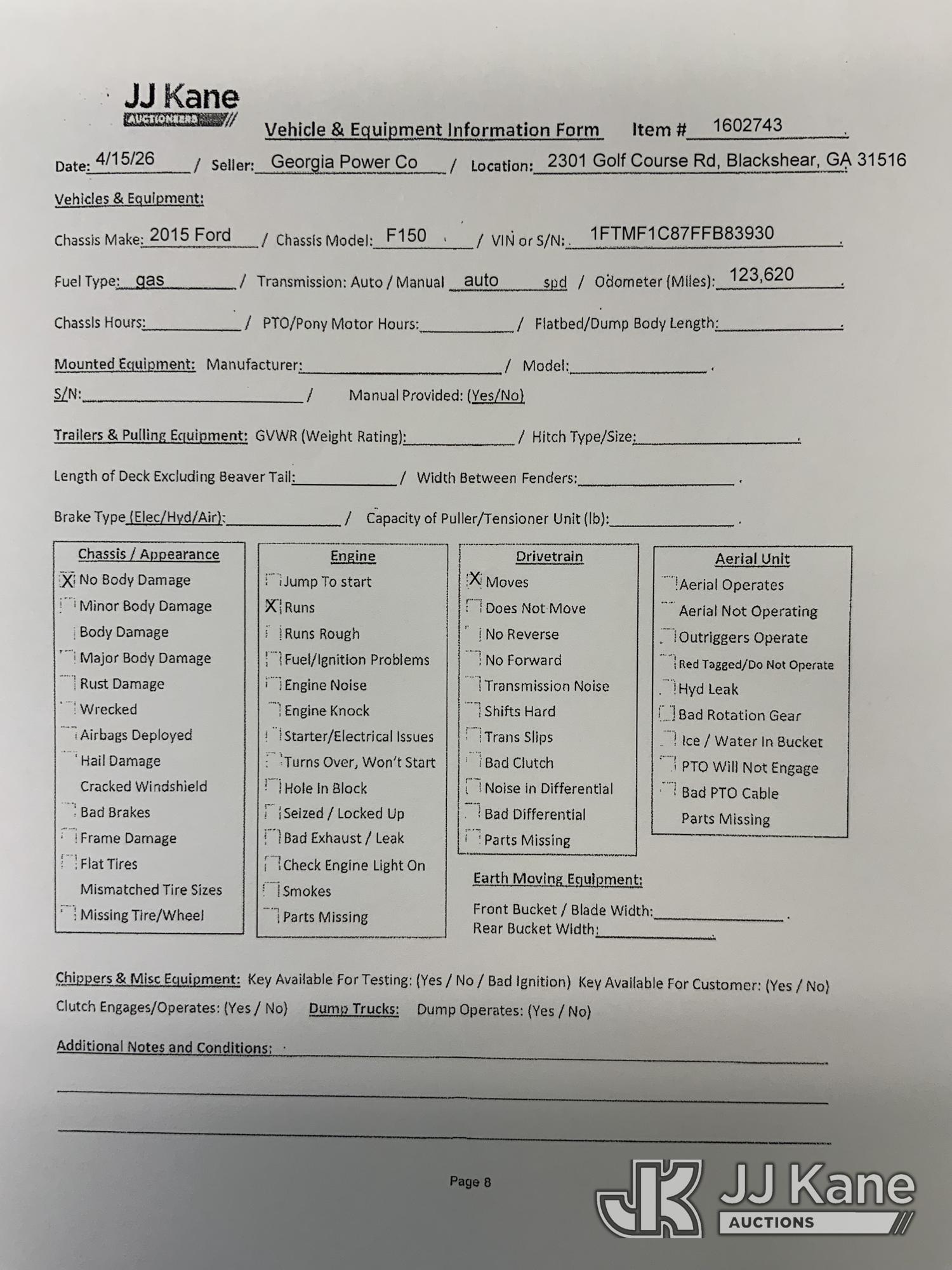 - Equipment Location: Blackshear, GA